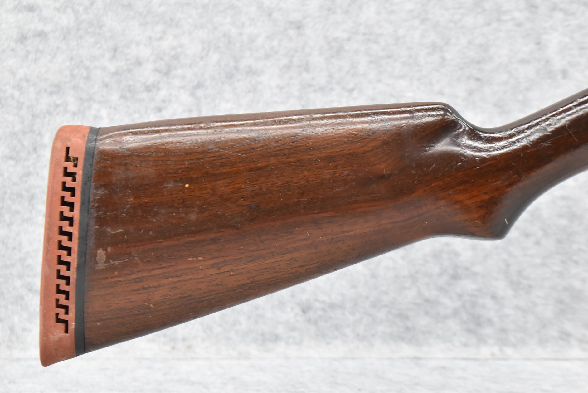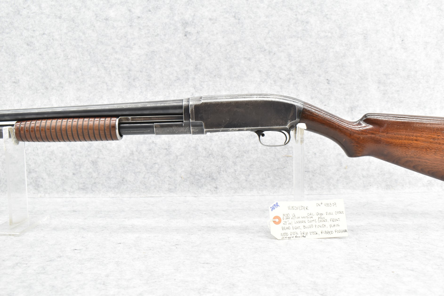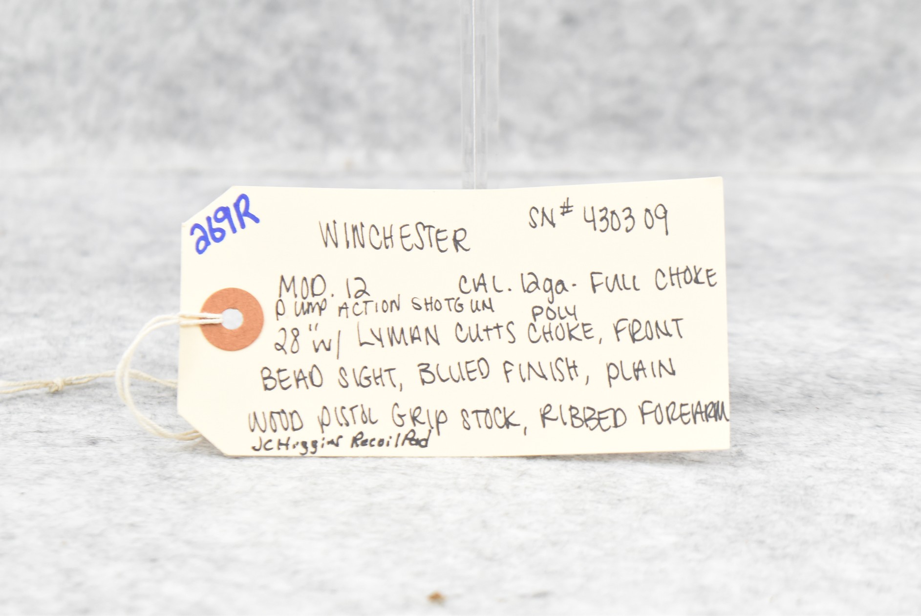 269R. Winchester – Mod. 12 – 12ga. Pump Action Shotgun – w/28” Full Choke Barrel w/Front Bead Sight & Lyman Cutts Poly Choke – Blued Finish – w/Plain Wood Pistol Grip Stock & Ribbed Forearm w/J.C. Higgins Recoil Pad