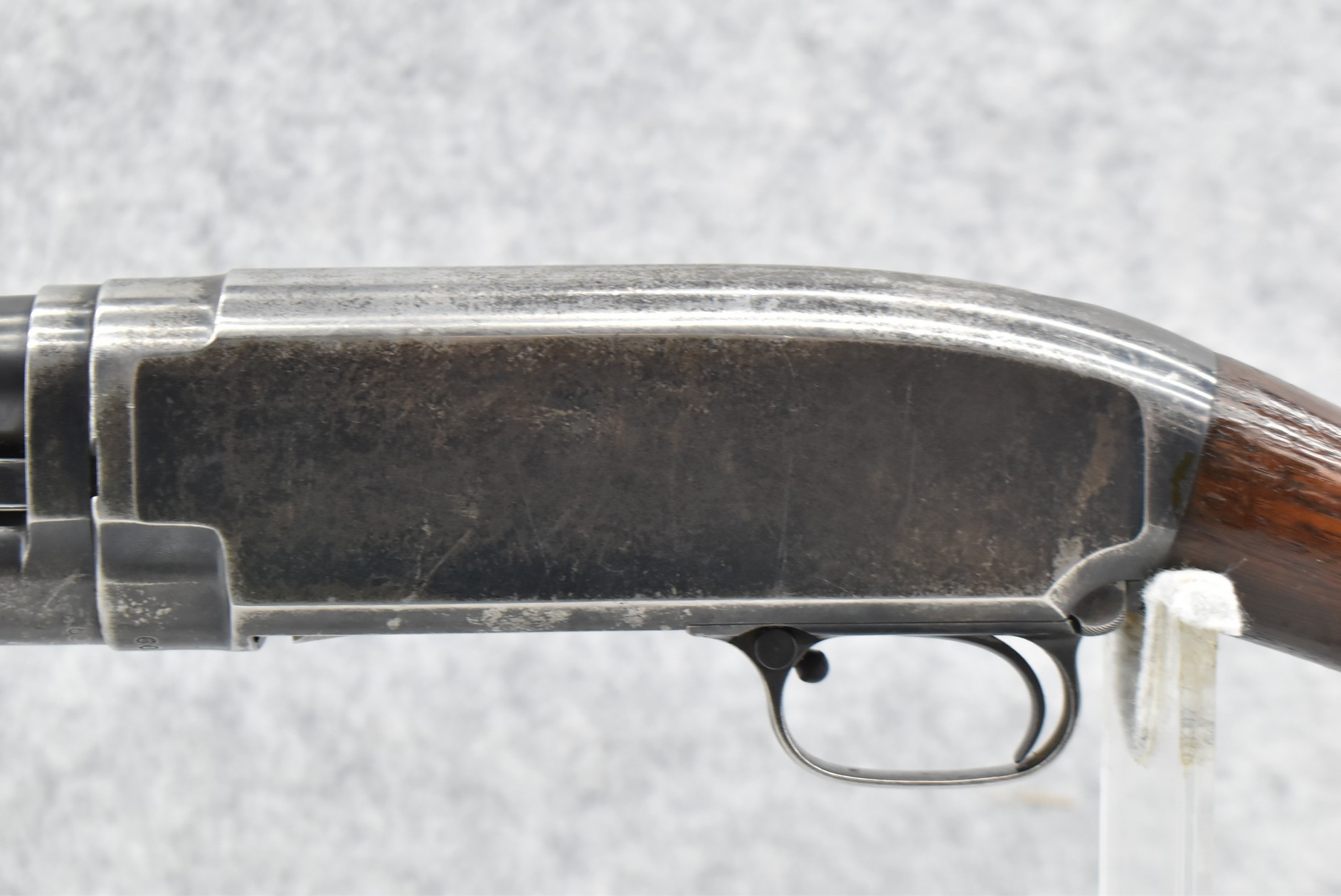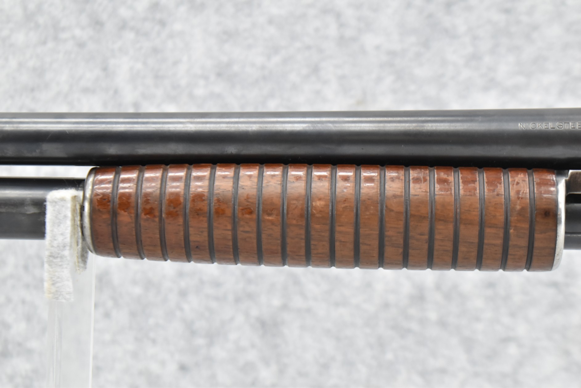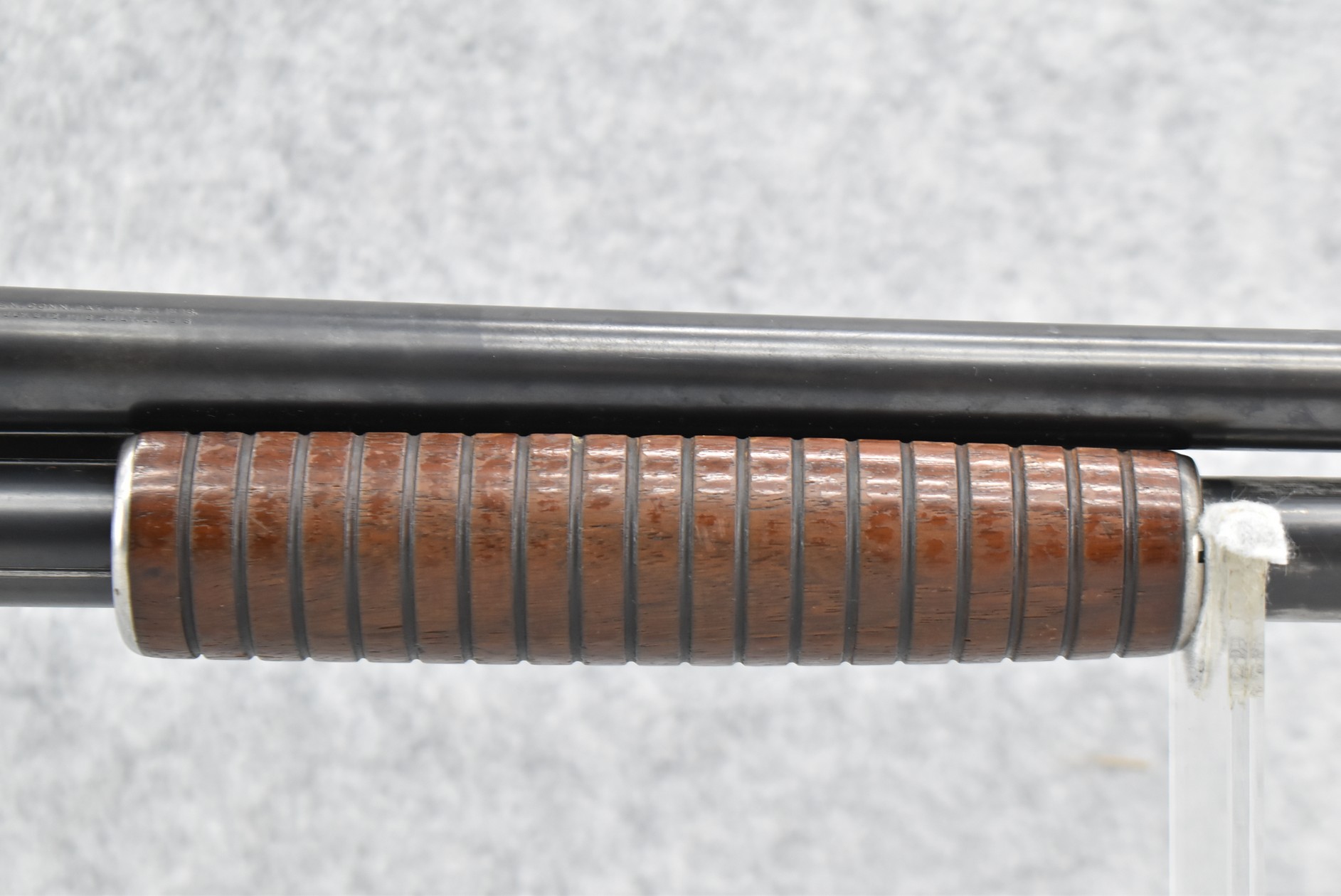 269R. Winchester – Mod. 12 – 12ga. Pump Action Shotgun – w/28” Full Choke Barrel w/Front Bead Sight & Lyman Cutts Poly Choke – Blued Finish – w/Plain Wood Pistol Grip Stock & Ribbed Forearm w/J.C. Higgins Recoil Pad