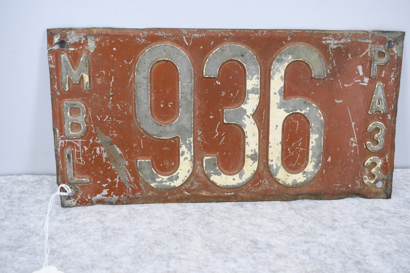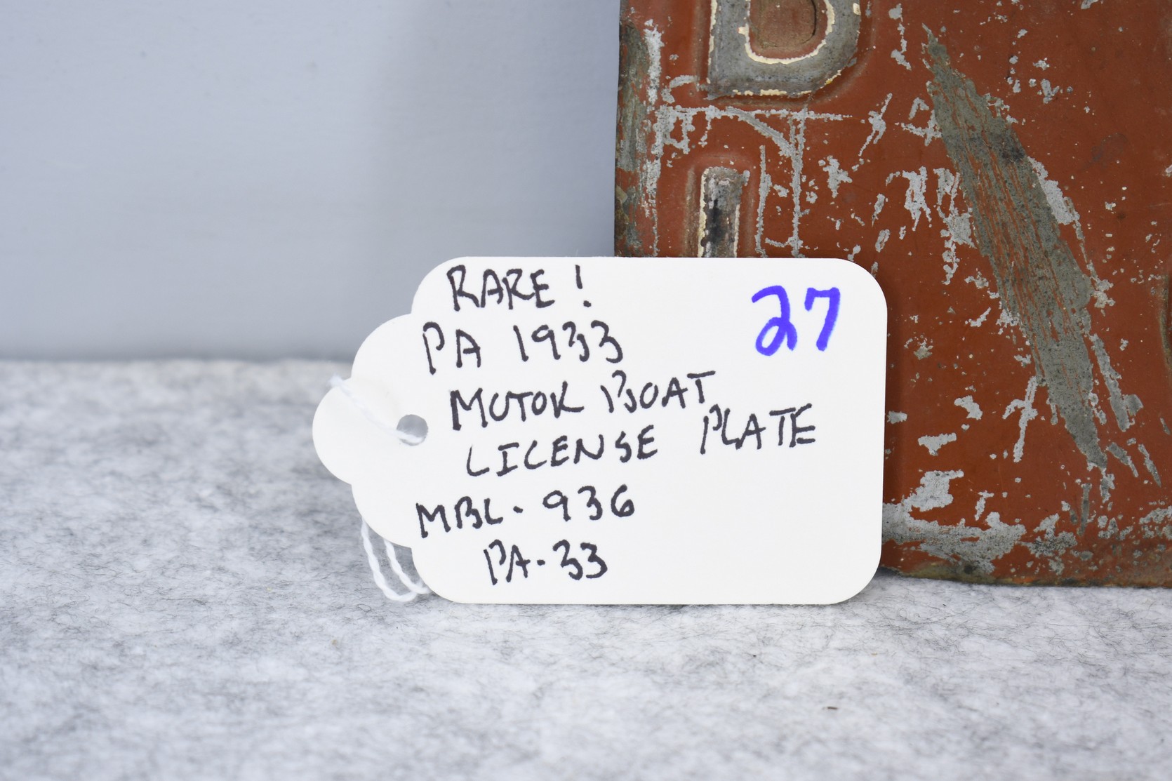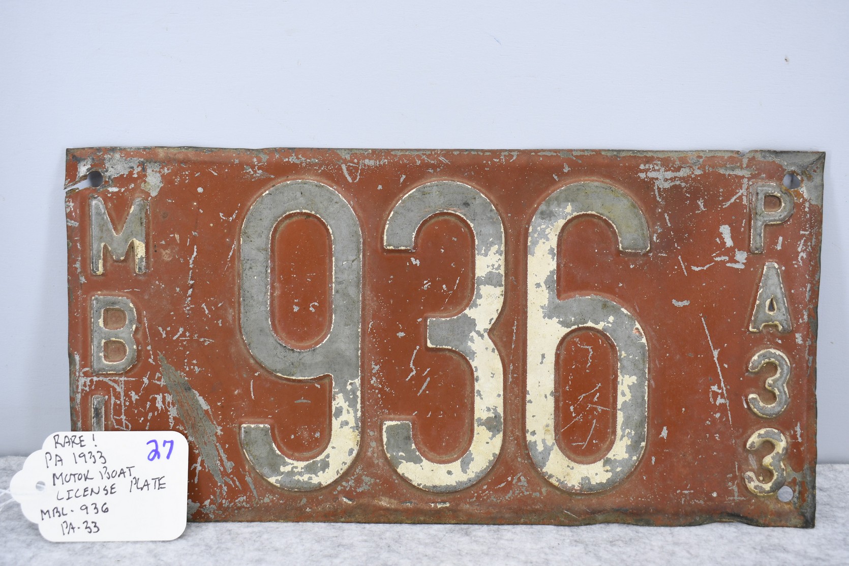27. 1927 Pennsylvania Motorboat License Plate – Plate No. 936 – MBL PA33