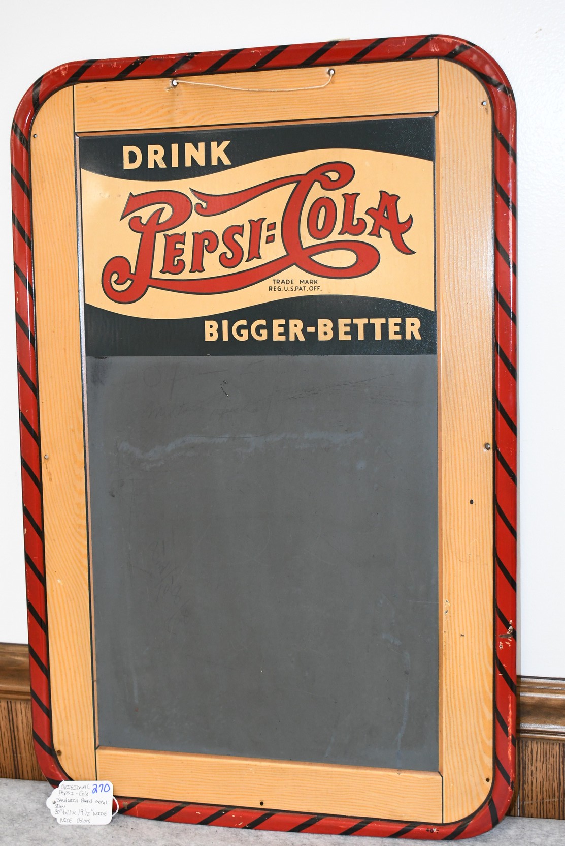 270. Original Pepsi Cola Tin Sandwich Chalk Board Advertising Sign – Sign Measures 30” Tall x 19½” Wide – Very Nice Original Sign