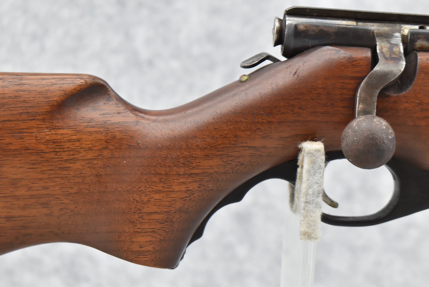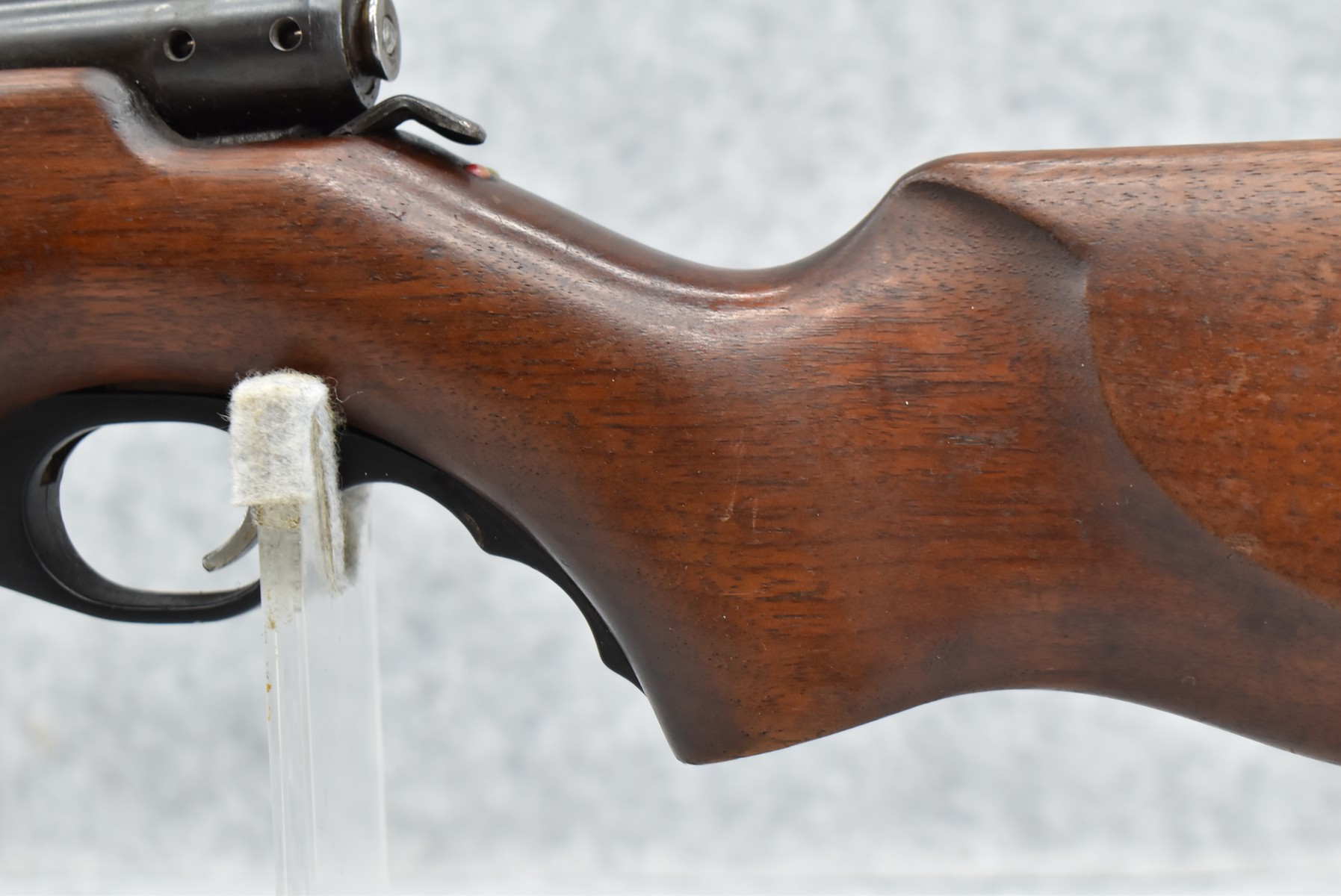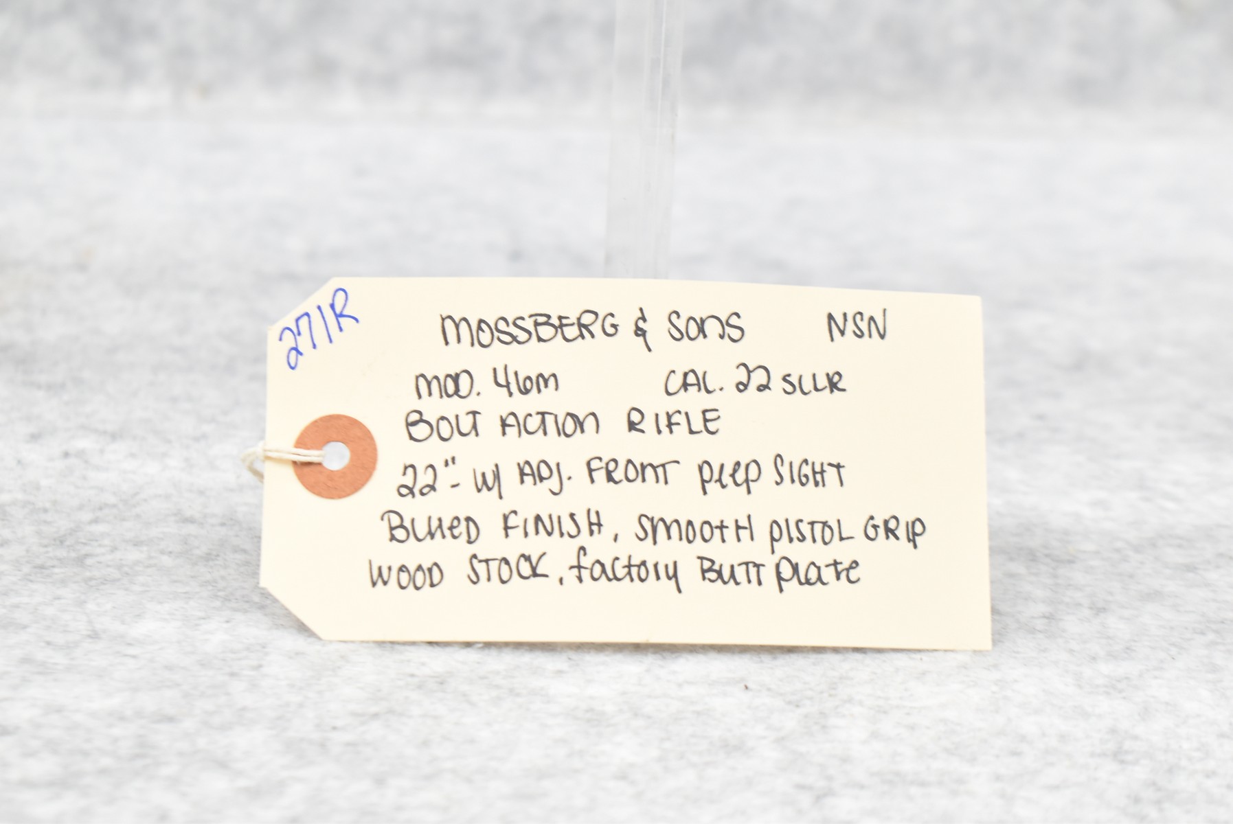 271R. Mossberg – Mod. 46M – 22 Cal. Bolt Action Rifle – w/22” Barrel w/Adj. Front Peep Sight – Blued Finish – w/Smooth Pistol Grip Wood Stock w/Factory Butt Plate – Receiver & Barrel Tapped – Note: Missing Rear Sight