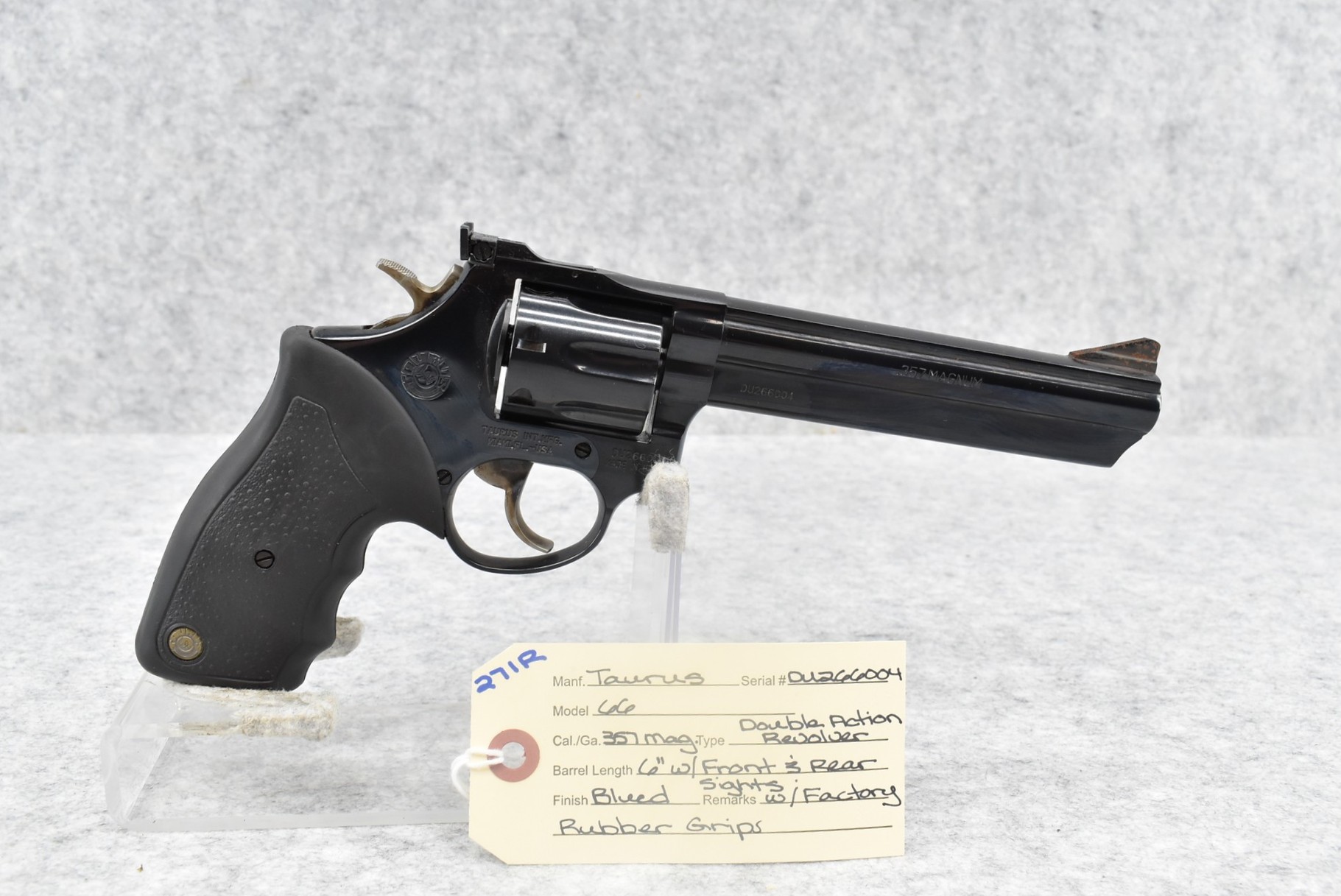 271R. Taurus – Mod. 66 – 357 Mag. Cal. Double Action Revolver – w/6” Barrel w/Front & Rear Sights – Blued Finish – w/Factory Rubber Grips – w/Holster