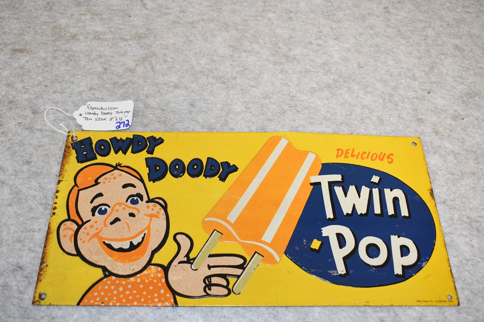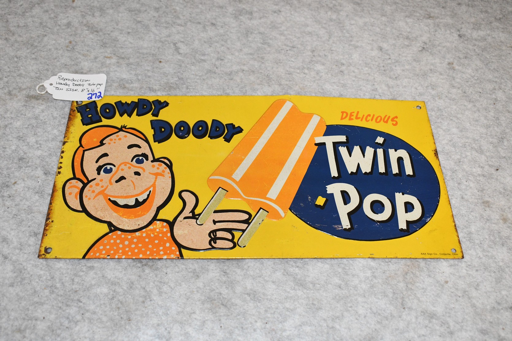 272. Reproduction Howdy Doody Twin Pop Advertising Sign – Sign Measures 8” x 16”