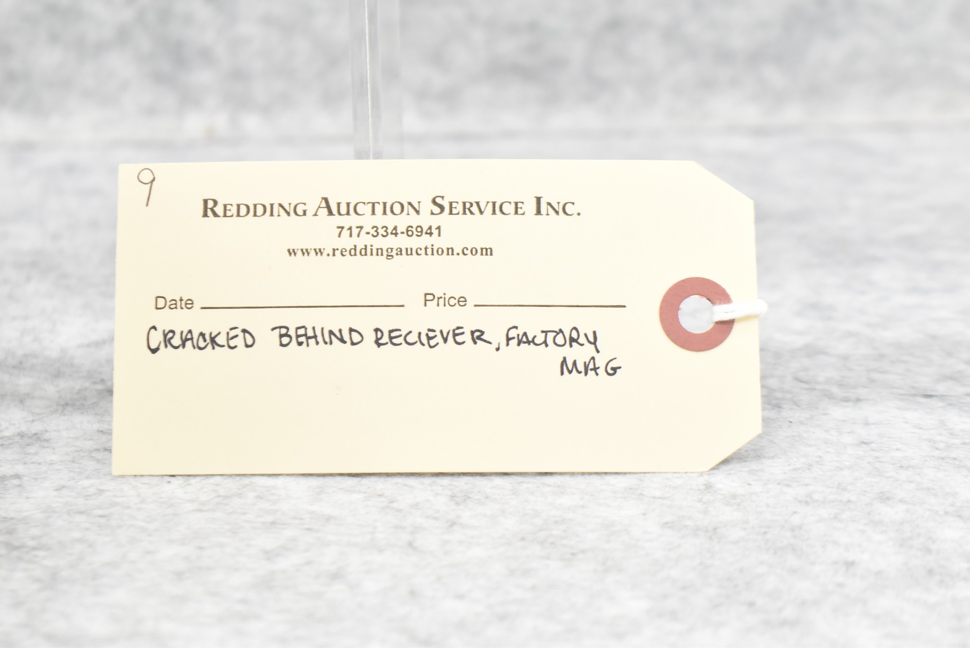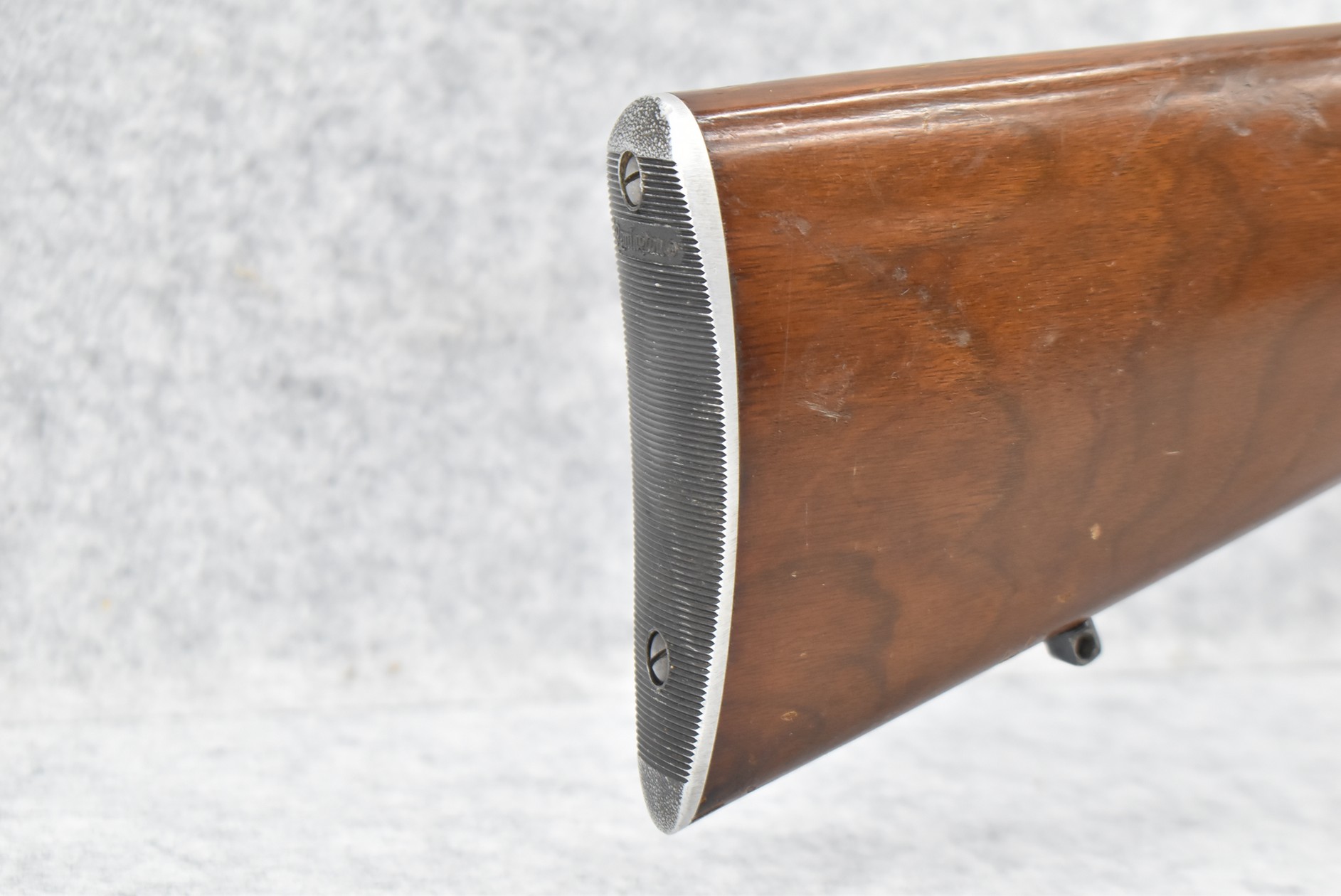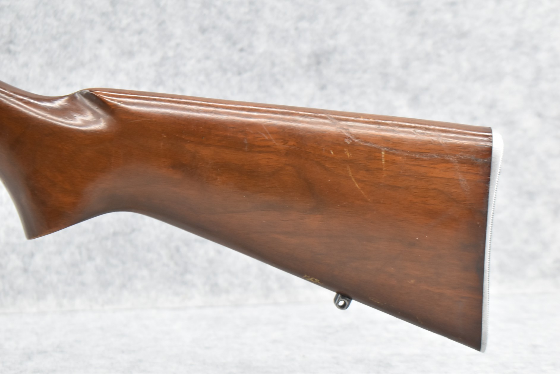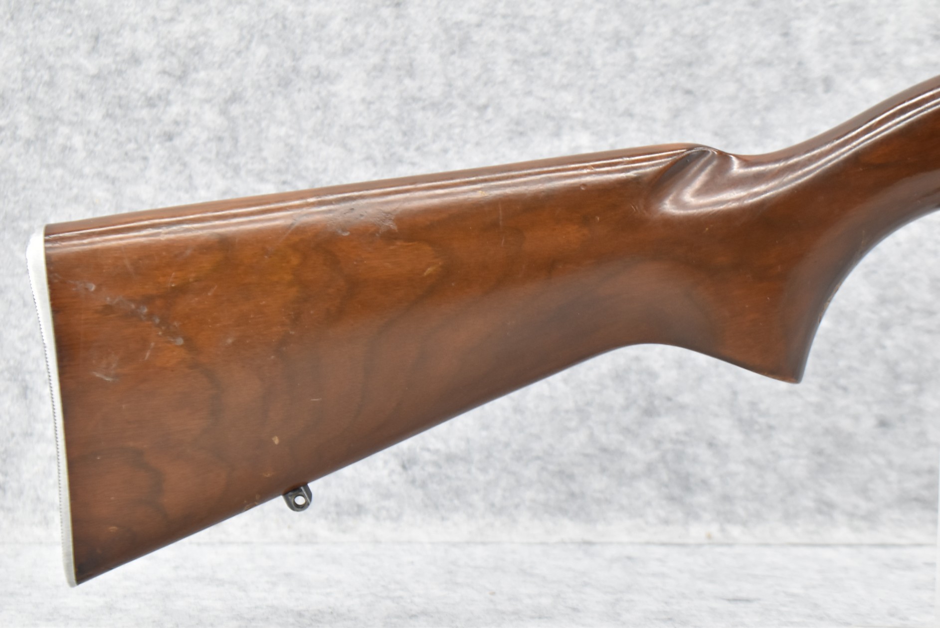 274R. Remington – Mod. 760 Gamemaster – 30-06 Sprg. Cal. Pump Action Rifle – w/22” Barrel w/Front Blade & Rear Semi-Buck Horn Flip Up Sight – Blued Finish – w/Plain Wood Pistol Grip Stock w/Factory Butt Plate & Corn Cob Forearm – w/Factory Mag – Note: Butt Stock Cracked at Pistol Grip