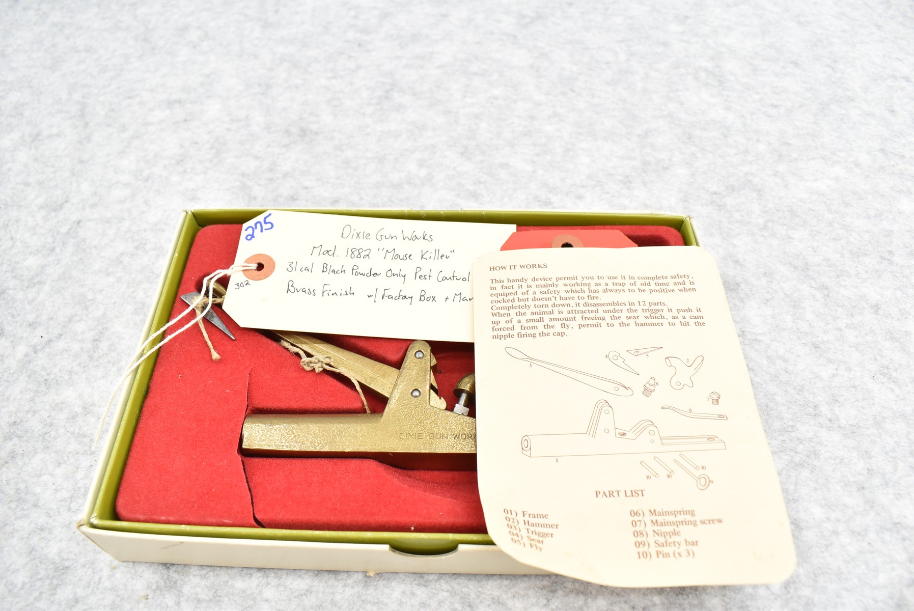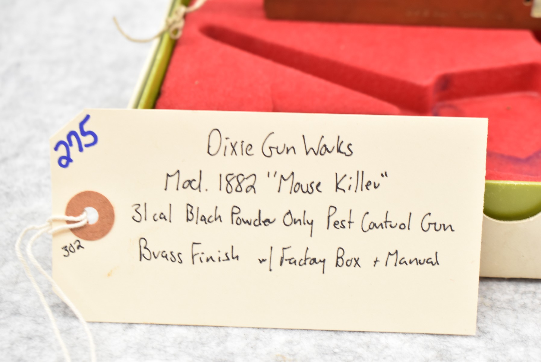 275. Dixie Gun Works – Mod. 1882 “Mouse Killer” – 31 Cal. Black Powder Only Pest Control Gun – Brass Finish – w/Factory Box & Manual