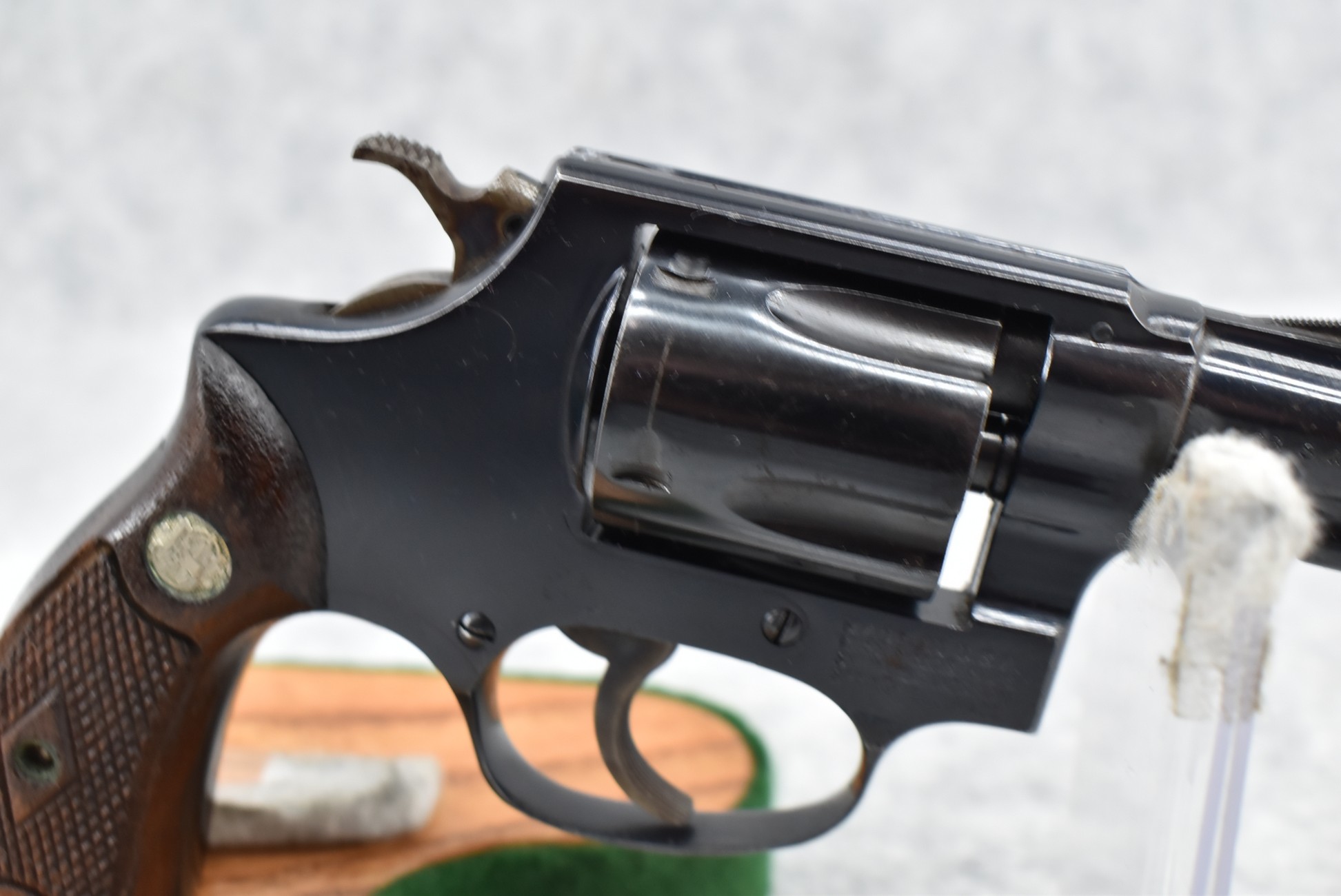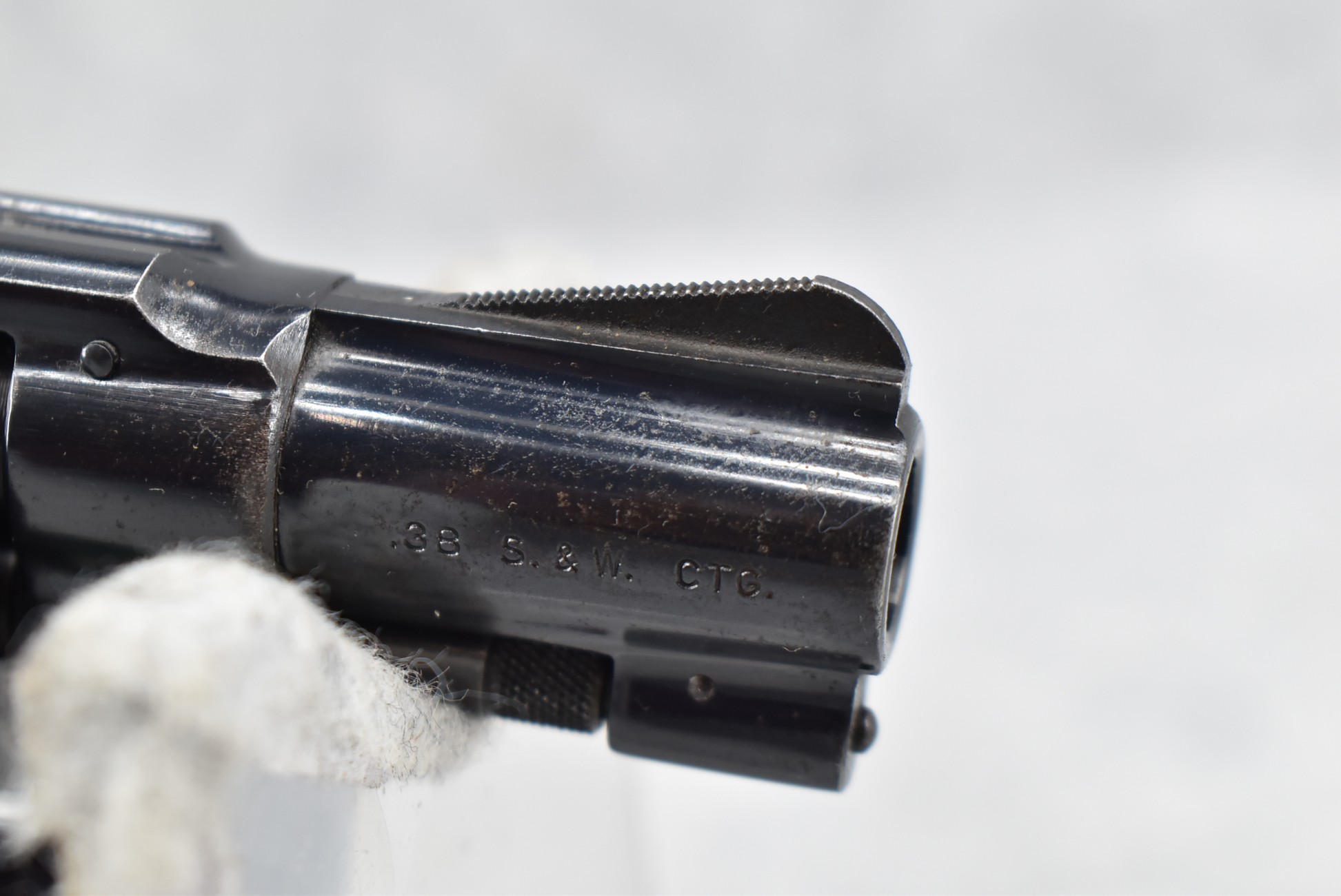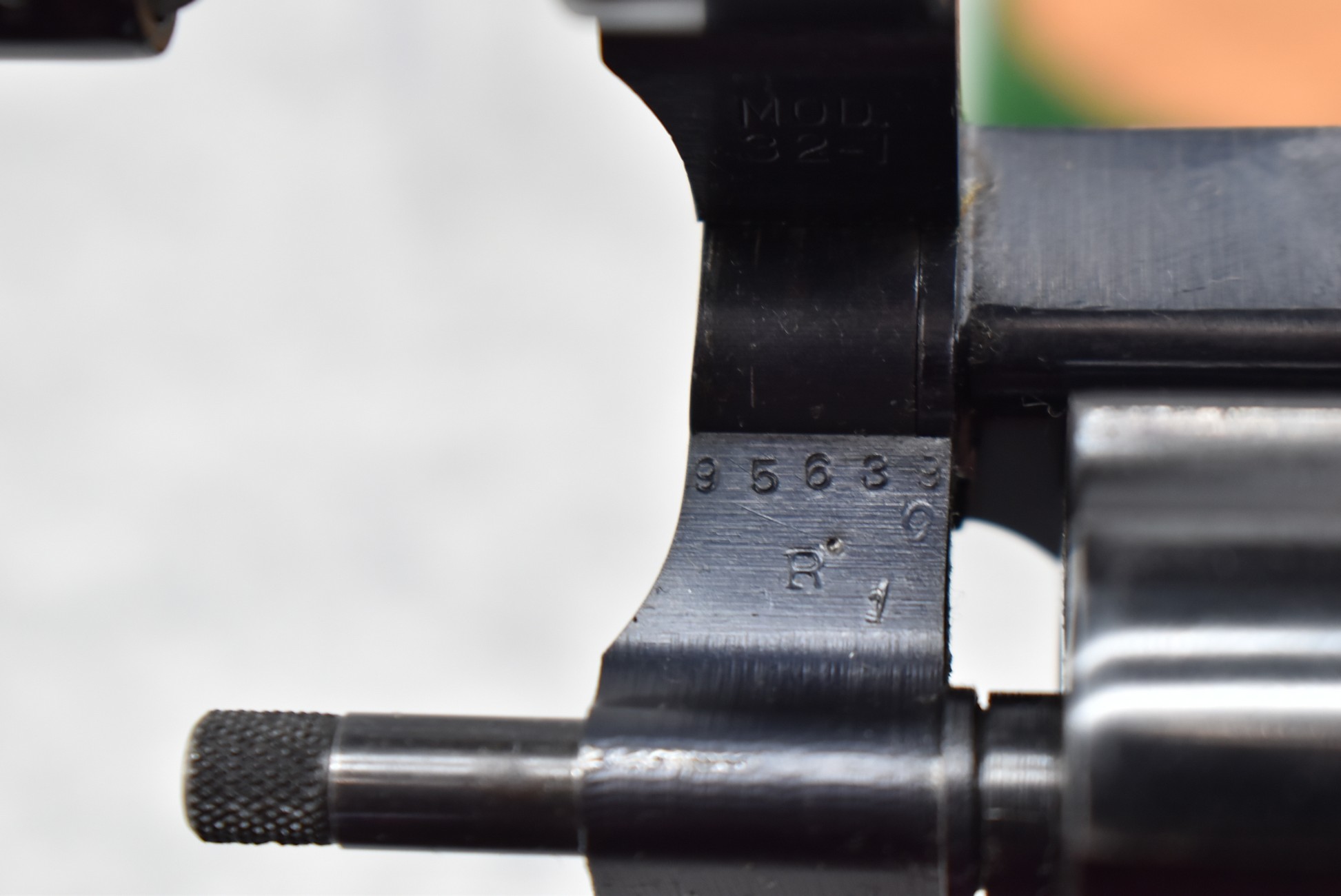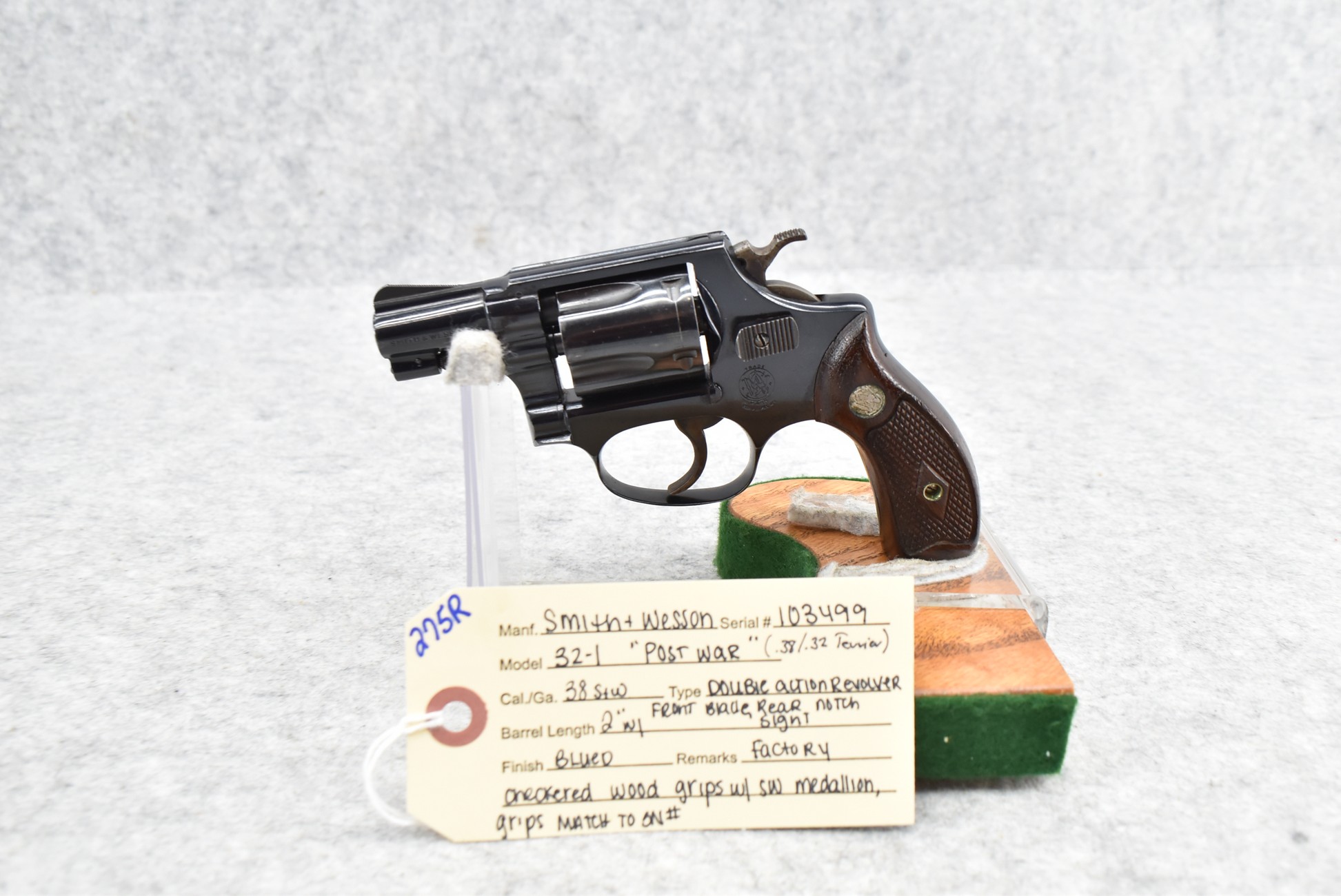 275R. Smith & Wesson – Mod. 32-1 (.38/.32 Terrier) (Post War) – 38 S&W Cal. Double Action Revolver – w/2” Barrel w/Front Blade & Rear Notch Sights – Blued Finish – w/Factory Diamond Checkered Wood Grips w/S&W Medallion Grips That Match to Serial Number