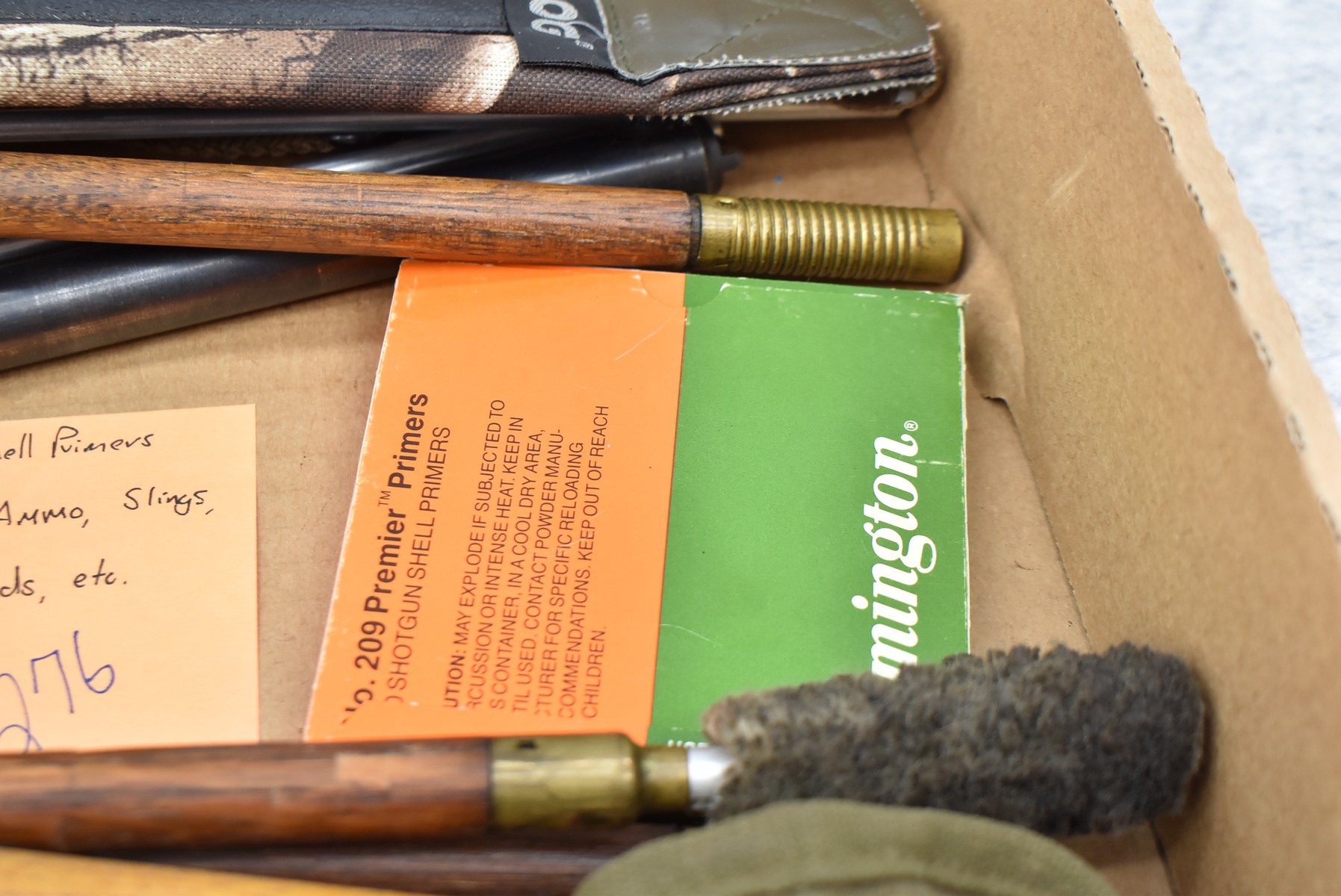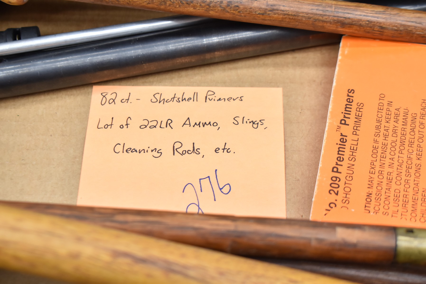 276. 82ct. Shotshell Primers – Lot of 22LR Ammo, Slings, Cleaning Rods, Etc