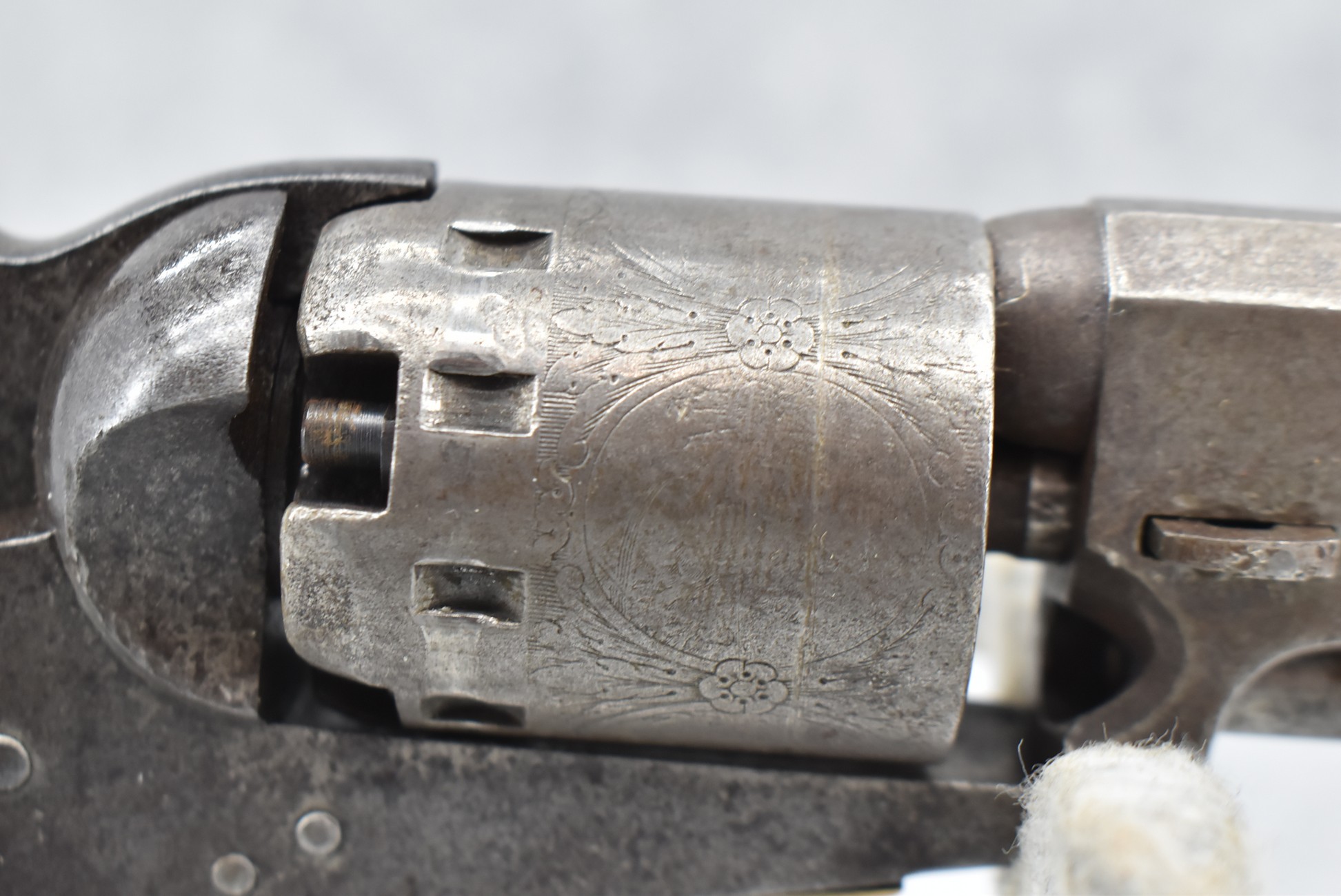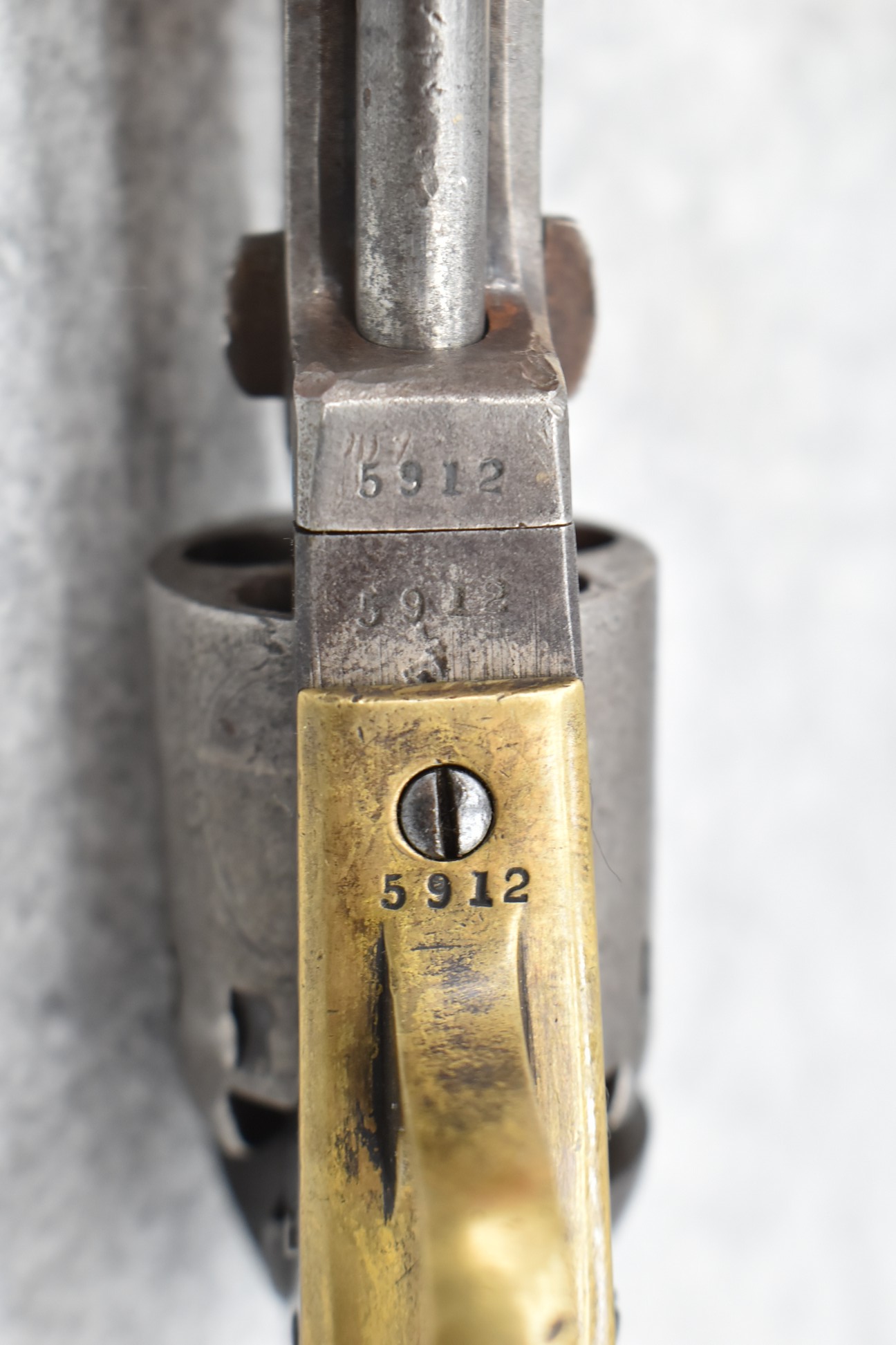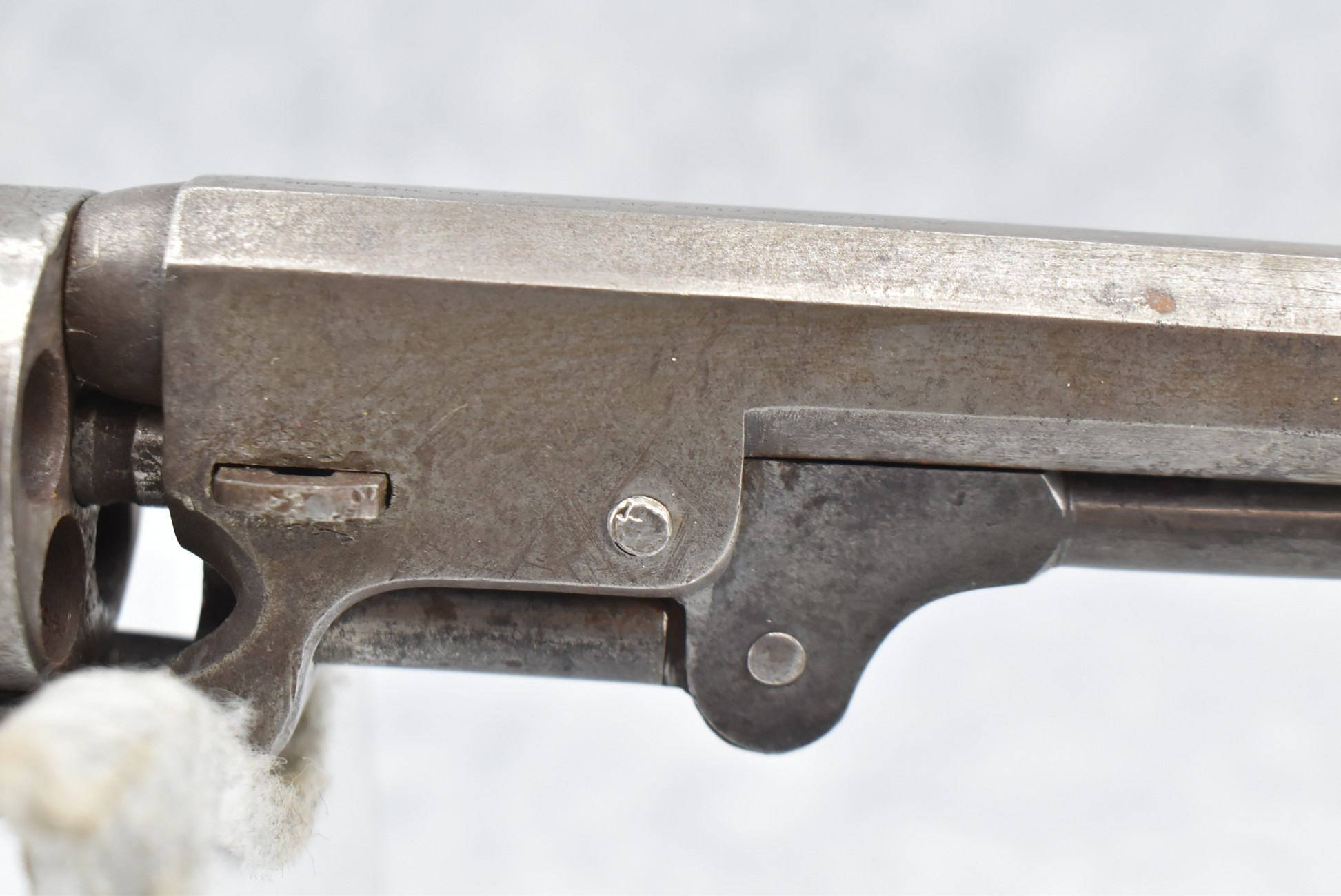 277. Manhattan Fire Arms Co. – Mod. Pocket Model Series 1 – 36 Cal. Percussion Black Powder Revolver – w/5” Barrel – w/Wood Grips – w/Brass Trigger Guard & Grip Strap – Note: Cylinder Won’t Rotate When Hammer Cocked
