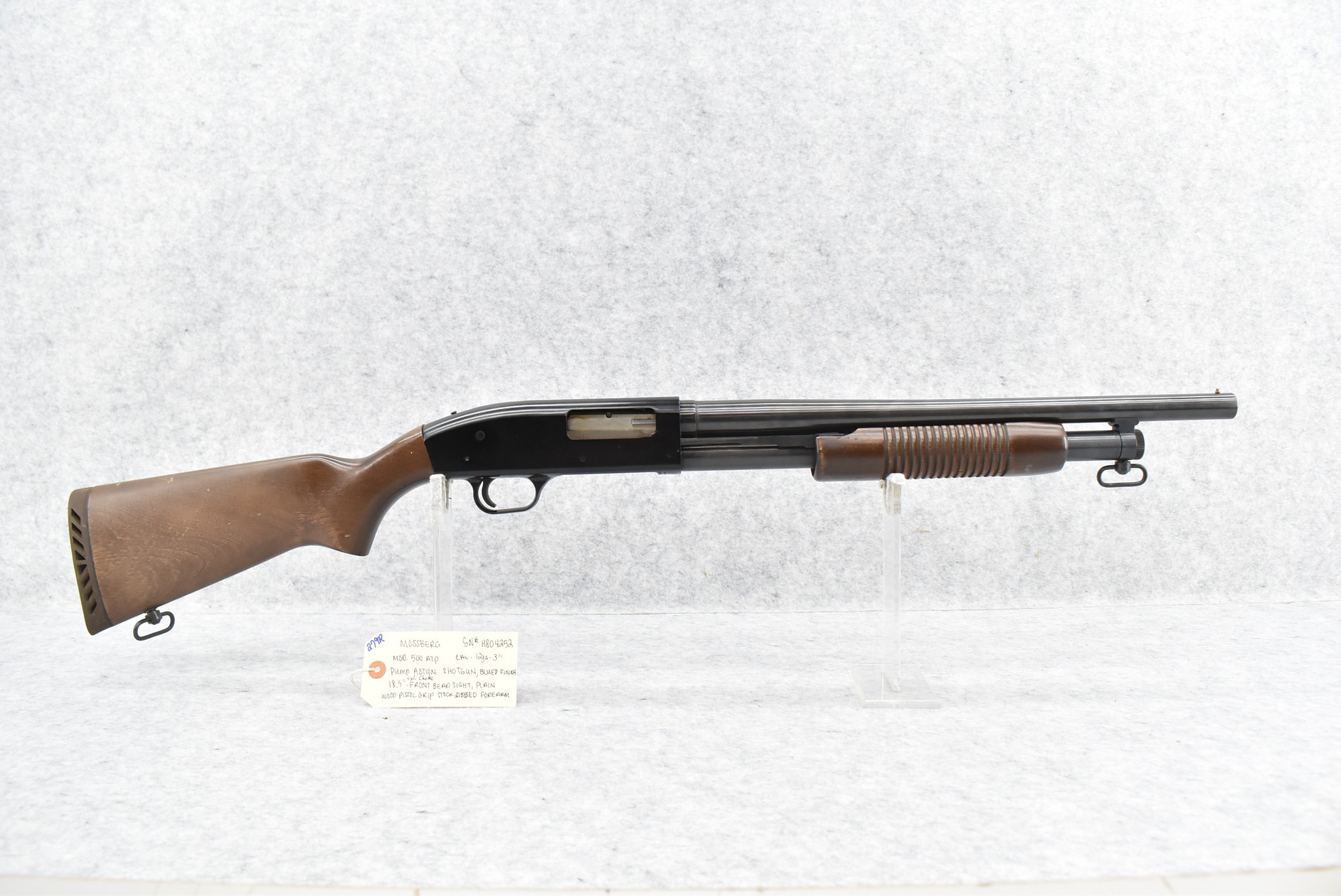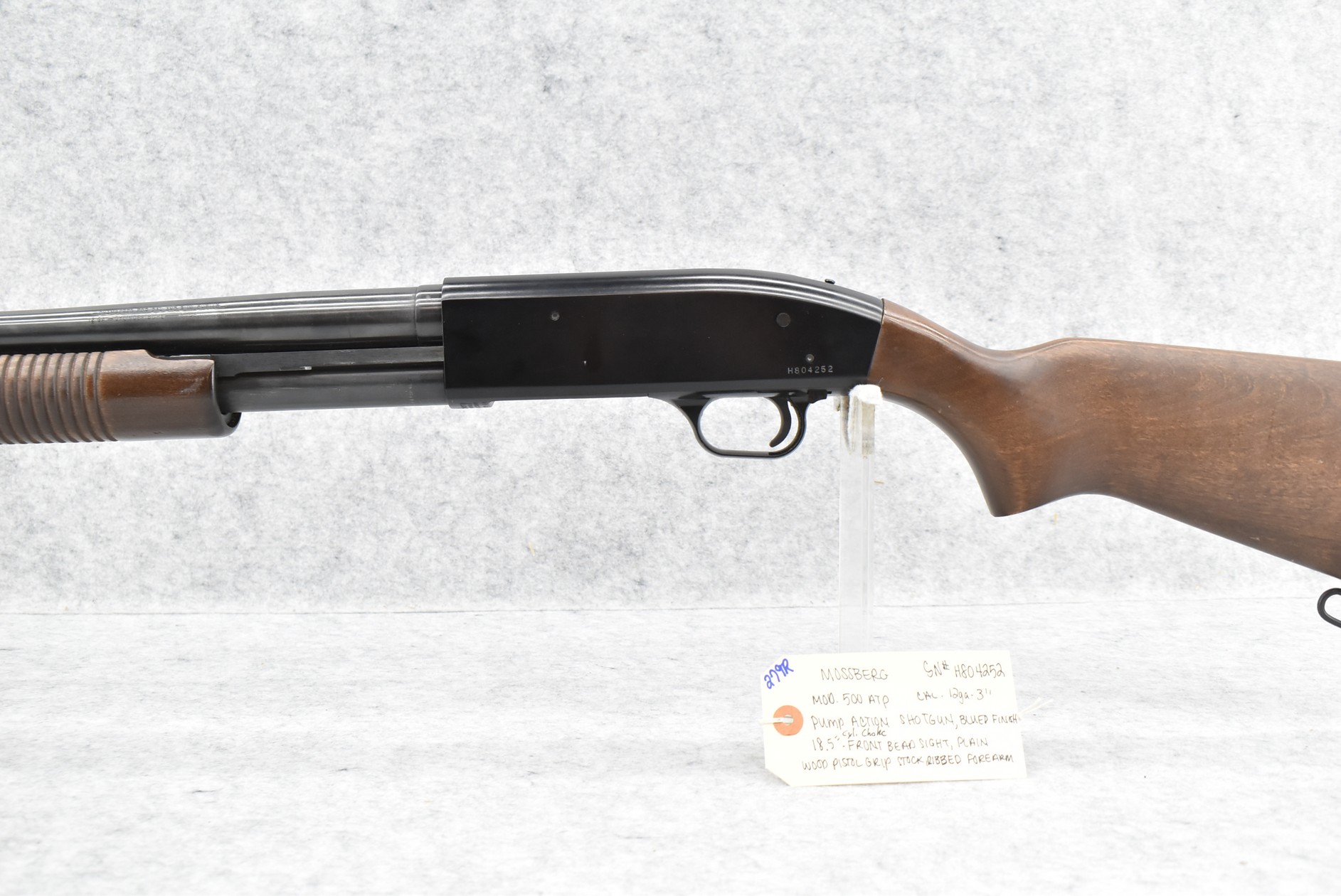 279R. Mossberg – Mod. 500 ATP – 12ga. 3” Pump Action Shotgun – w/18.5” Cyl. Choked Barrel w/Front Bead Sight – Blued Finish – w/Plain Wood Pistol Grip Stock & Ribbed Forearm