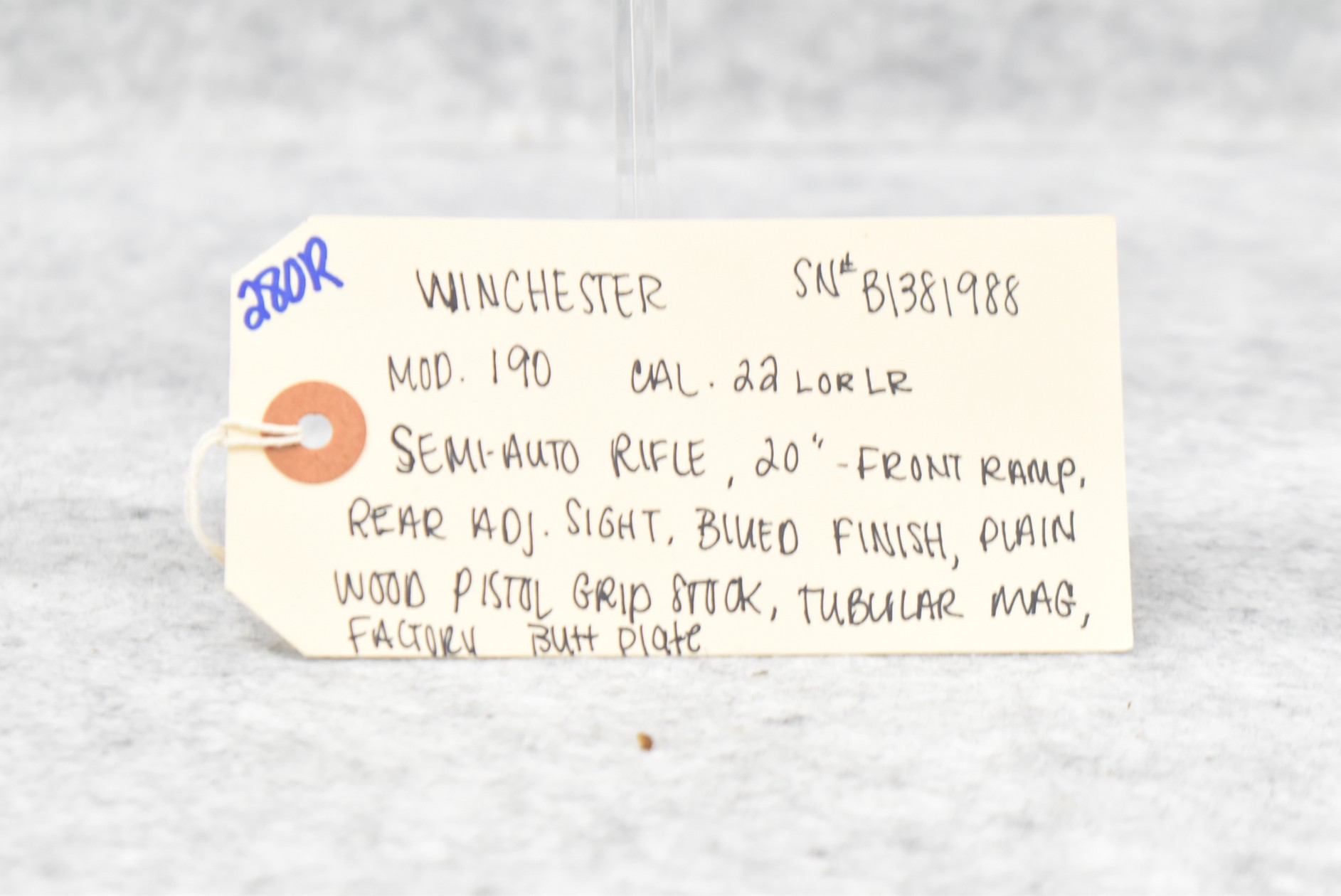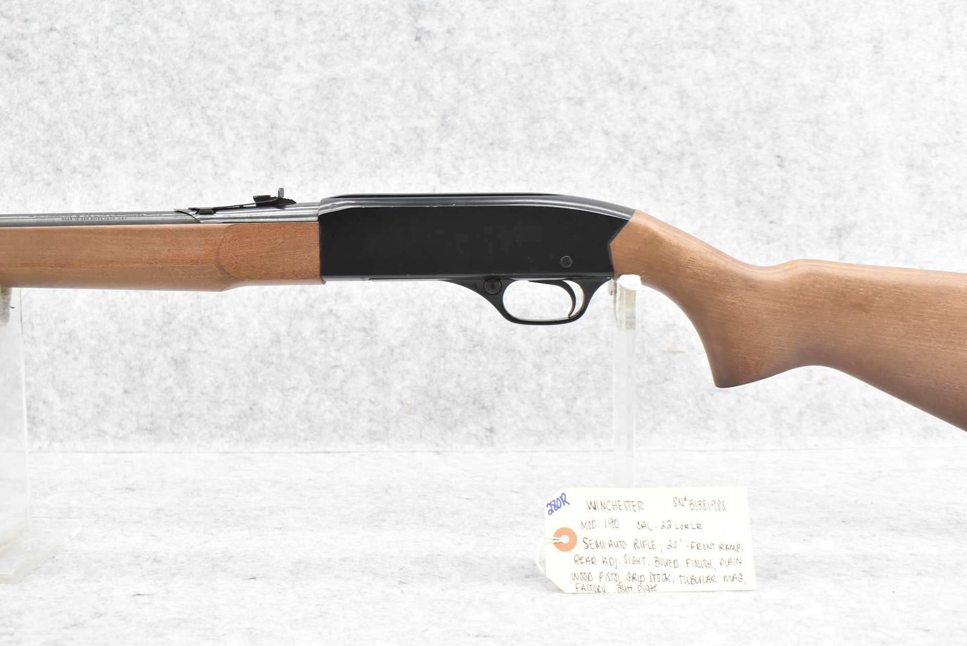 280R. Winchester – Mod. 190 – 22 Cal. Semi-Auto Rifle – w/20” Barrel w/Front Ramp & Rear Adj. Sight – Blued Finish – w/Plain Wood Pistol Grip Stock w/Factory Butt Plate – w/Tubular Mag