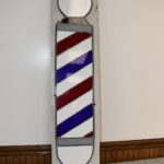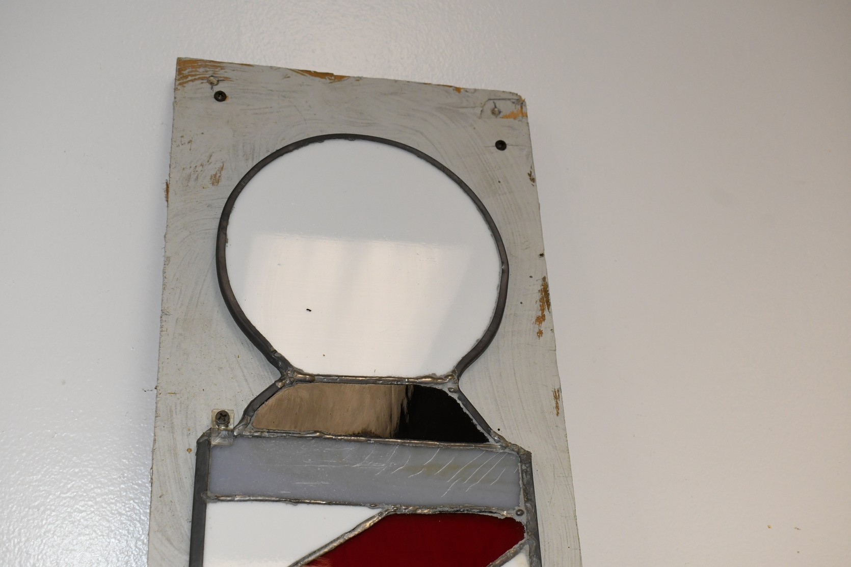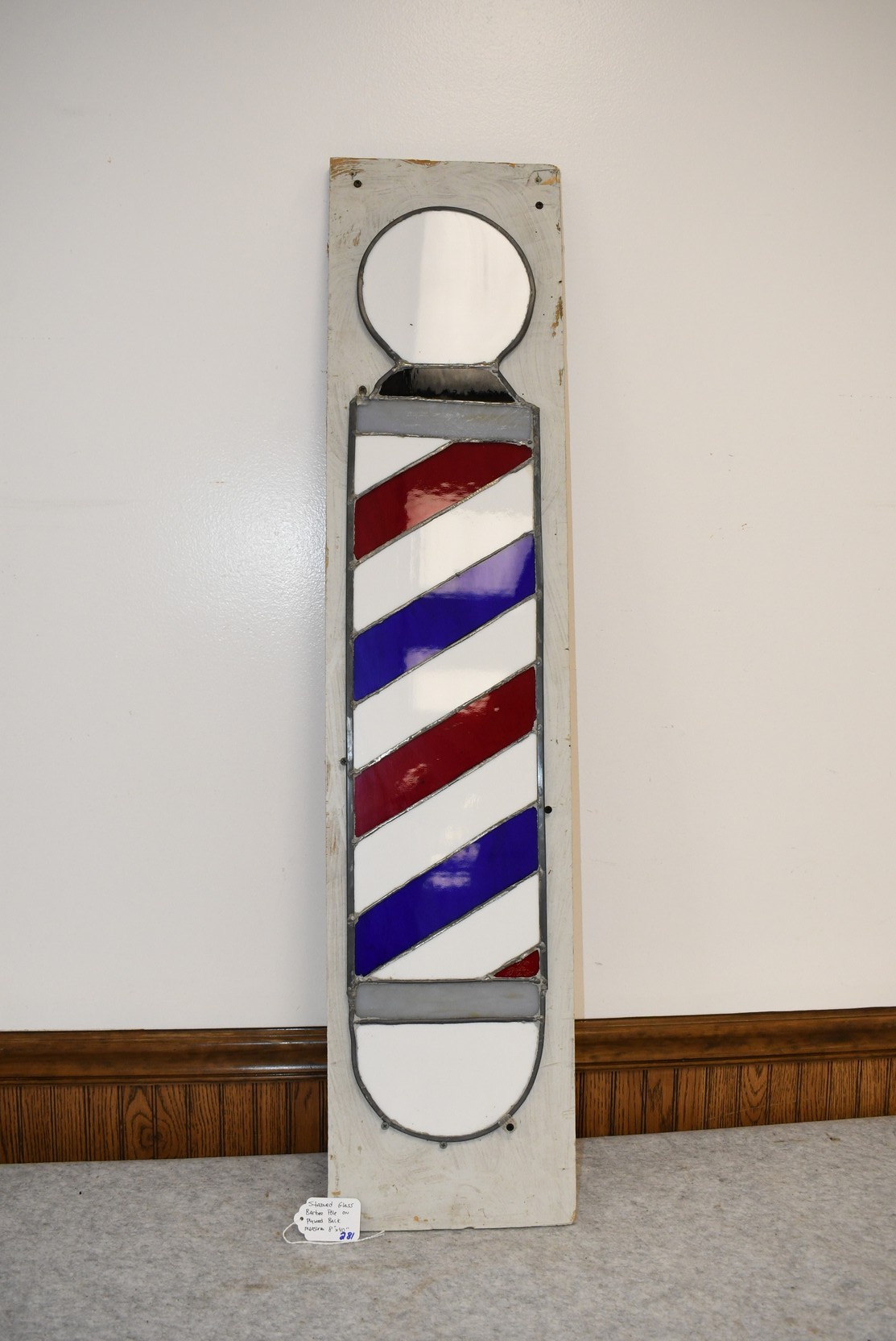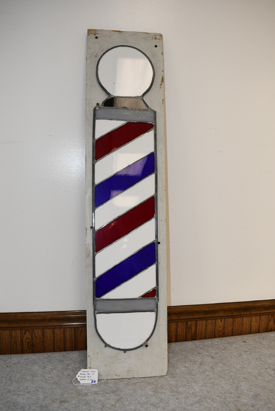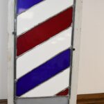 281. Stained Leaded Glass Barber Pole Side Light – Item is Mounted on Plyboard – Will Not Ship, Pickup Only or You Must Arrange Your Own Shipping!