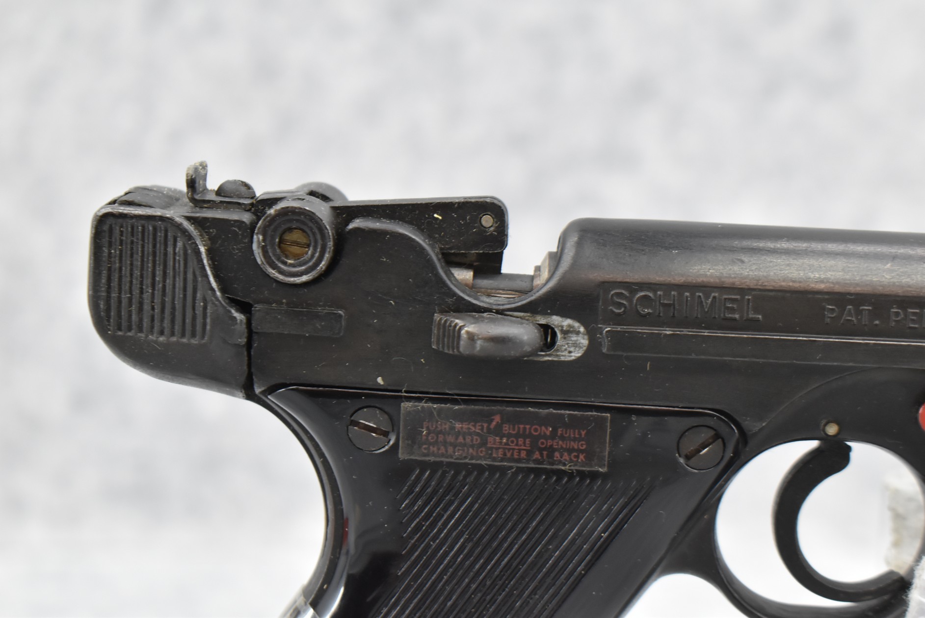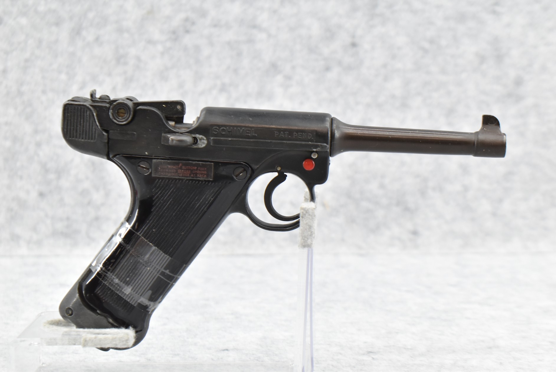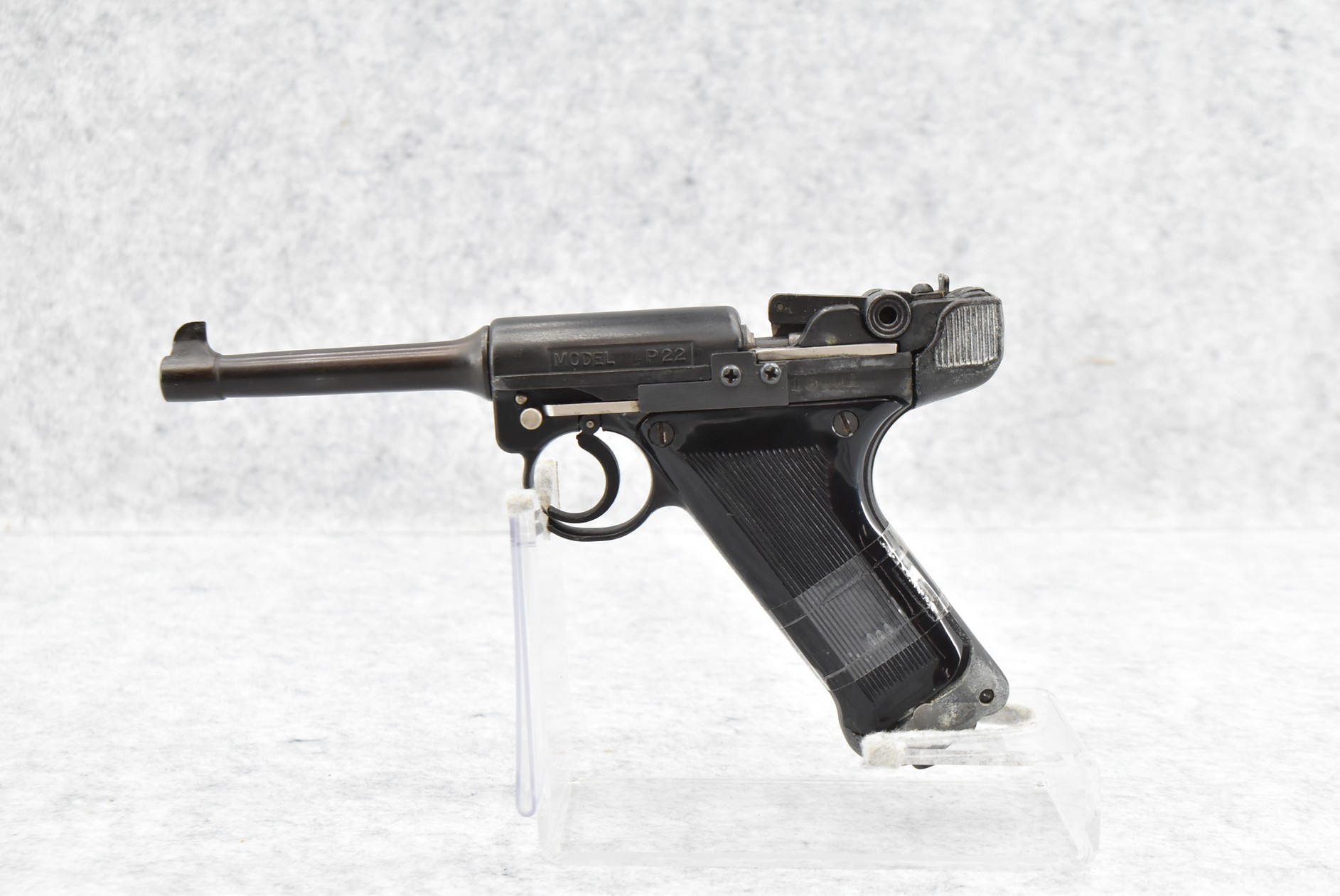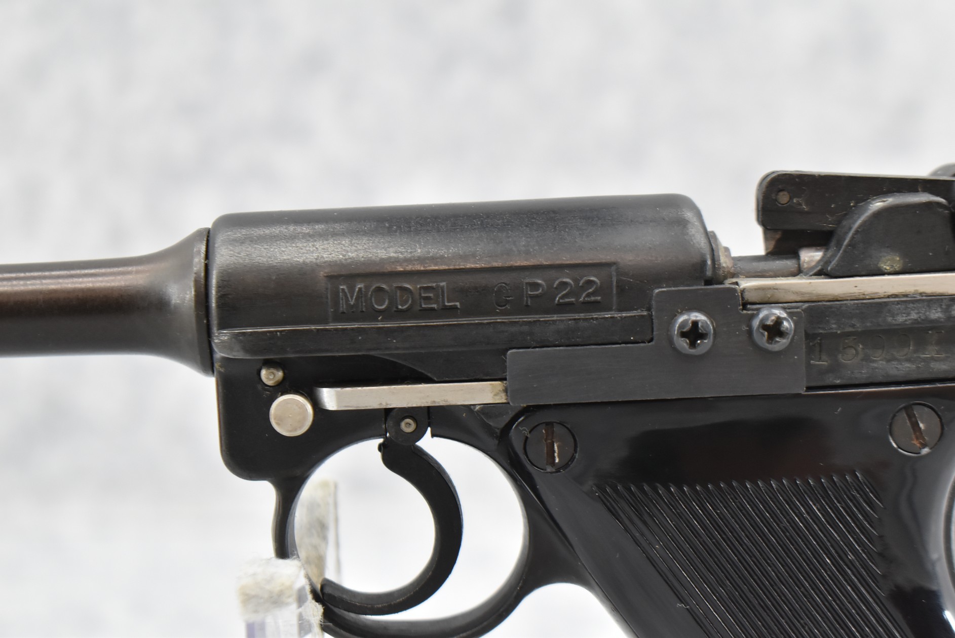 282. Schimel – Mod. GP22 – 22 Cal. Air Pistol – w/6 ½” Barrel w/Sights – Blued Finish – w/Original Grips – w/Original Factory 2pc. Box w/Manuals, Pellets, Etc. – Circa 1946-1956