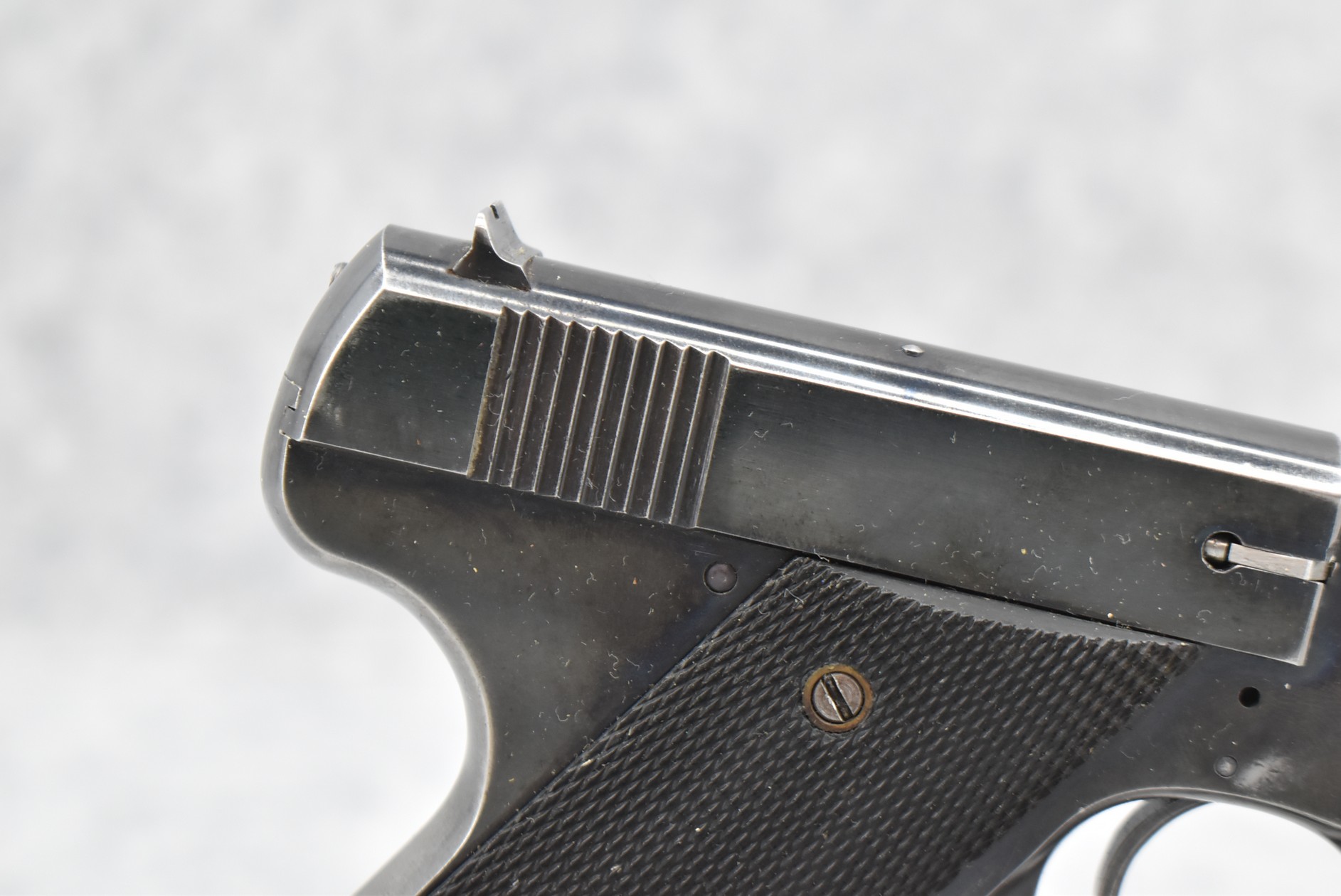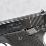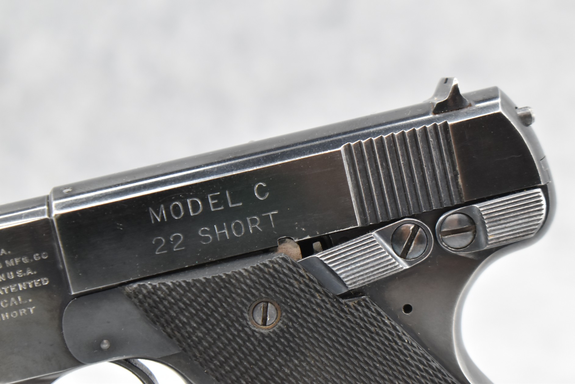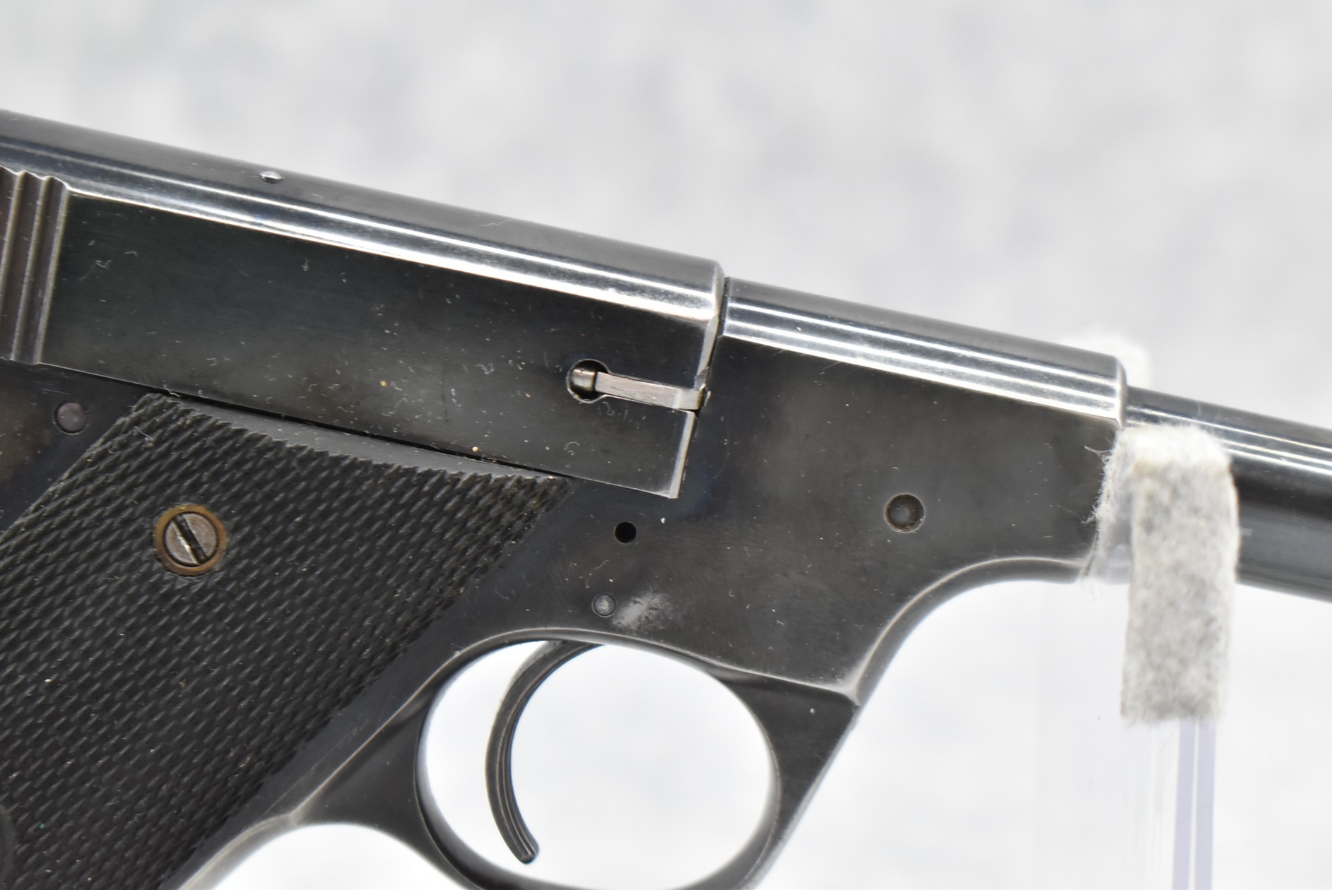 284R. Hi-Standard – Mod. C – 22 Short Only Cal. Semi-Auto Pistol – w /6 ¾” Round Barrel w/Front Blade & Rear Sights – Blued Finish – w/Factory HS Checkered Grips – w/Magazine