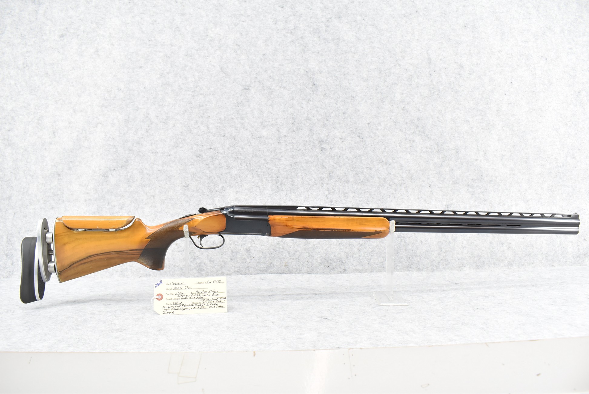 286R. Perazzi – Mod. MX-6-Trap – 12ga. Over-Under Trap Shotgun – w/31 ½” High Vent-Rib, Vented Barrels w/Double Bead Sights – Blued Finish – w/Checkered Pistol Grip Wood Stocks w/Adjustable Comb & Butt Plate & Kick-EEZ Butt Pad – w/Single Select Trigger