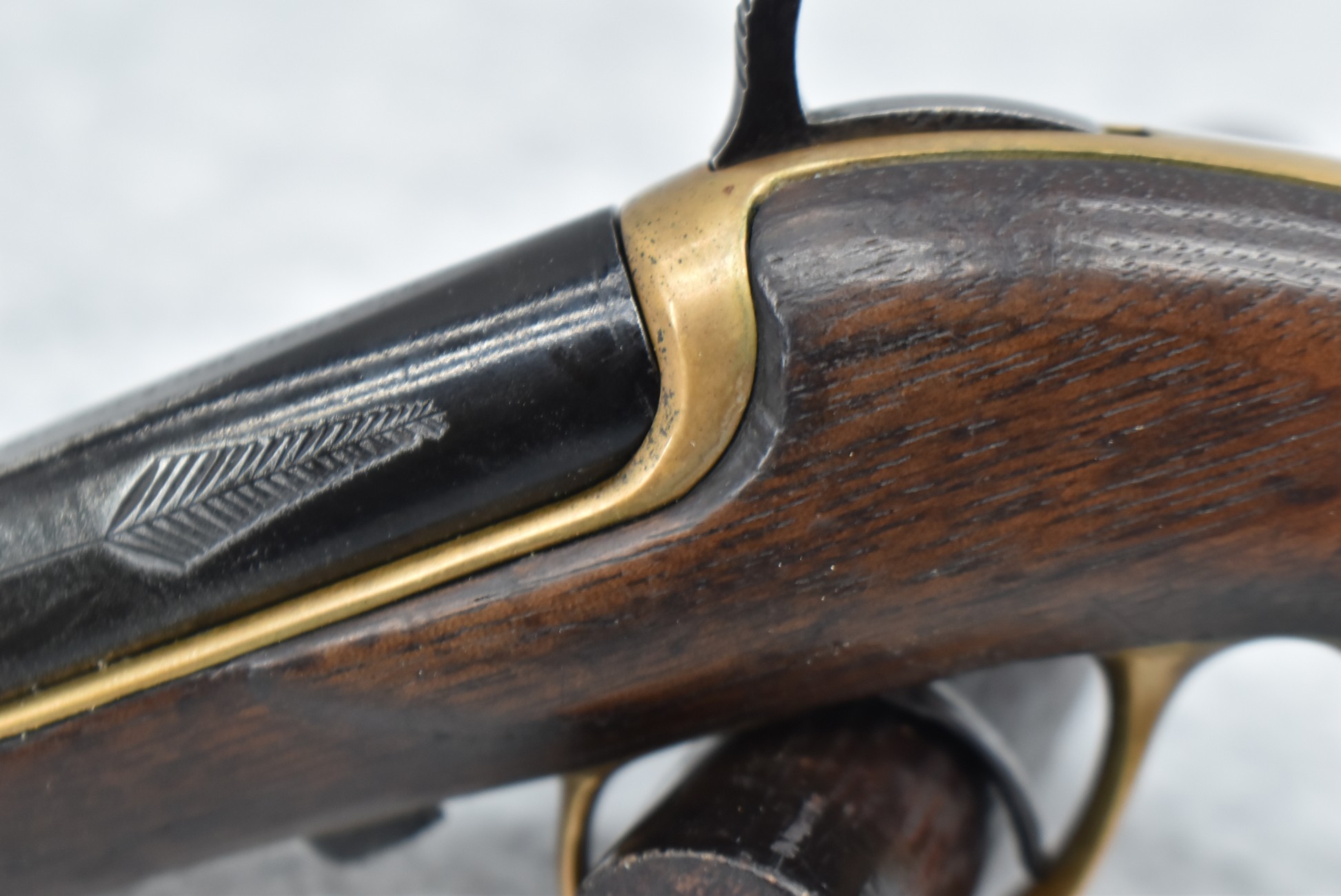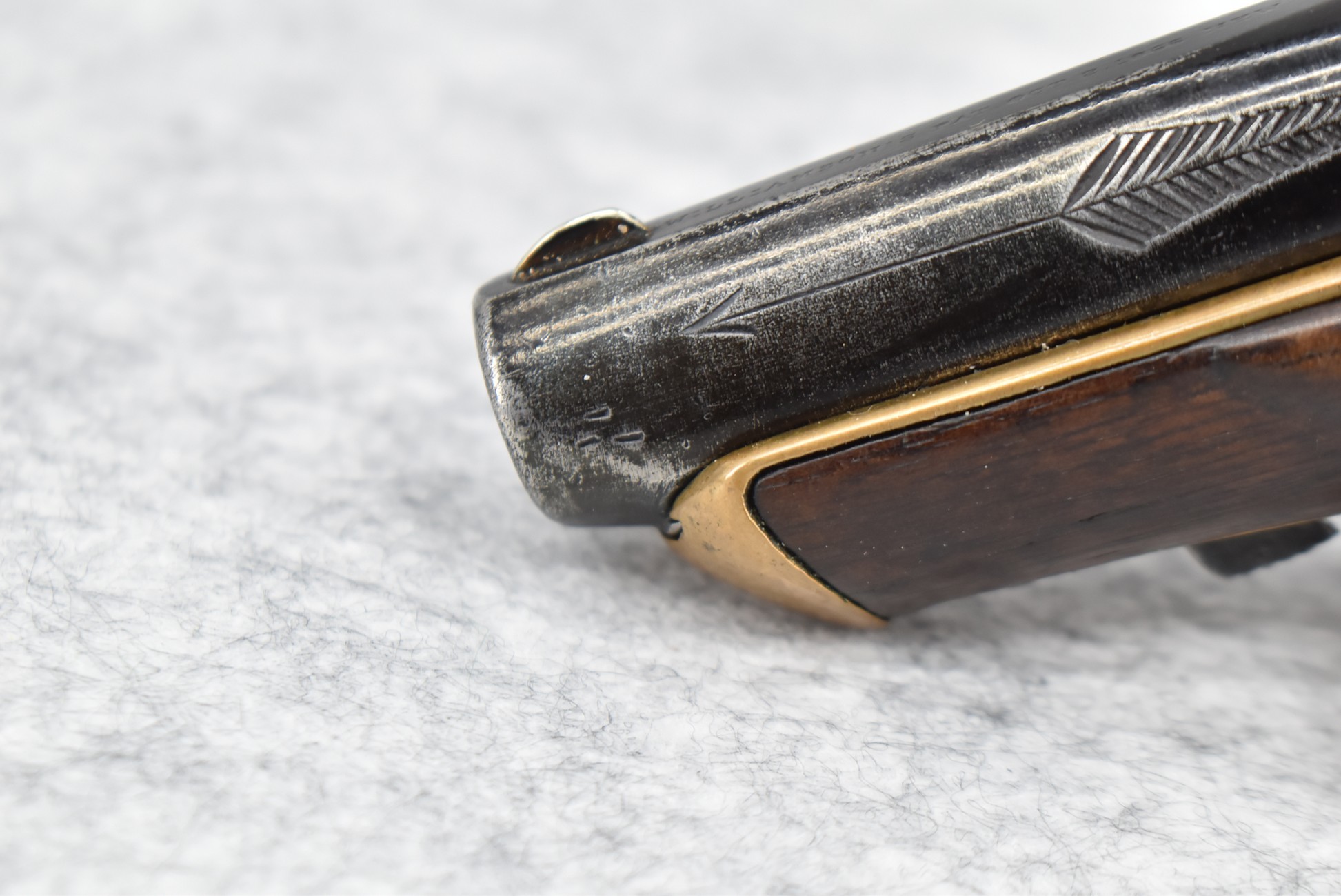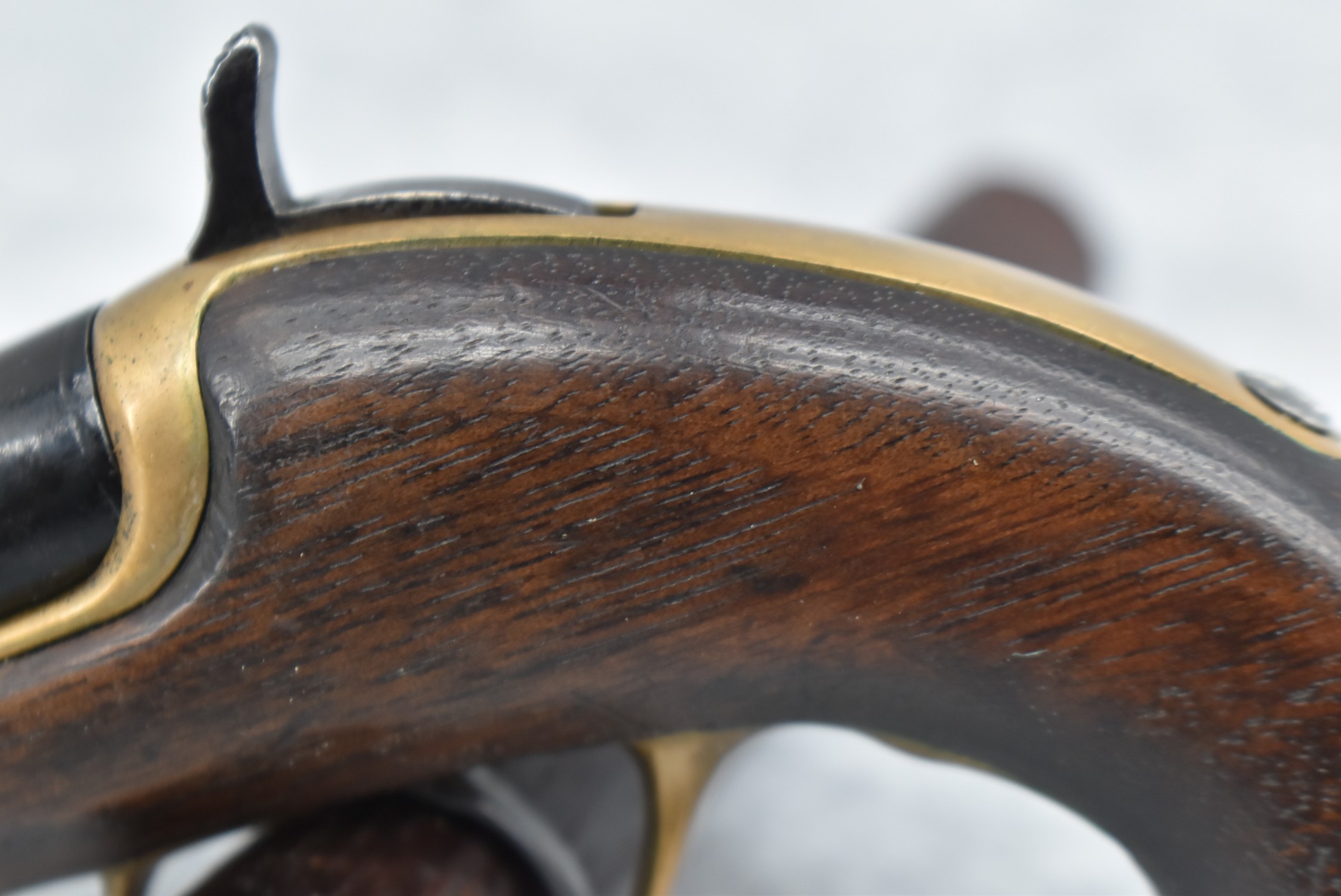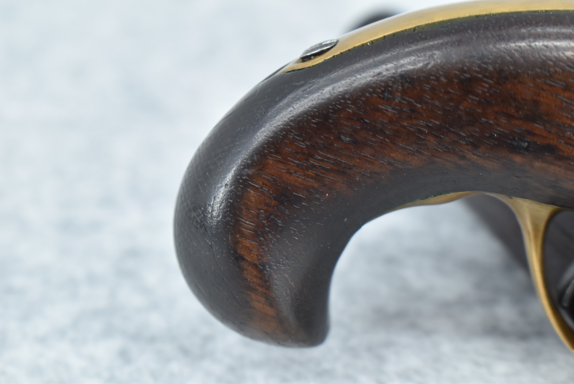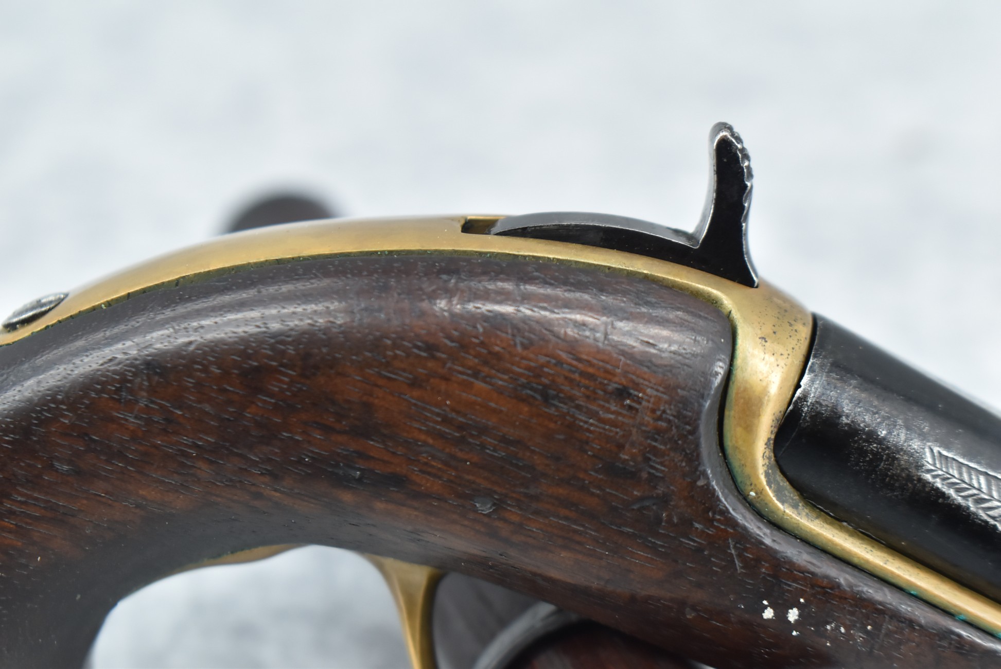 287. Williamson – 41 RF Short Cal. Single Shot Philadelphia Style Deringer Pistol – w/2 ½” Barrel w/Blade Front – Blued Finish – w/Pistol Grip Wood Stock w/Brass Furniture – w/Wooden Display Box, Percussion Adapter & 6ct. of 41 Short RF Ammo