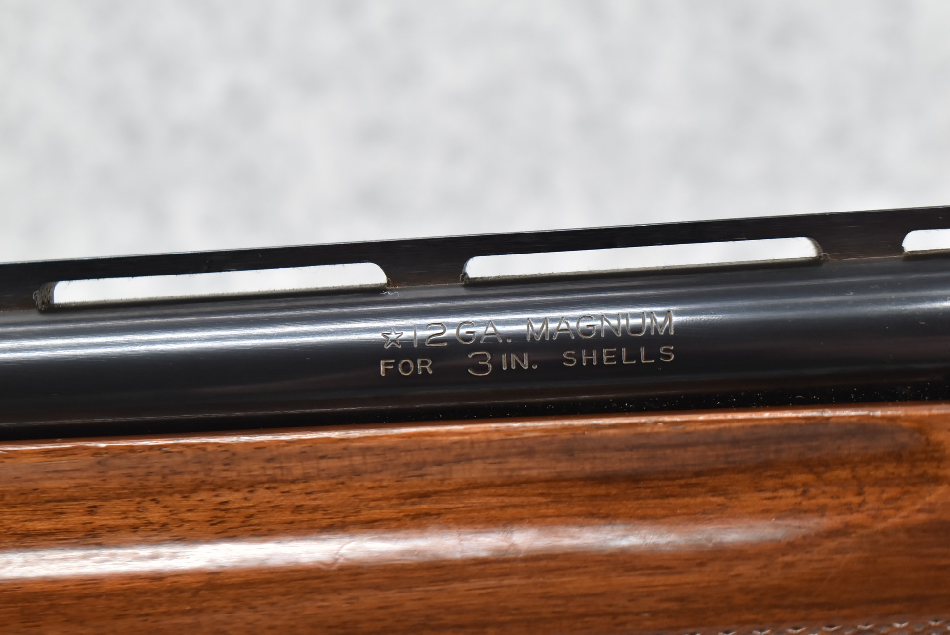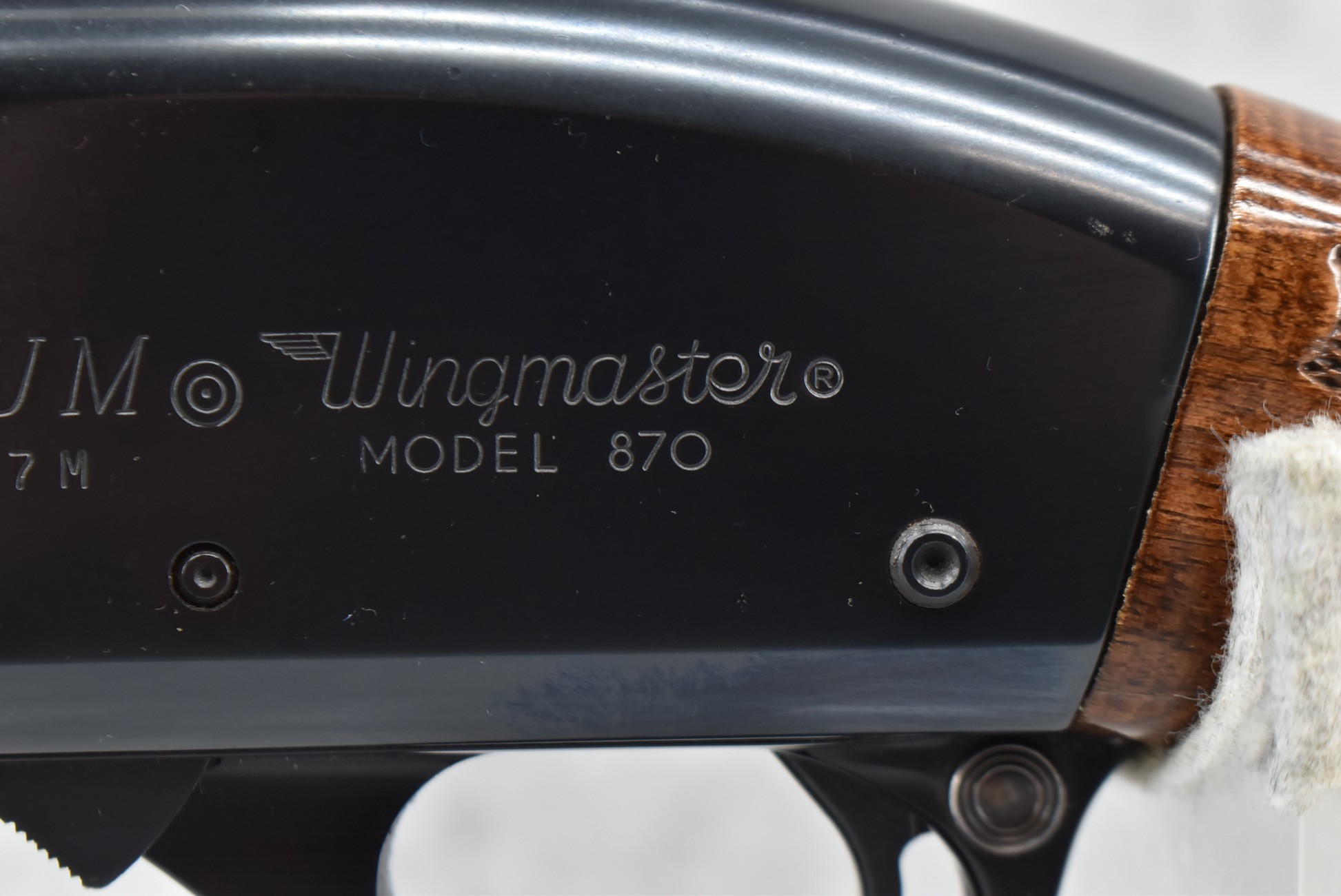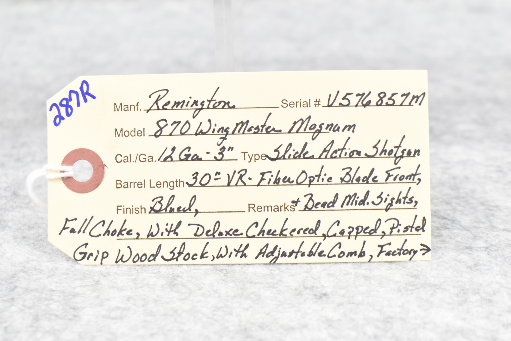 287R. Remington – Mod. 870 Wingmaster Magnum – 12ga. 3” Pump Action Shotgun – w/30” Full Choke, Vent-Rib Barrel w/Fiber Optic Blade Front & Bead Mid Sights – Blued Finish – w/Deluxe Checkered Capped Pistol Grip Wood Stocks w/Adjustable Comb & Factory Butt Pad