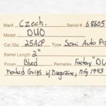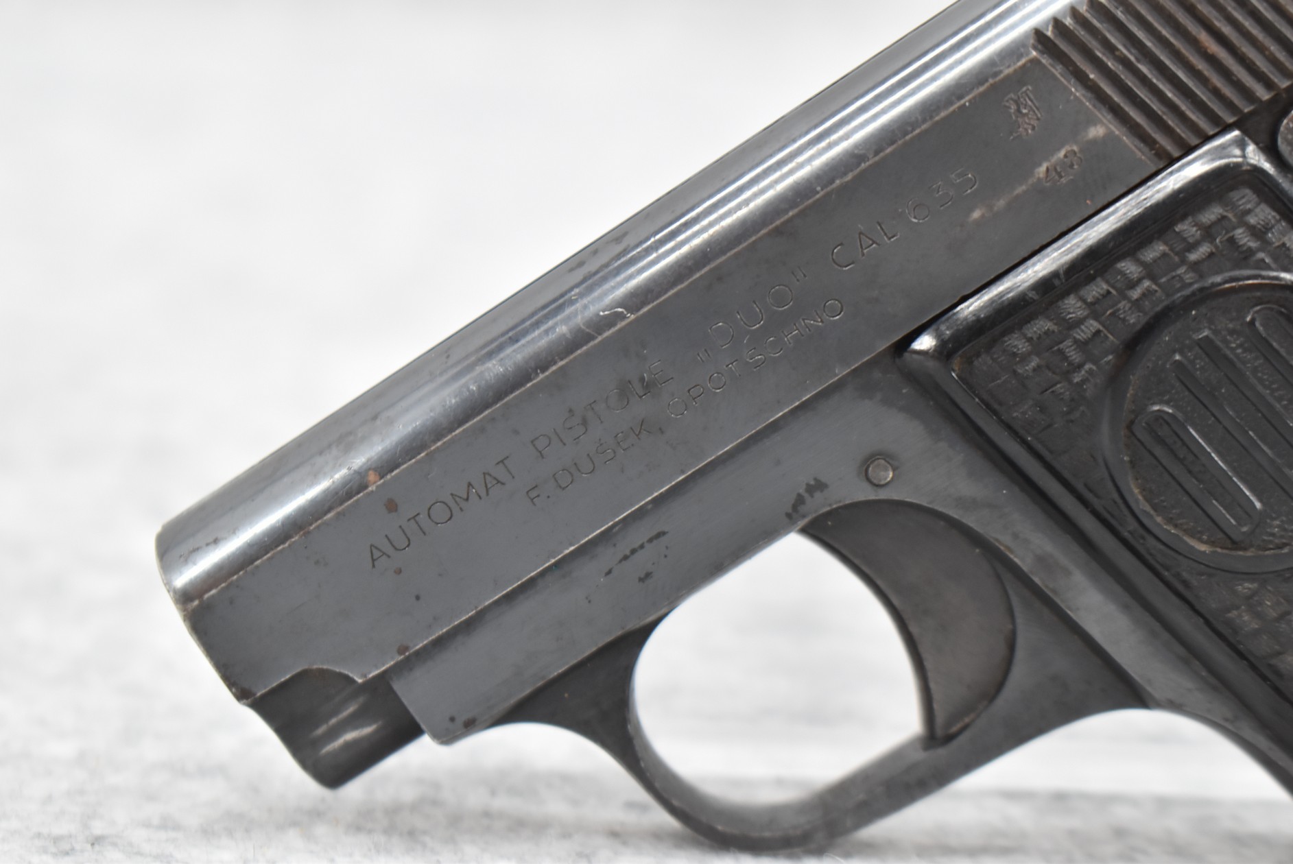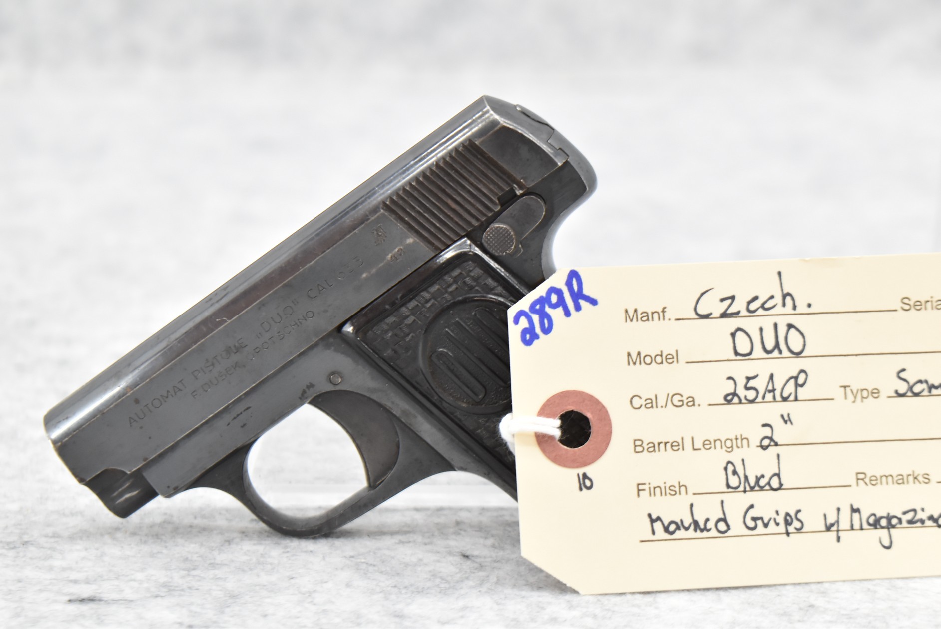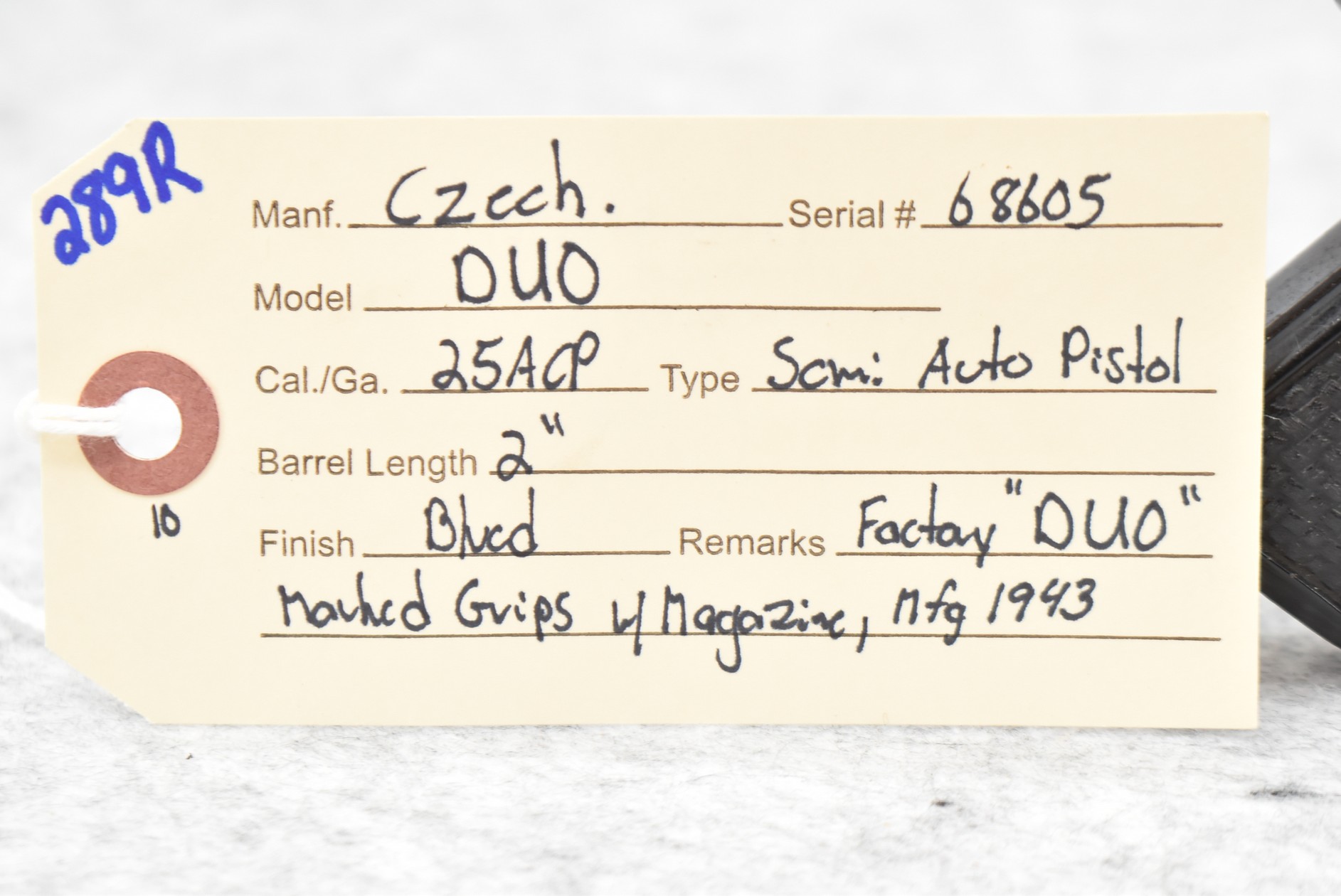 289R. Czech – Mod. DUO – 25 ACP Cal. Semi-Auto Pistol – w/2” Barrel – Blued Finish – w/Factory “DUO” Marked Grips – w/Magazine – Mfg. 1943