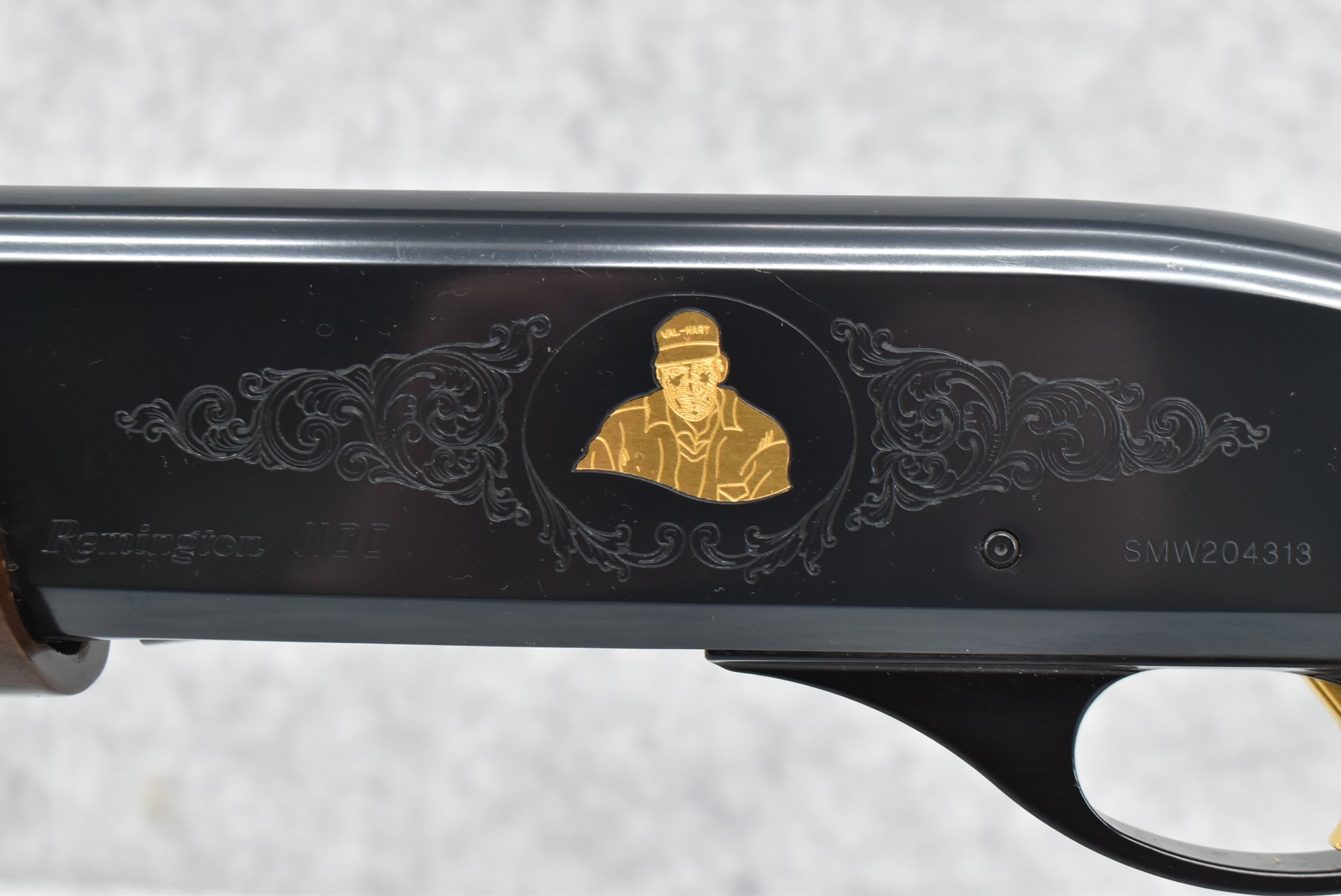 290R. Remington – Mod. 1100 – Sam Walton Limited Edition – 20ga. 2 ¾” Semi-Auto Shotgun – w/23” Vent-Rib Barrel w/Double Bead Sights & Rem Choke – Blued Finish – Engraved & Gold Inlaid Sam Walton Portrait & Signature – w/Straight Grip Checkered Wood Stocks w/Factory Butt Pad – w/Gold Trigger – Only 5,000 Mfg.