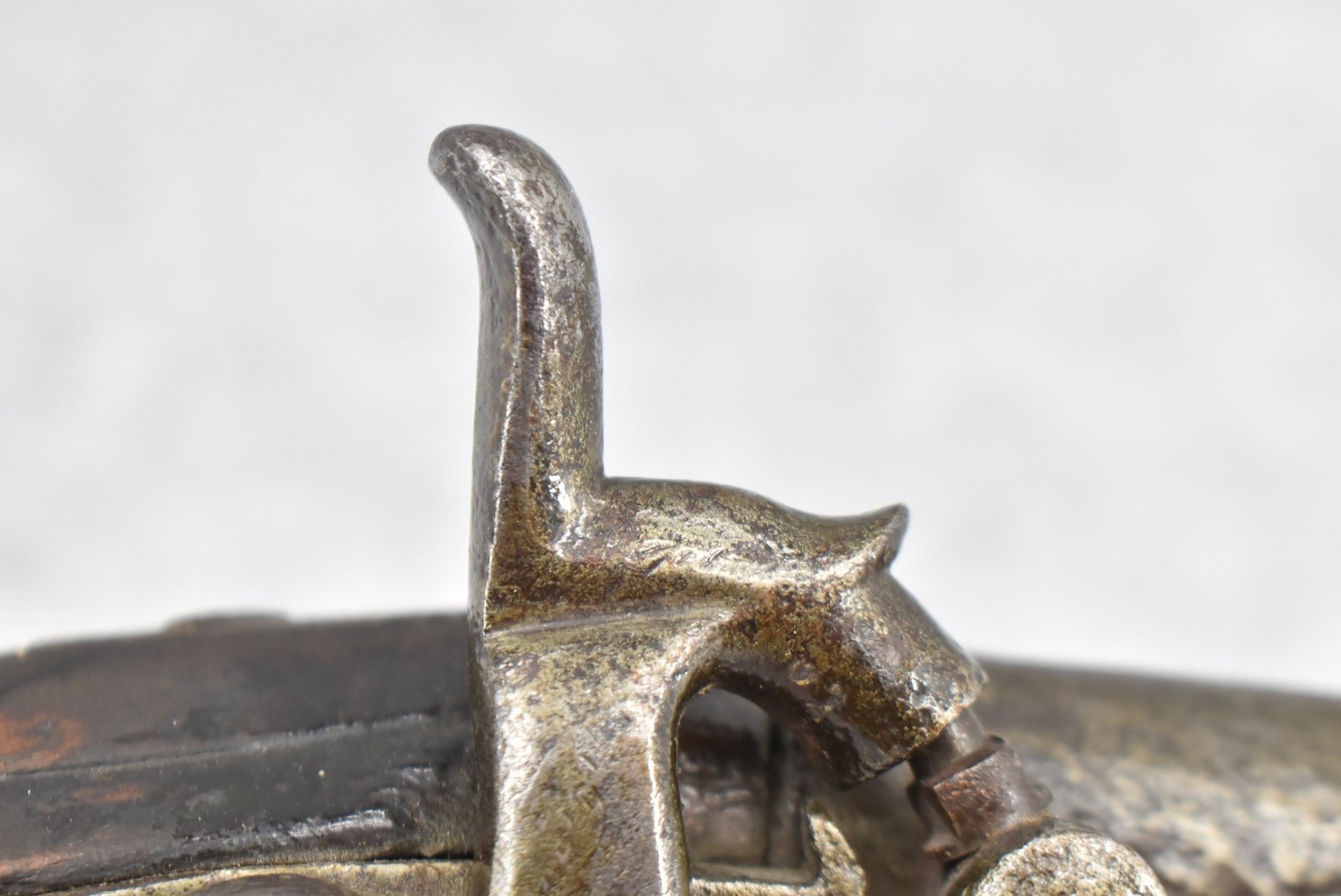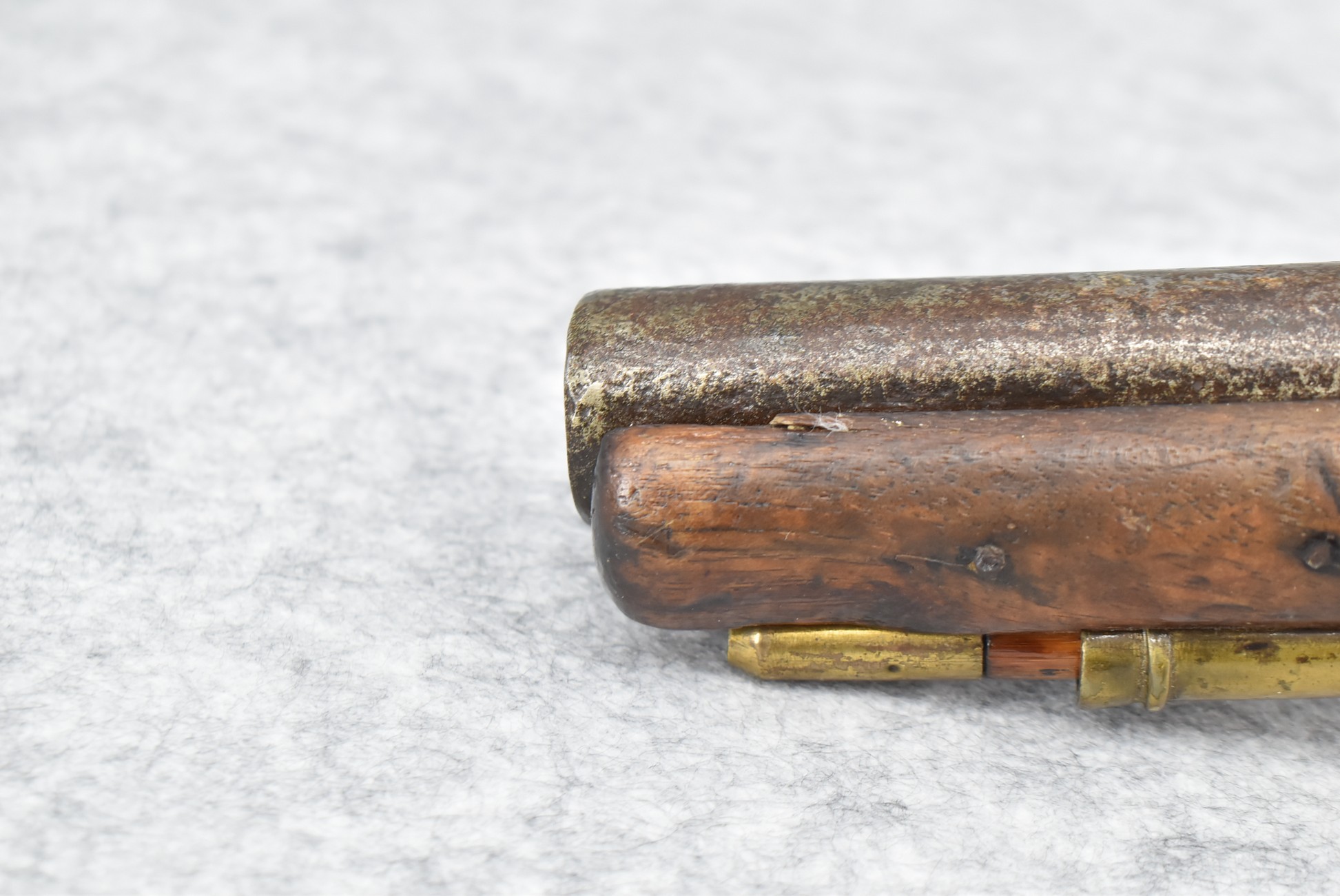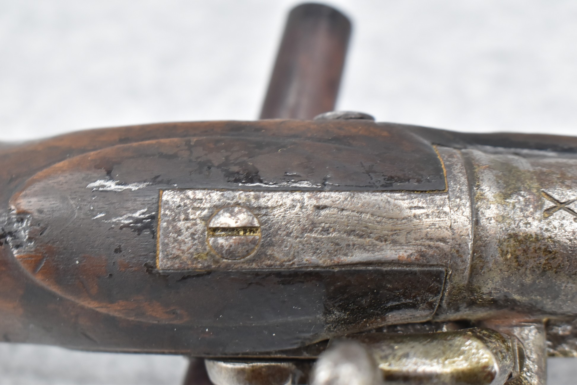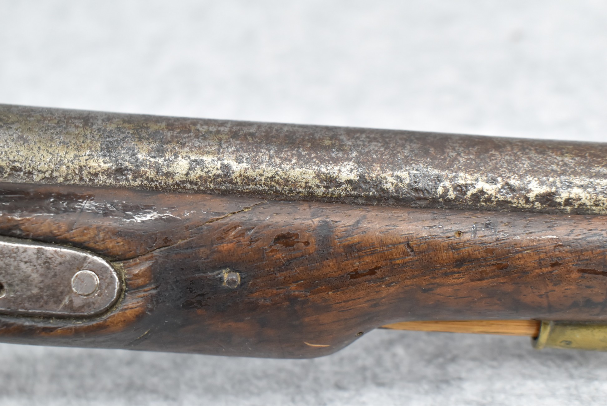 291. Dublin Castle (Ireland) – 70 Cal. Light Dragoon Pistol Converted to Percussion – w/9” Round Barrel – Gray Finish – w/Pistol Grip Wood Stock w/Brass Grip Cap & Brass Furniture – Lock Marked “G.R.” & “Dublin Castle” Marked in Shield on Tail of Lock – Top of Barrel Marked “C N 5697” – w/Ram Rod – Note: Action Needs Adjustment