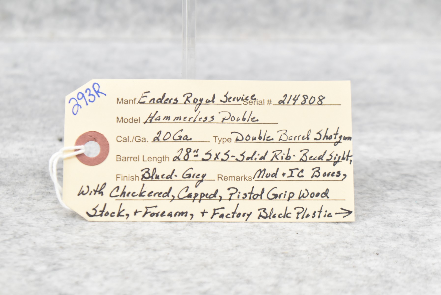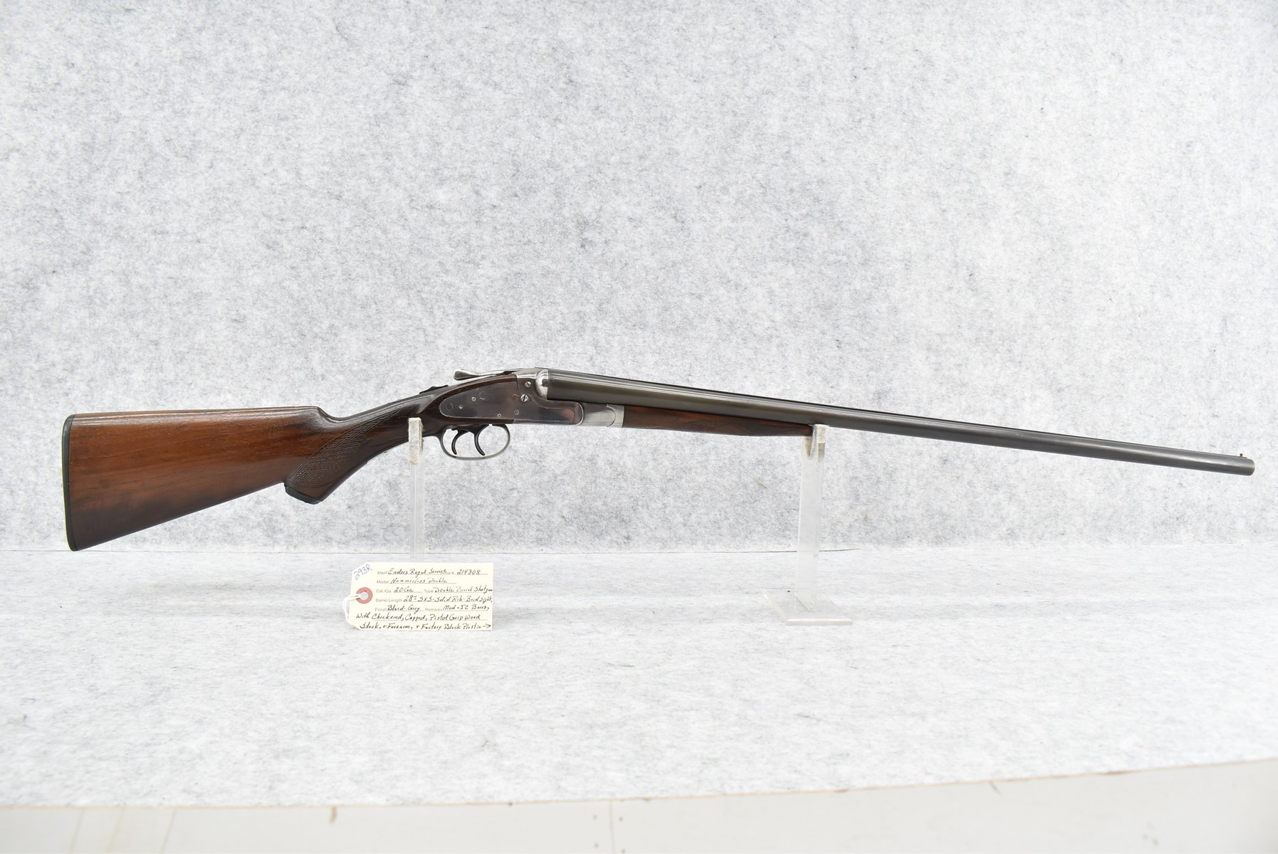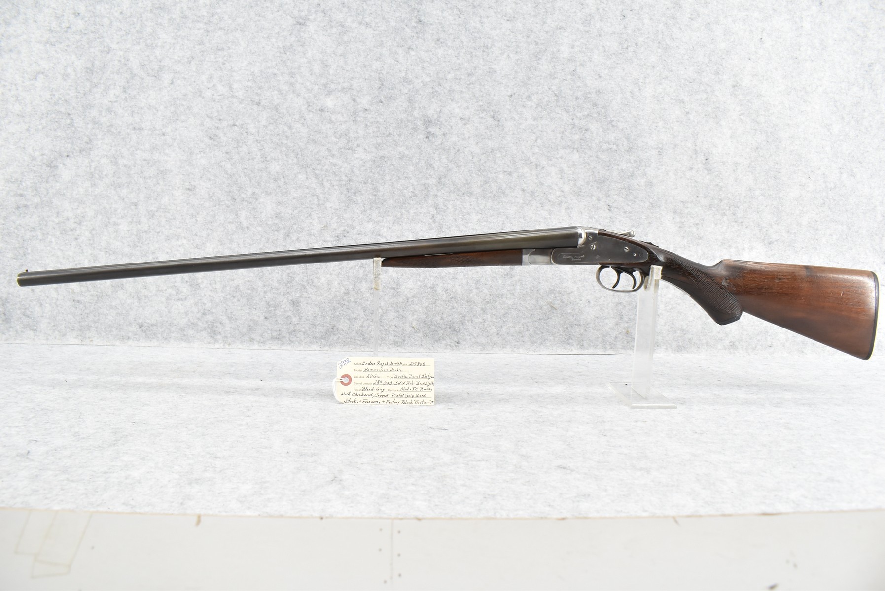 293R. Enders Royal Service – Mod. Hammerless Double – 20ga. Double Barrel Shotgun – w/28” Mod. & IC Choked, Solid Rib Barrels w/Bead Sight – Blued/Gray Finish – w/Checkered Capped Pistol Grip Wood Stocks w/Factory Butt Plate – w/Double Triggers