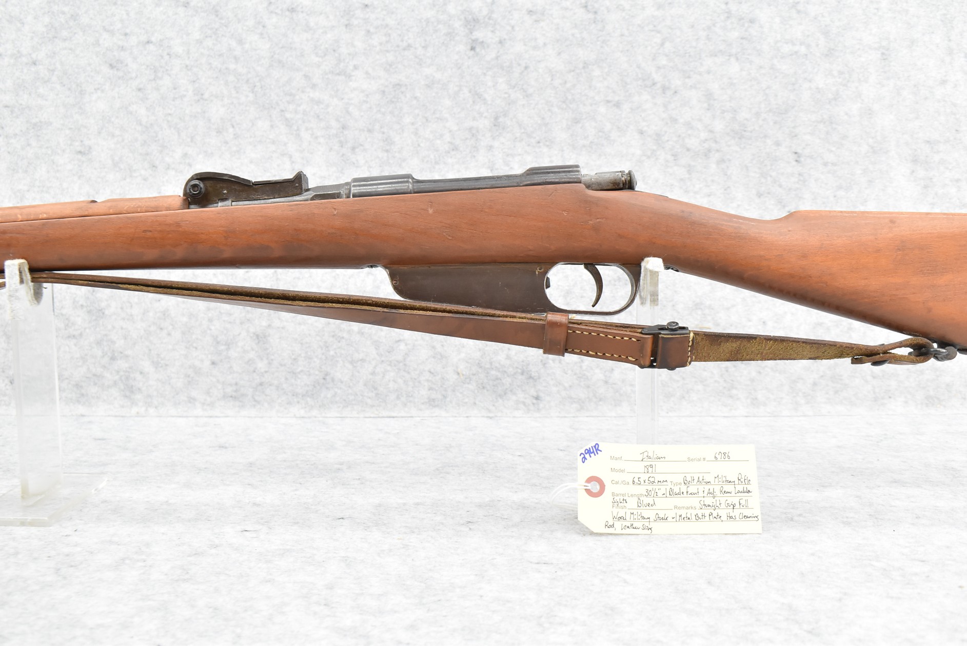 294R. Italian – Mod. 1891 – 6.5x52mm Cal. Bolt Action Military Rifle – w/30 ½” Barrel w/Blade Front & Adj. Rear Ladder Sights – Blued Finish – w/Straight Grip Full Wood Military Stock w/Metal Butt Plate – w/Leather Sling – w/Cleaning Rod
