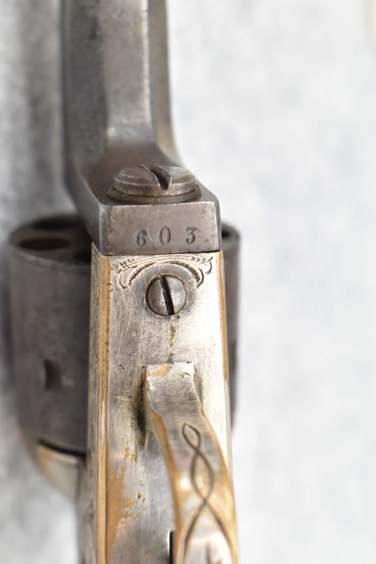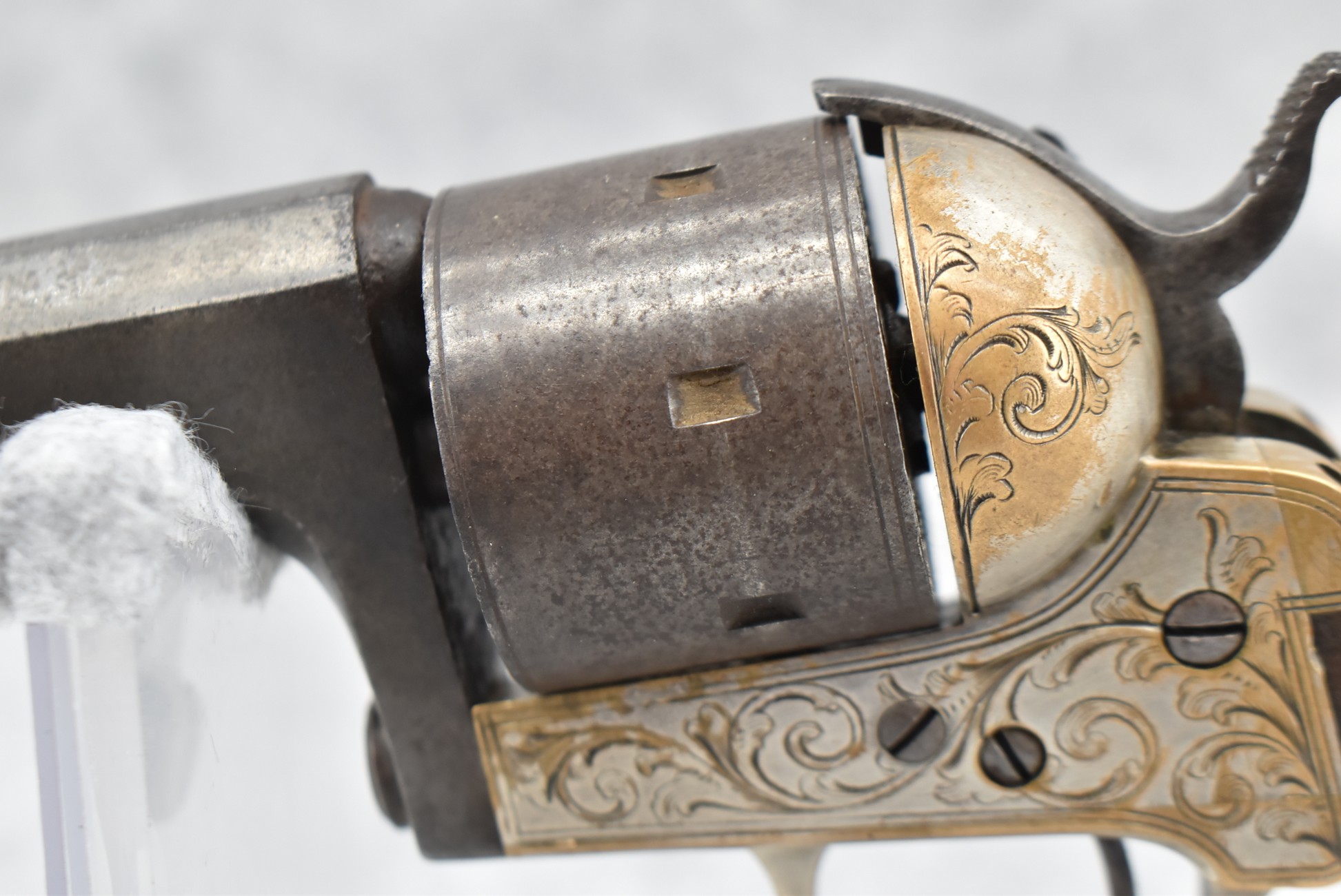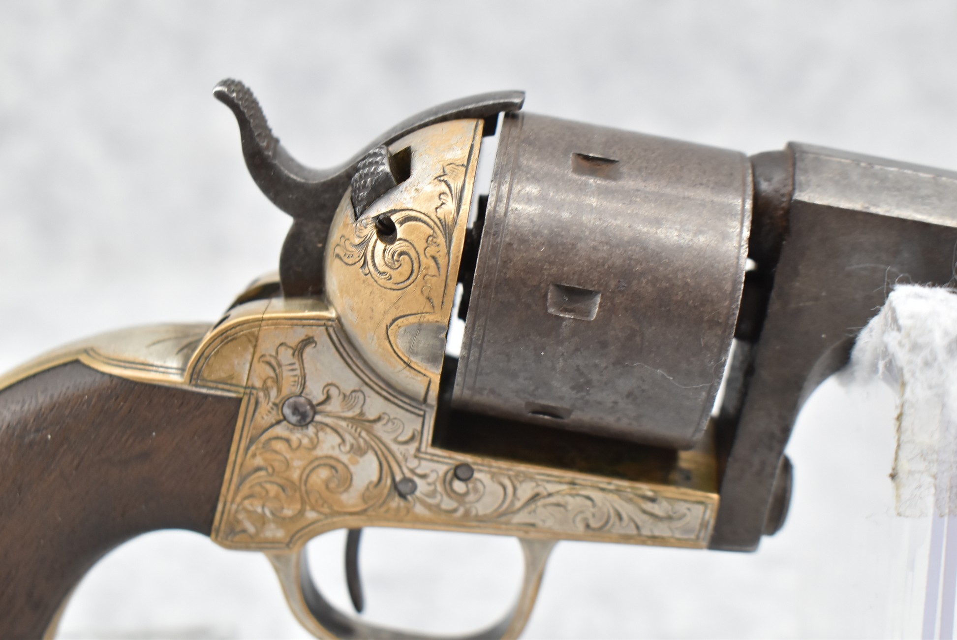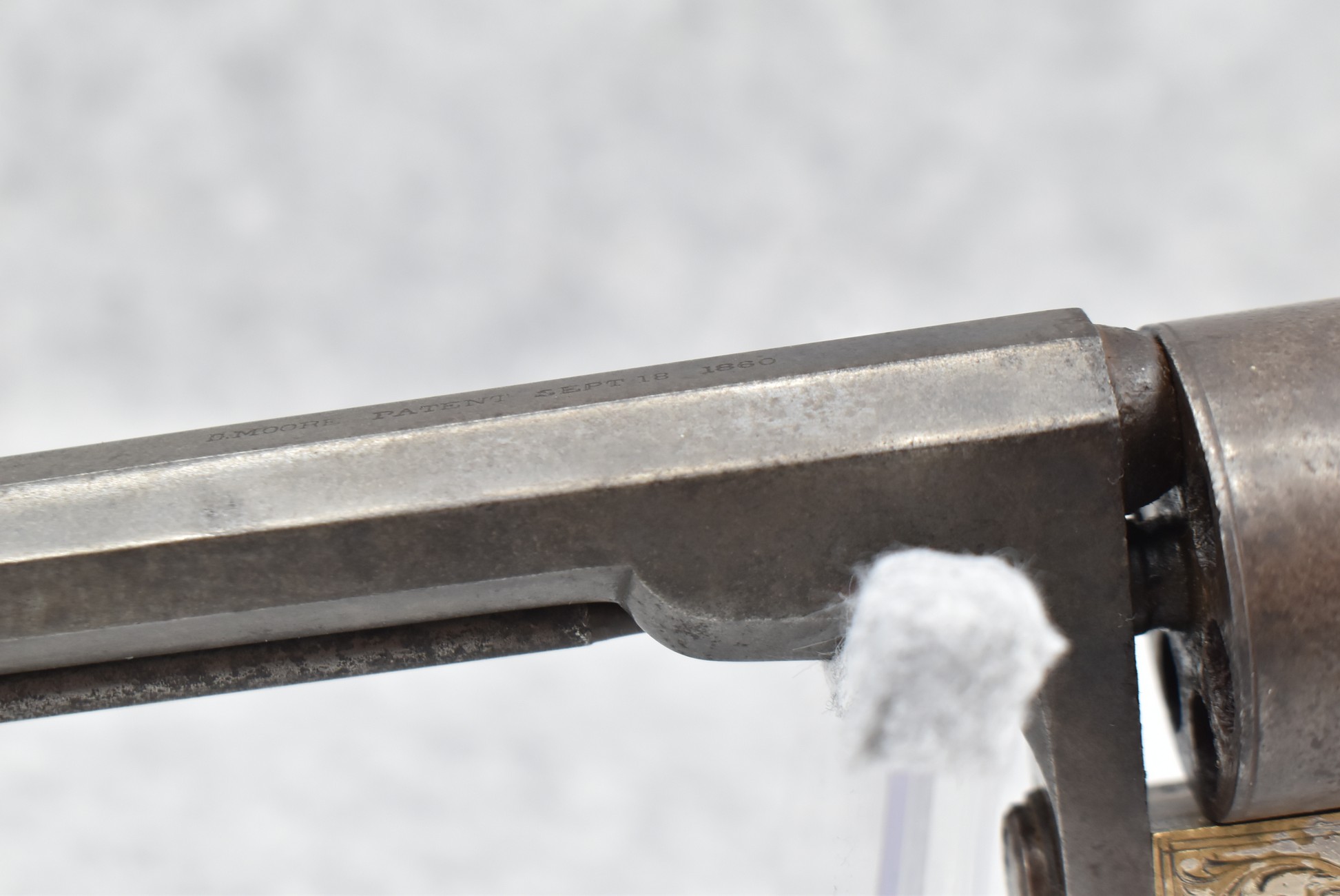 295. Moores Patent Firearms Co. – Mod. Single Action Belt Revolver “Seven Shooter” – 32 Cal. RF Single Action Revolver – w/6” Octagon Barrel w/Bead Front & Hammer Notch Rear Sights – Gray Finish w/Brass Frame – w/Factory Wood Grips – Approx. 5,000-8,000 Mfg. Between 1861-1863