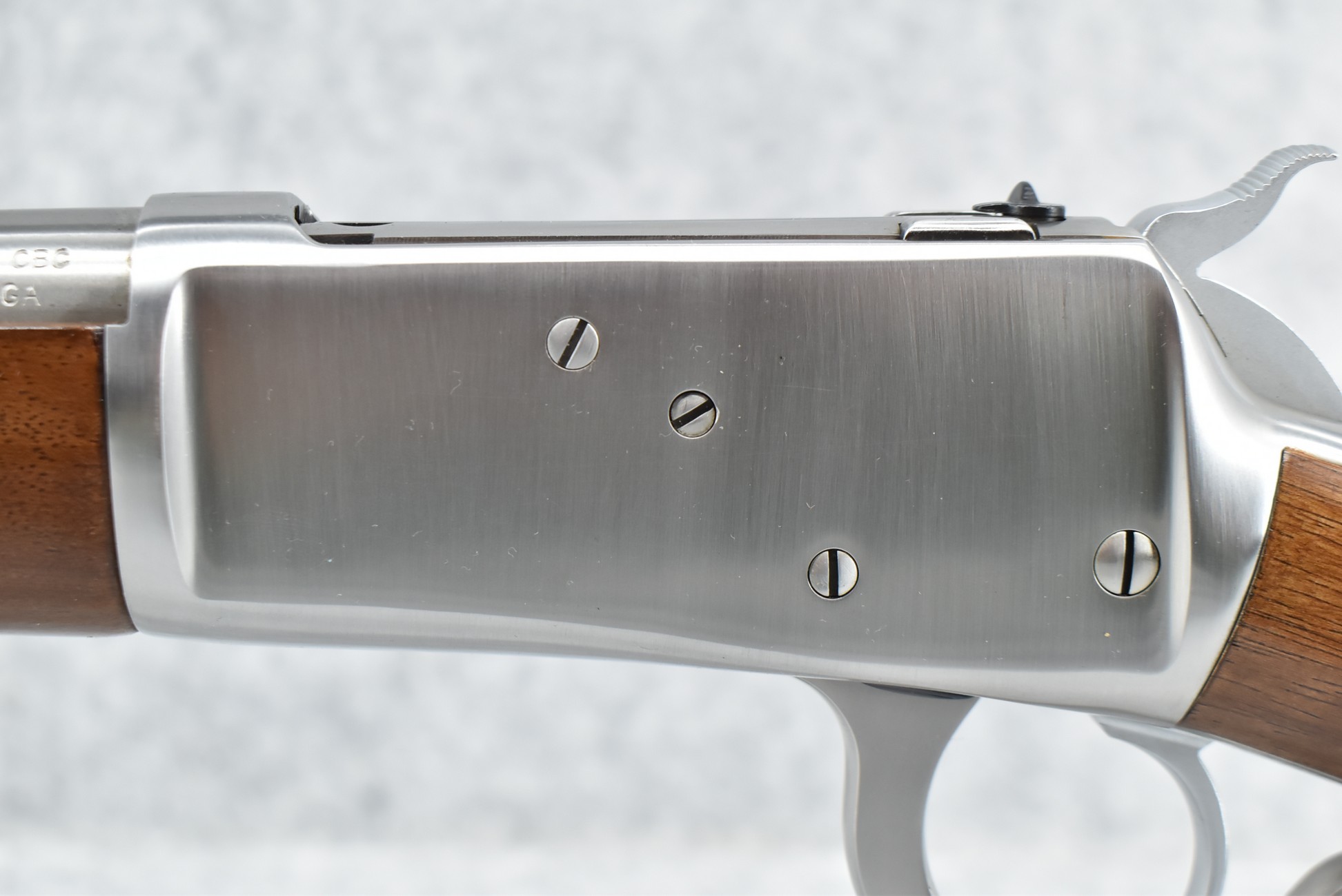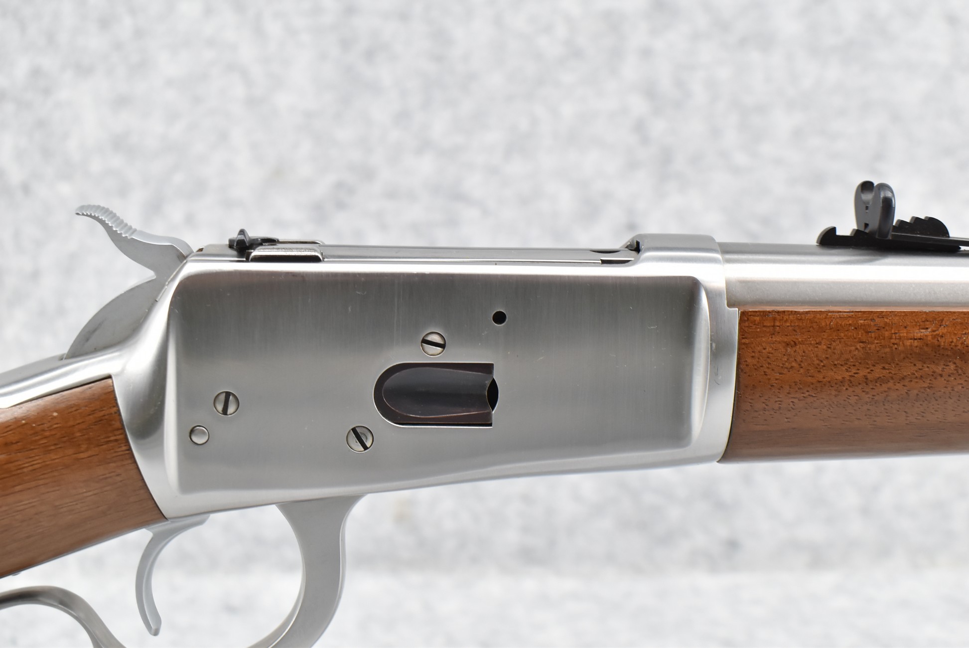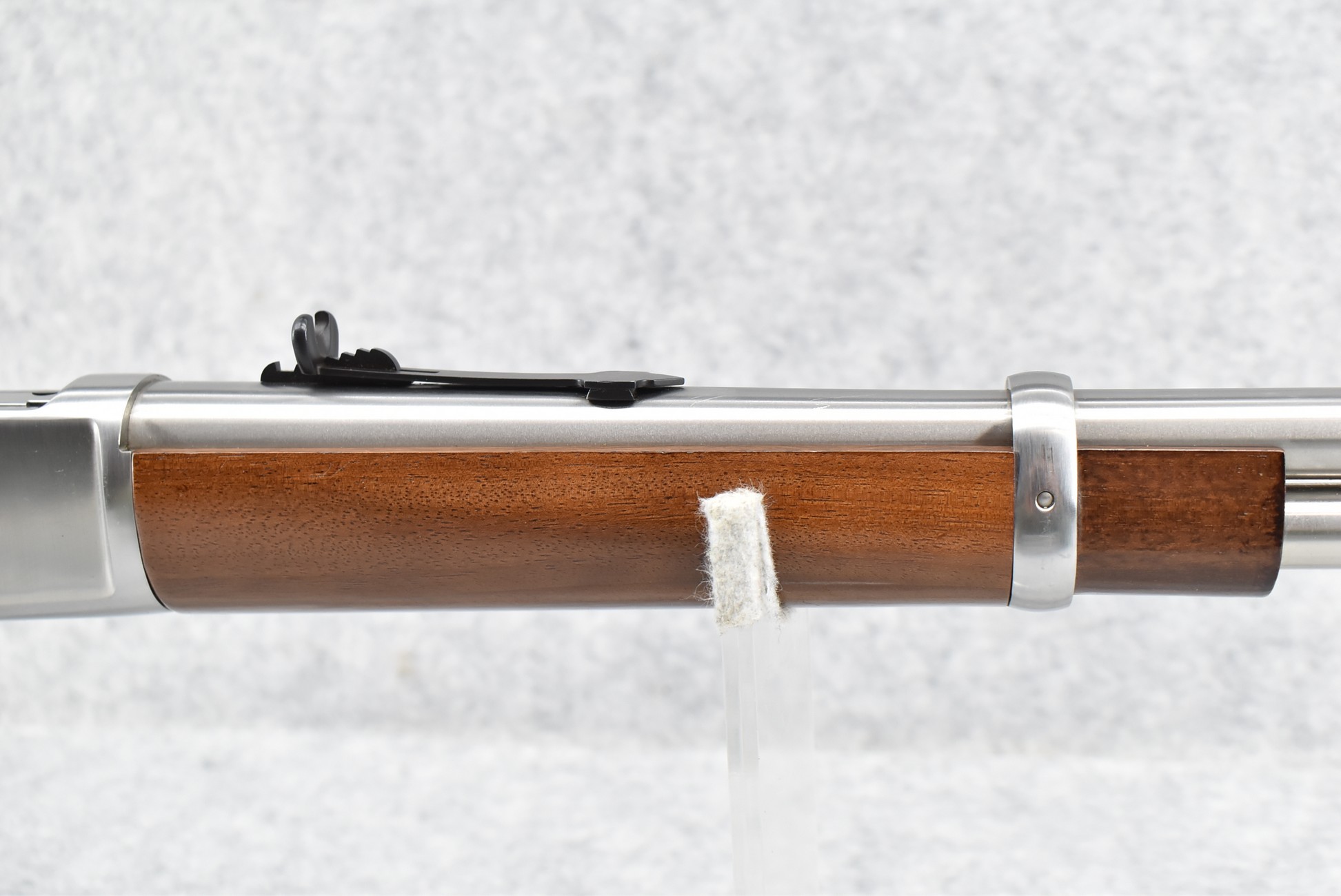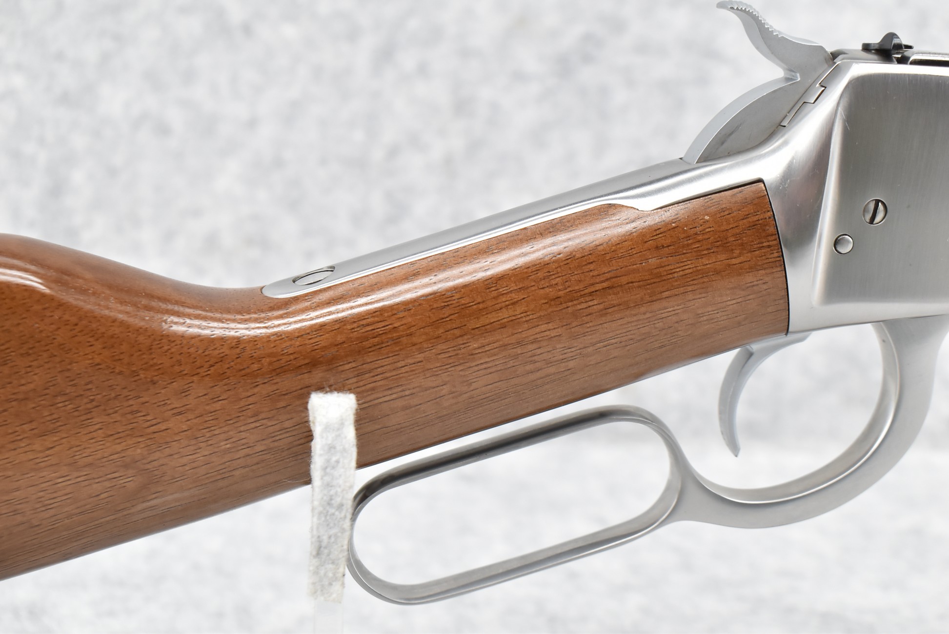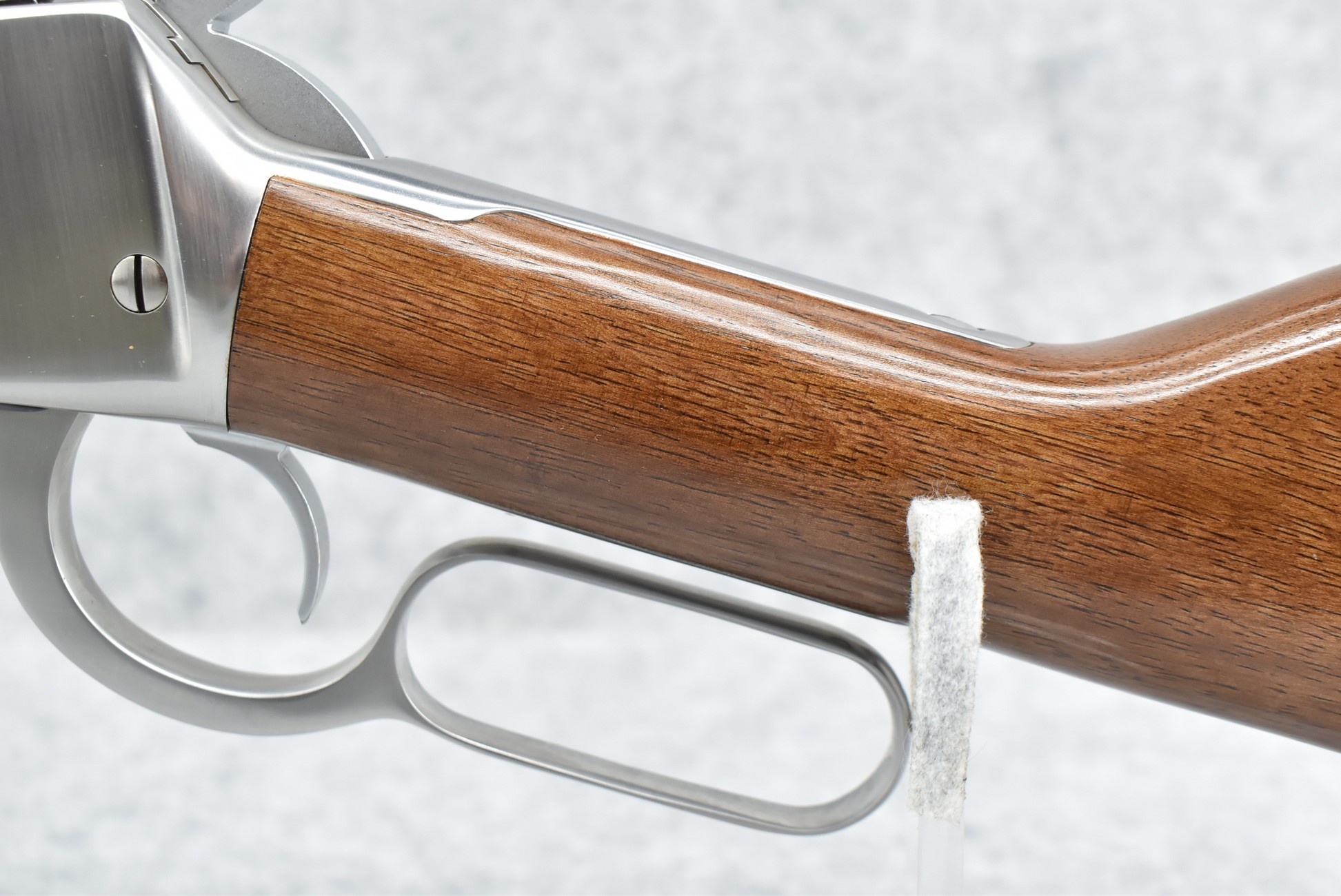 295R. Rossi – Mod. R-92 – 45 Colt Cal. Lever Action Rifle – w/20” Barrel w/Factory Blade Front & Adj. Rear Sights w/Full Length Tubular Magazine – Bright Stainless Finish – w/Straight Grip Wood Stocks w/Carbine Metal Butt Plate