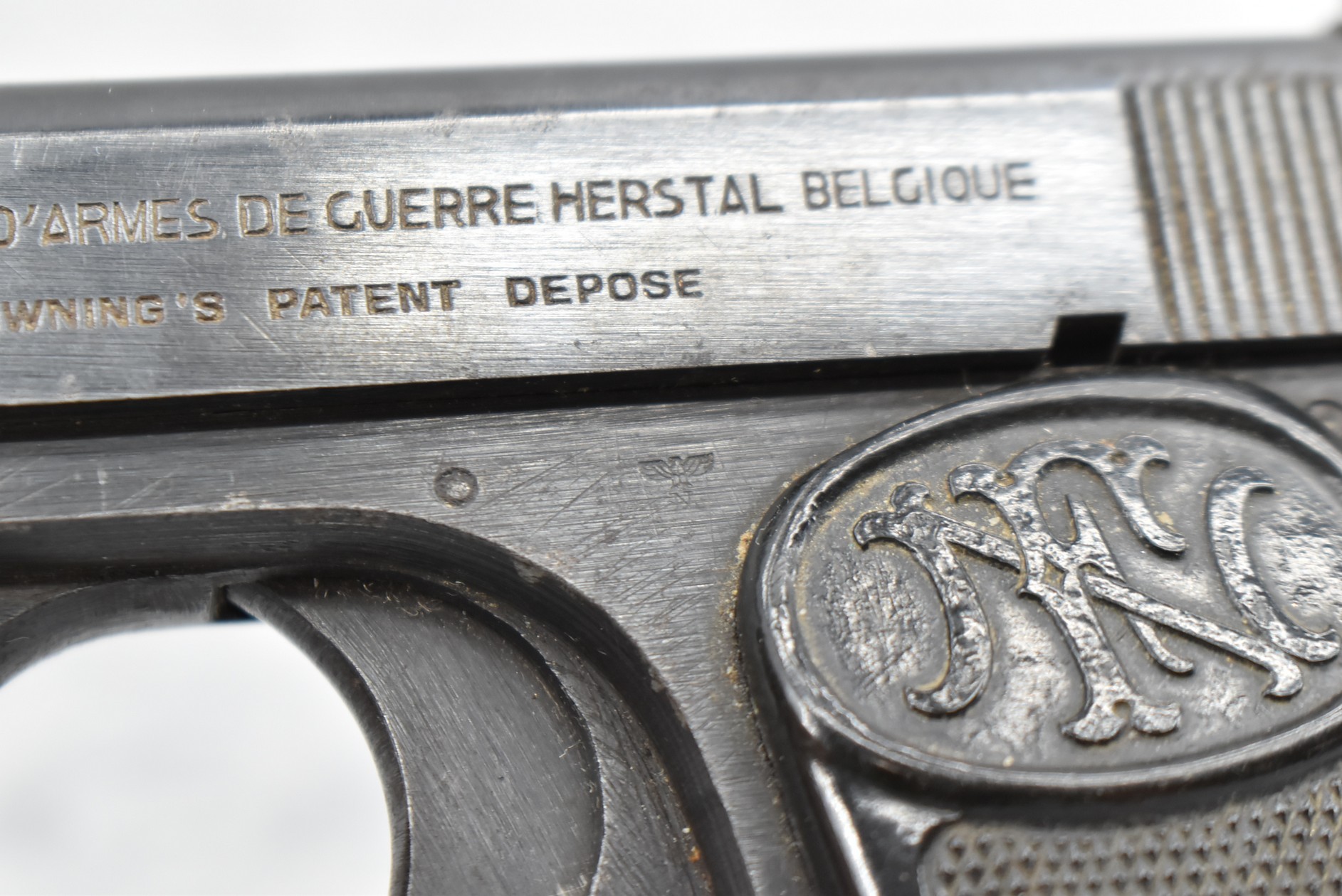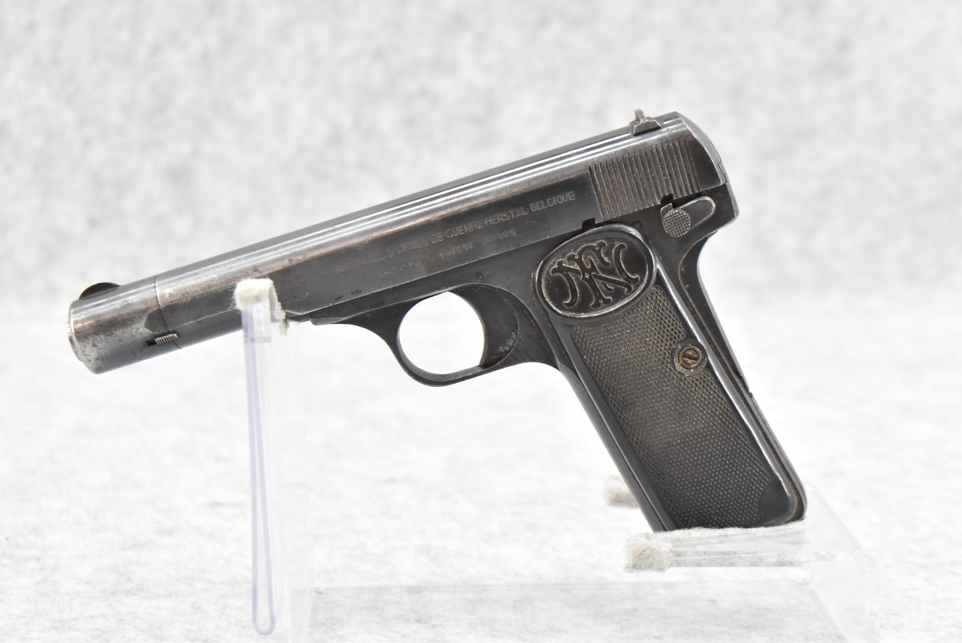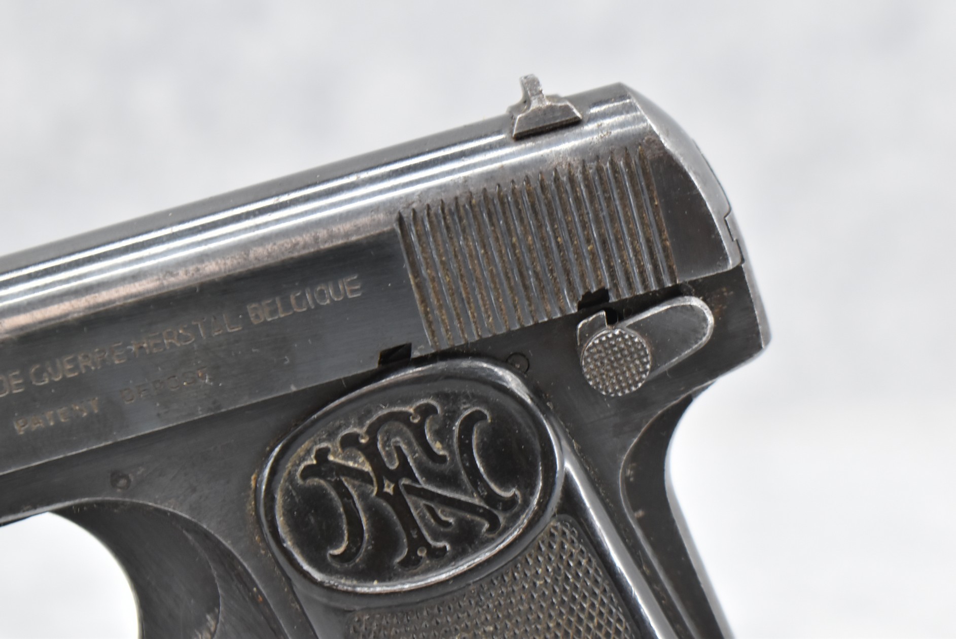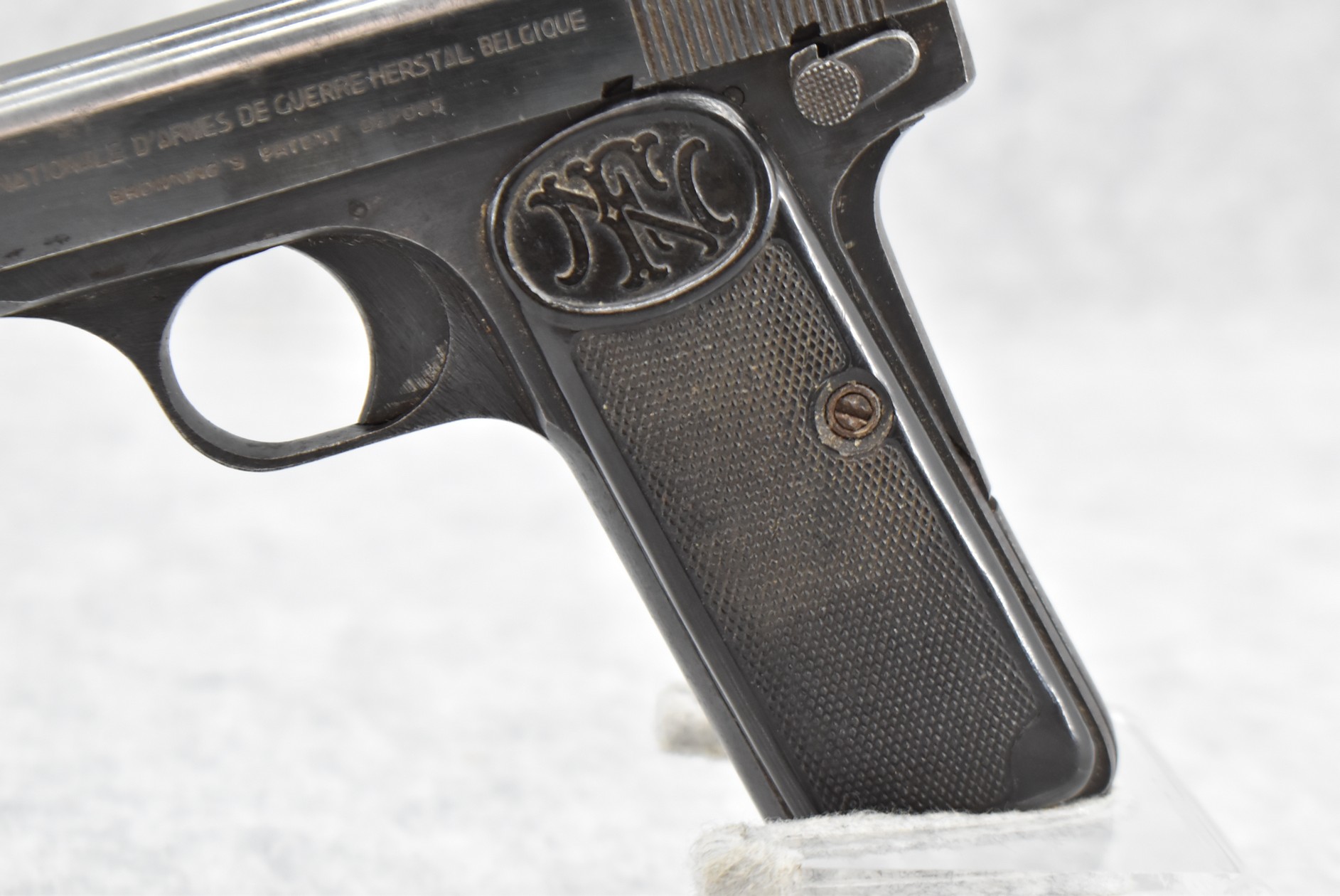 298R. FN – Mod. 1910/22 – 7.65 Cal. Semi-Auto Pistol – w/4 3/8” Barrel w/Front & Rear Sights – Blued Finish – w/Factory Grips – w/Factory Mag – All Matching Numbers – German Acceptance Marked Several Times