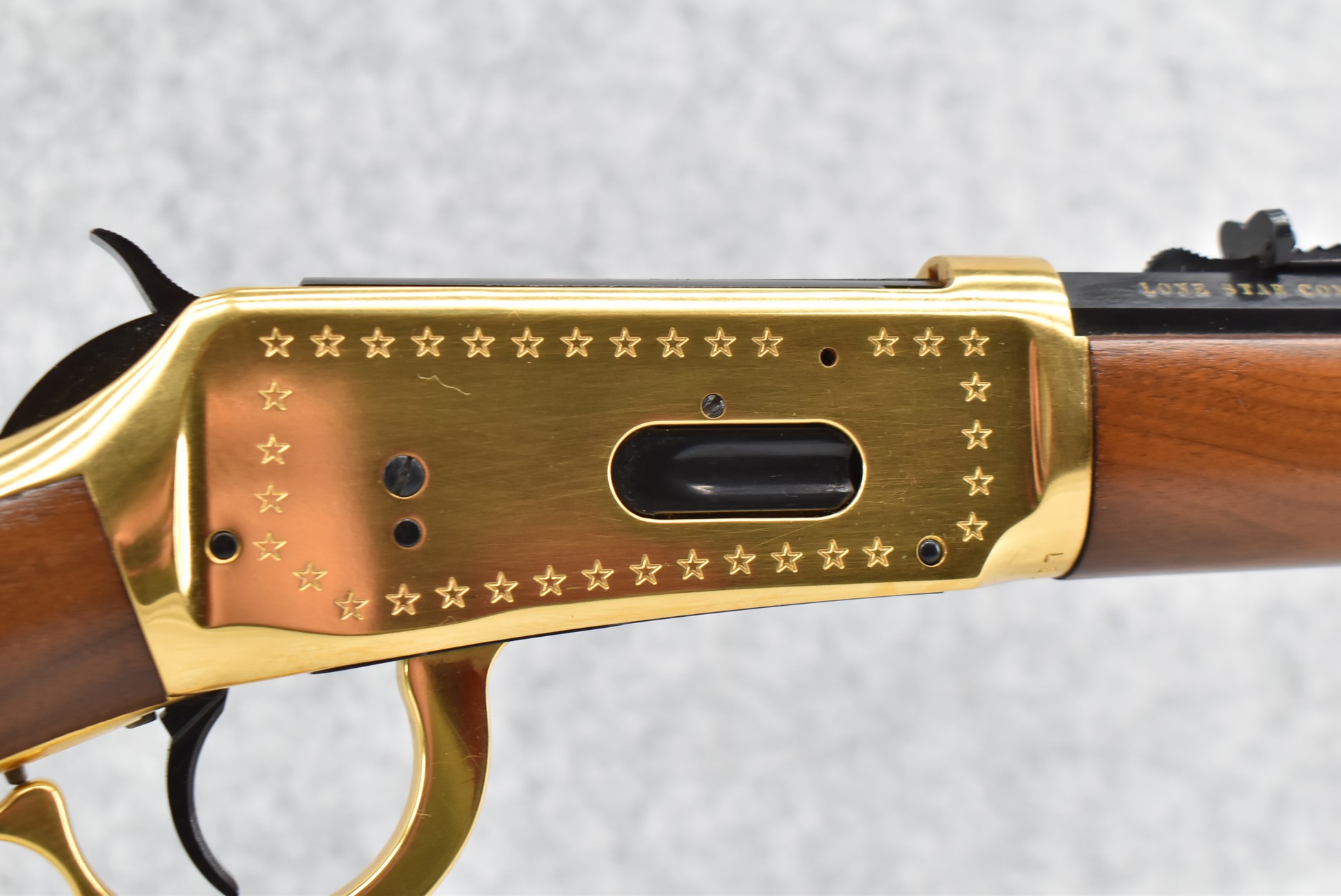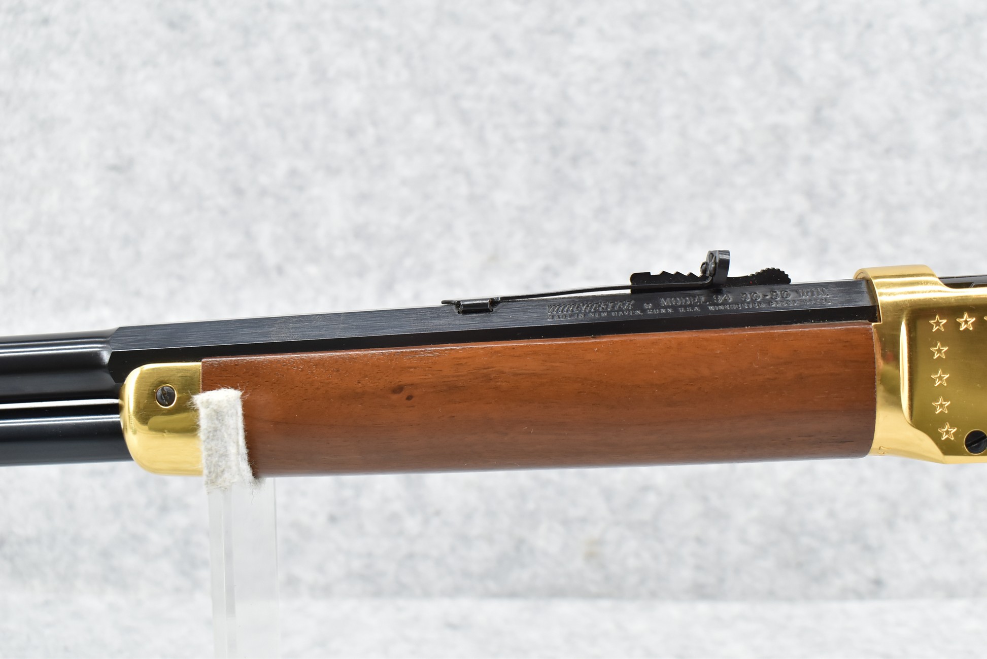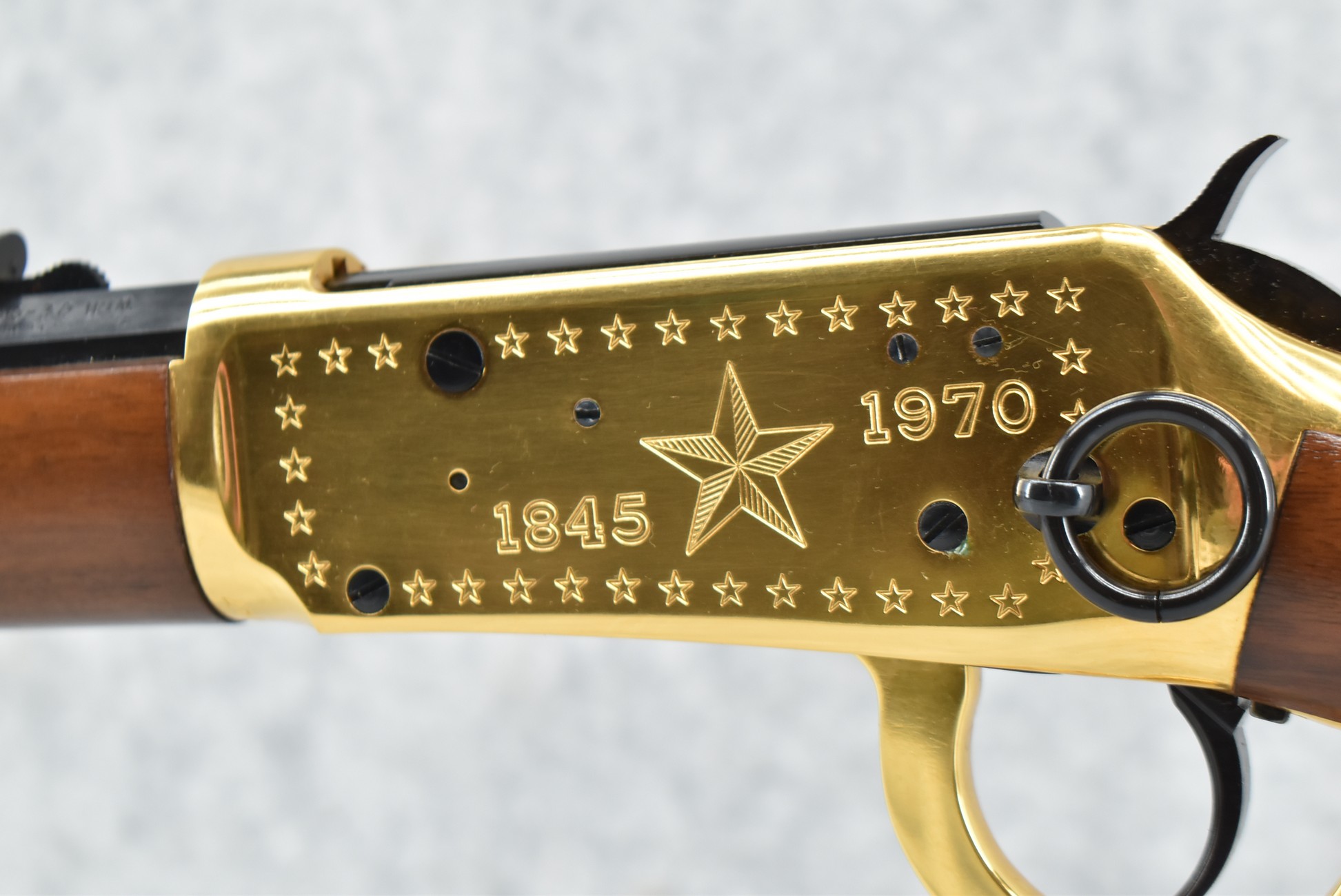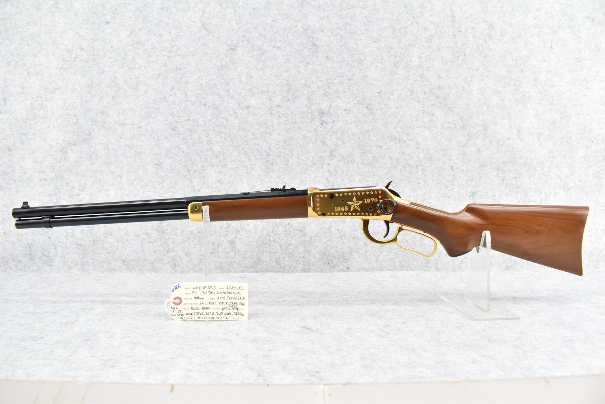 298R. Winchester – Mod. 94 – “Lone Star Commemorative” – 30-30 Win. Cal. Lever Action Rifle – w/20” Barrel w/Front Blade & Rear Adj. Sights w/Full Length Tubular Magazine – Blued/Brass Finish – w/Pistol Grip Wood Stocks w/Brass Butt Plate, Brass Accents & Medallion in Stock – Mfg. 1970, Total 38,385 Mfg.