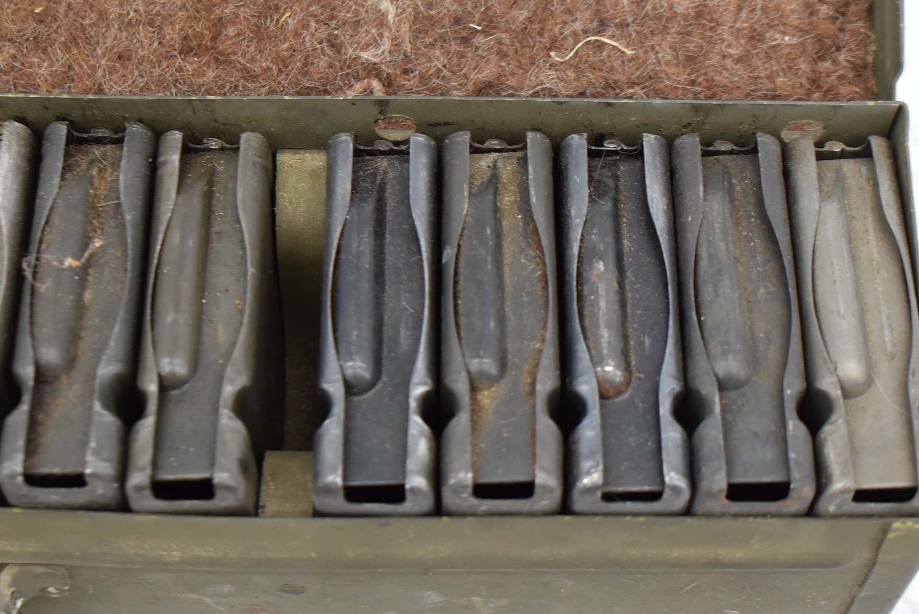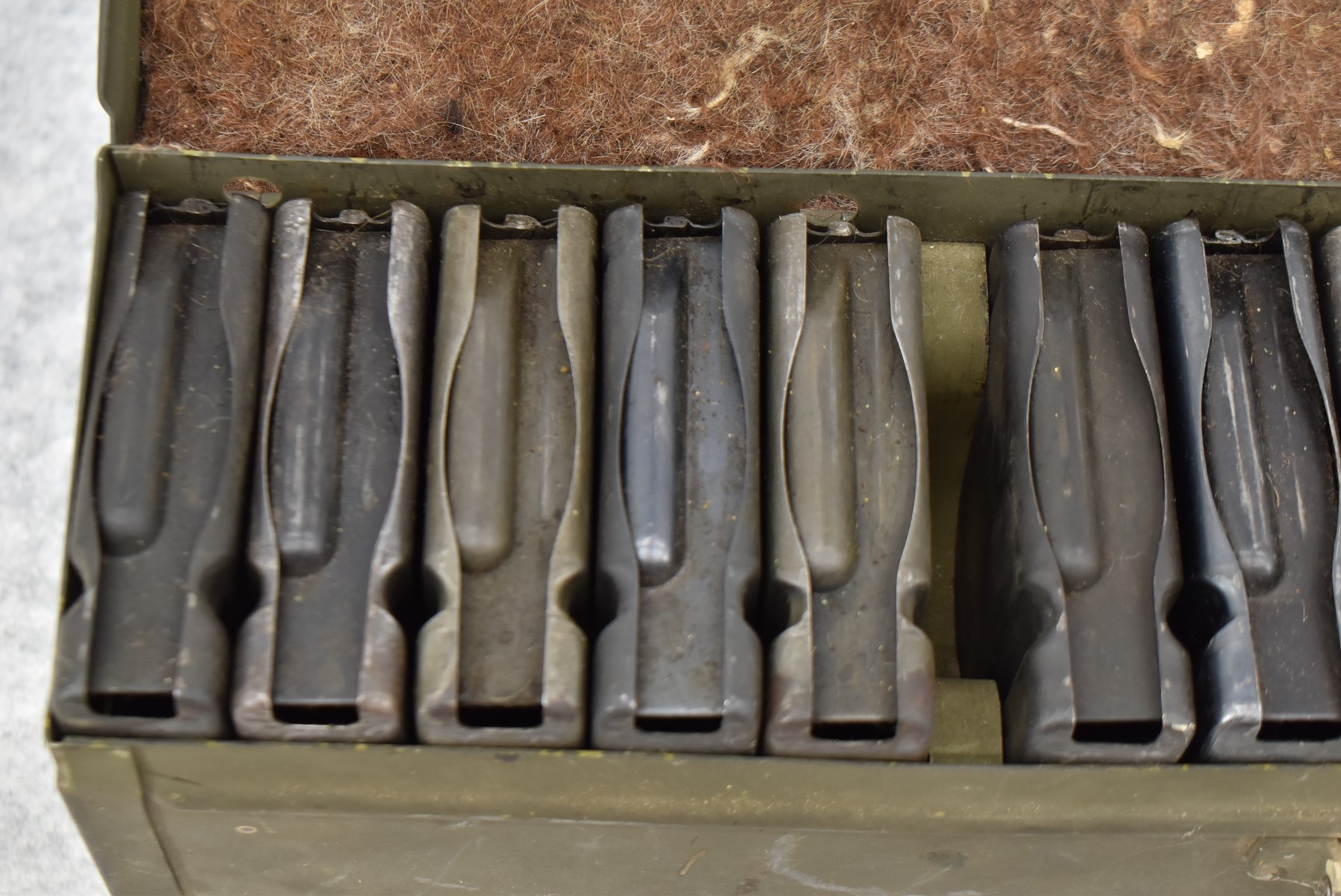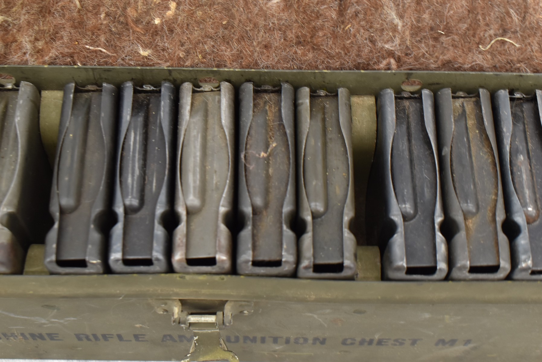 3. Fifteen 20Rd BAR Mags in Metal Carry Case w/Leather Handle – Chest Marked “Machine Rifle Ammunition Chest M1”