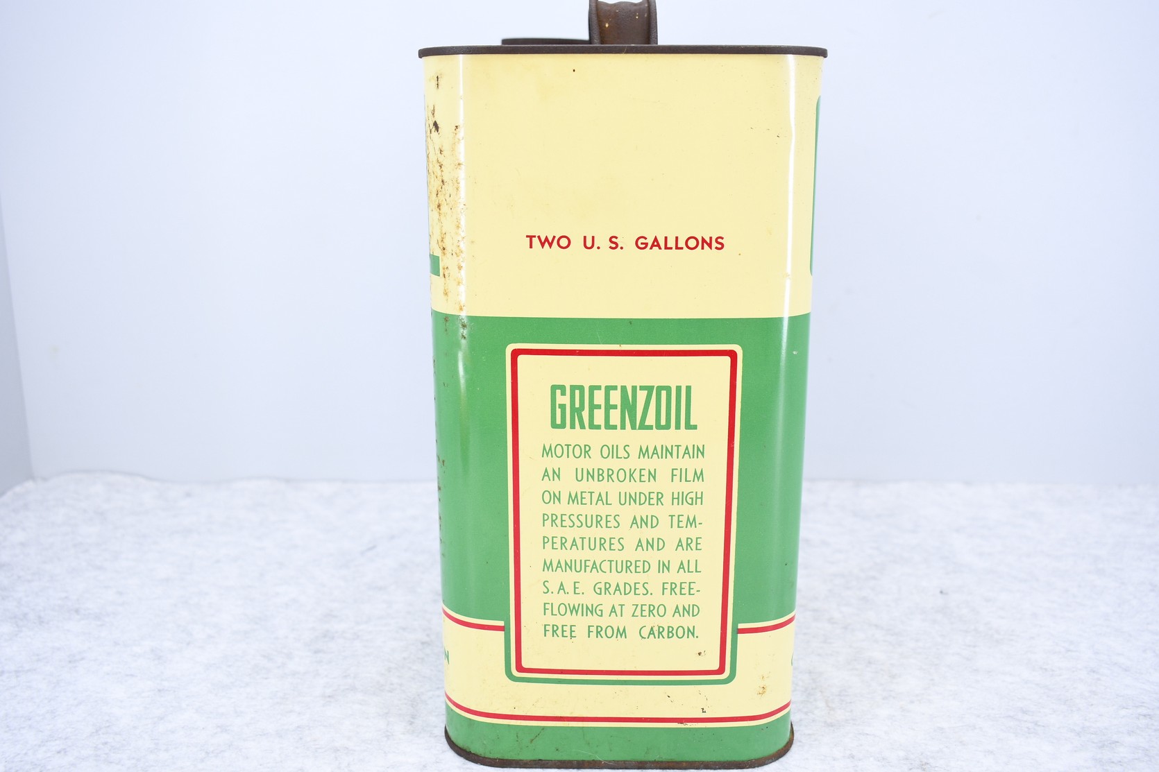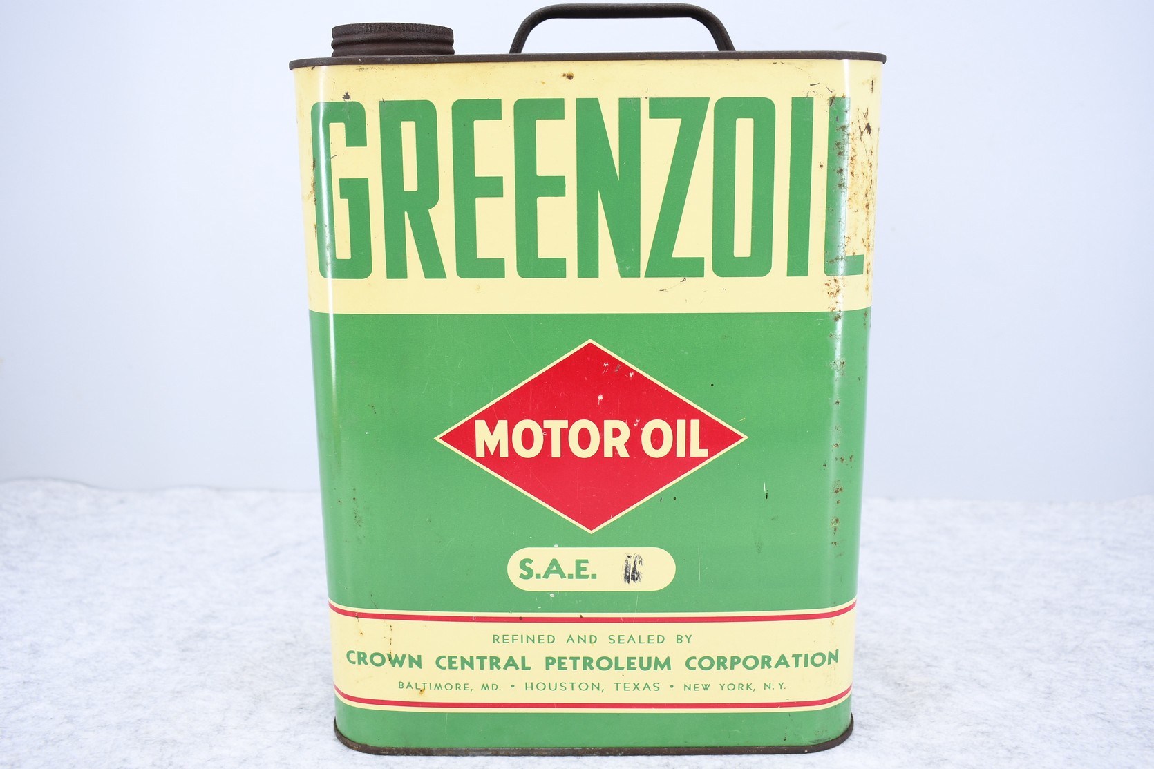 3. Greenzoil Motor Oil. 2-Gallon Can – Crown Central Petroleum Corp. Baltimore MD, Houston Texas, and New York NY