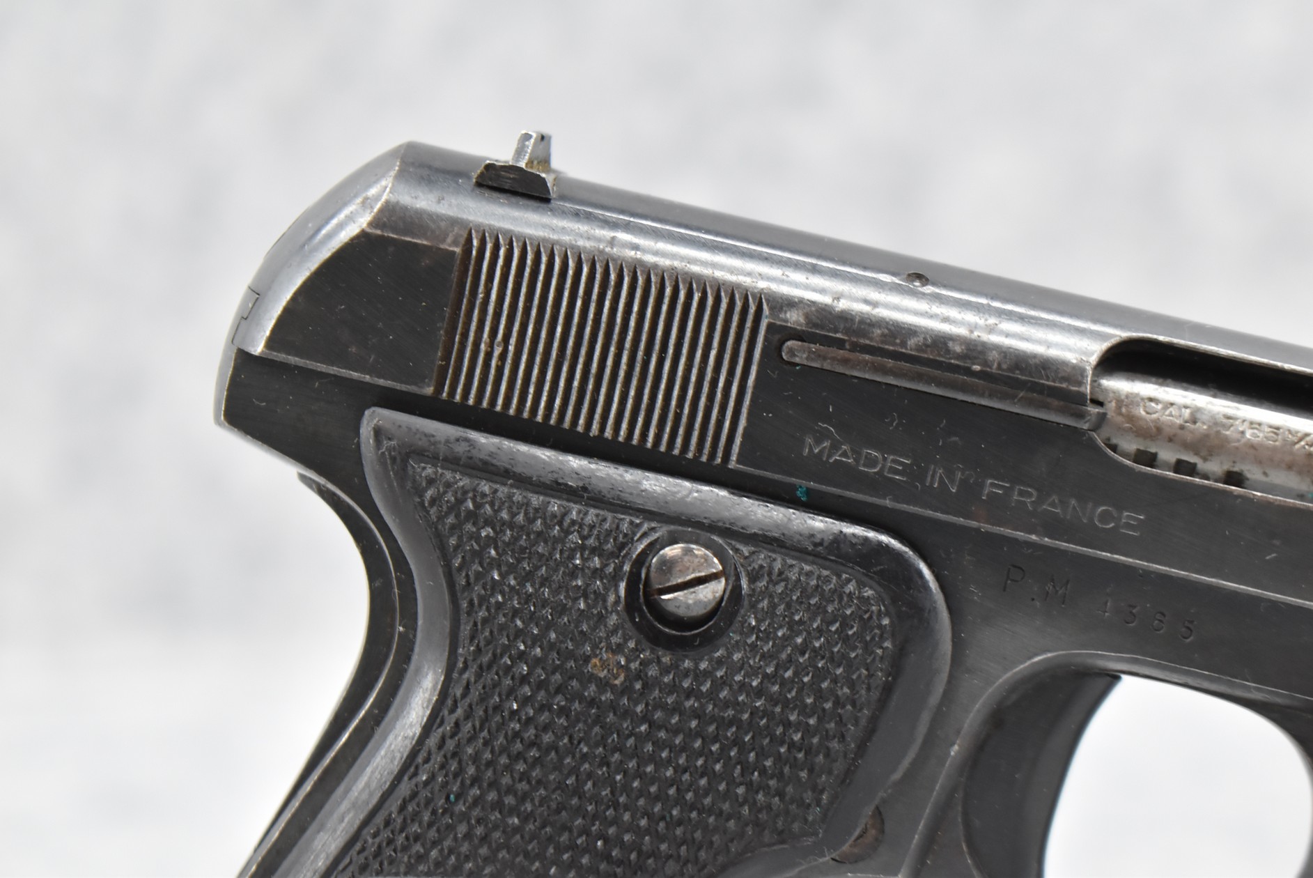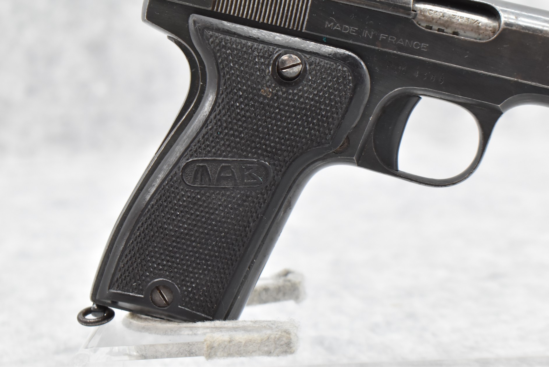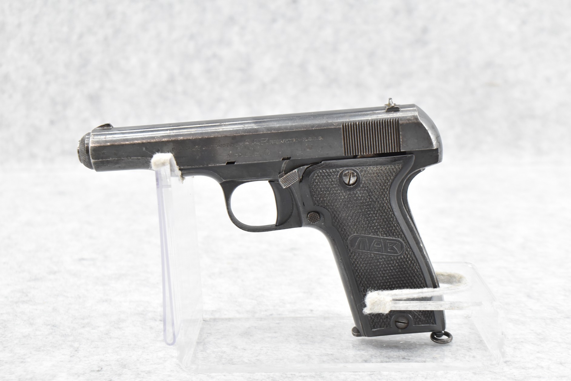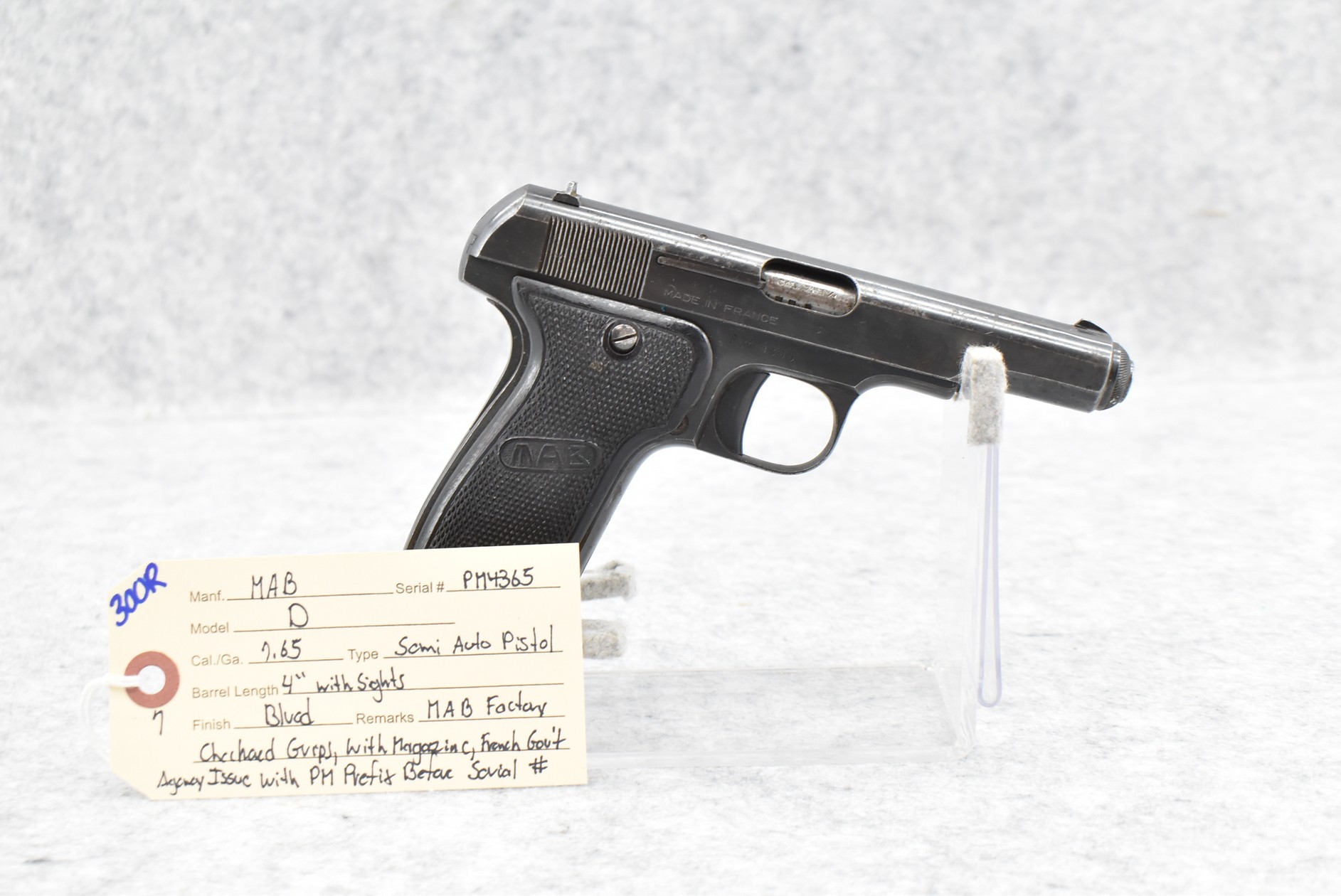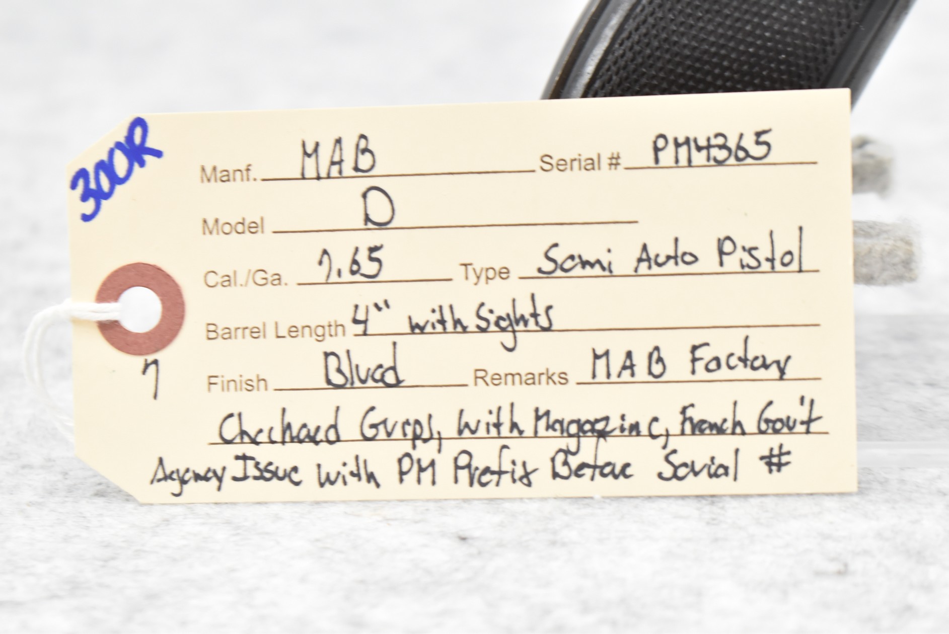 300R. MAB – Mod. D – 7.65 Cal. Semi-Auto Pistol – w/4” Barrel w/Sights – Blued Finish – w/MAB Factory Checkered Grips – w/Magazine – French Gov’t Agency Issue w/“PM” Prefix Before Serial Number