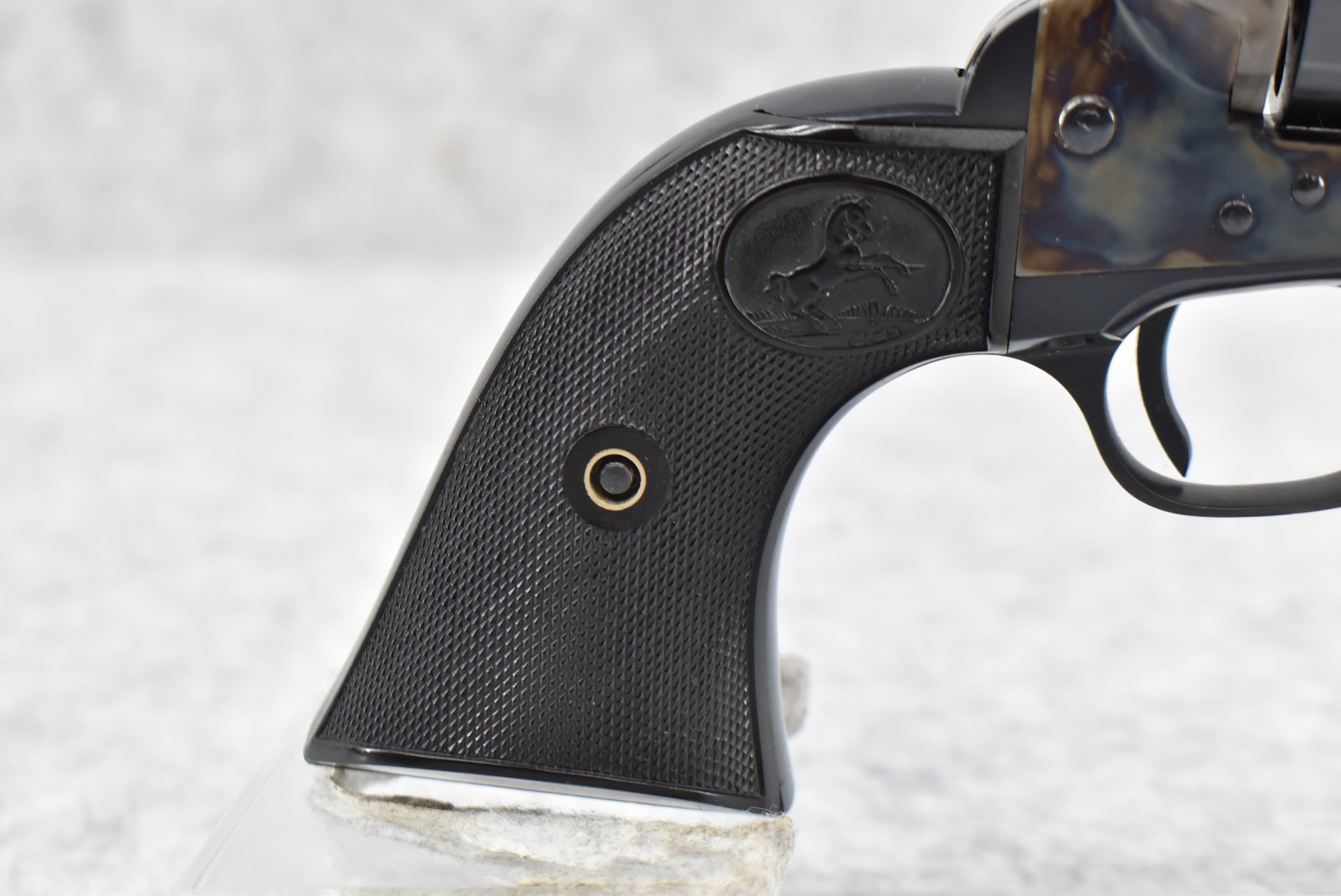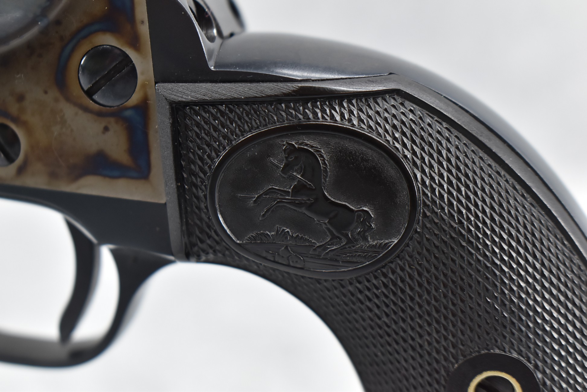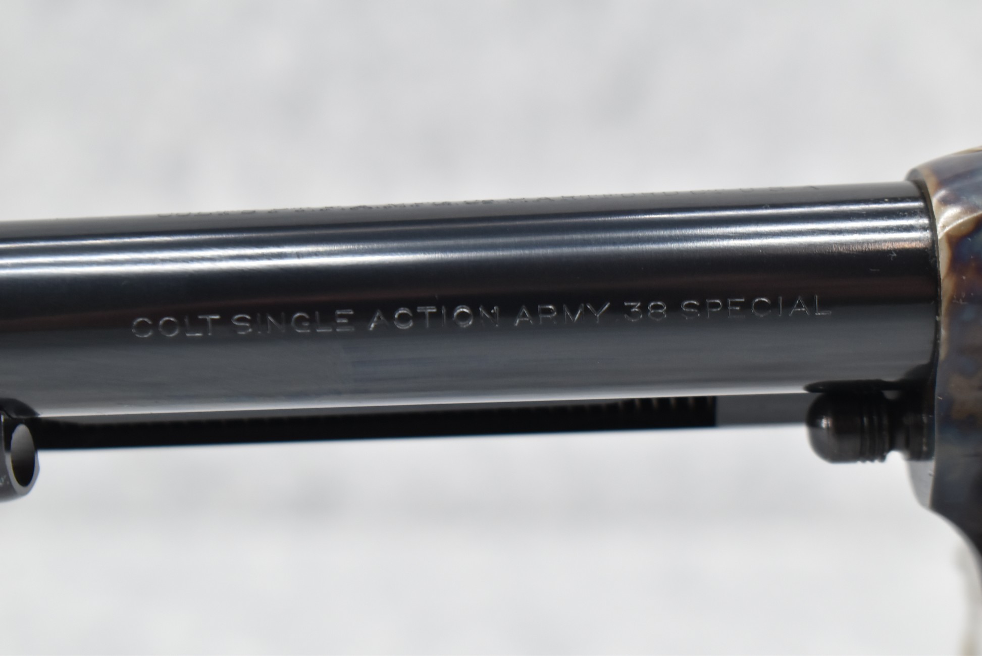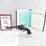 301R. Unbelievable! Possibly Unfired! Colt Pre-War Post-War Early 2nd Generation Single Action Army 38 Special Cal. Single Action Revolver – Gun is Fit with a 5½” Barrel with Round Blade Front and Groove Rear Sights – The Serial Number is 357767 – The Gun Retains a Virtually Untouched Original Blued Finish – The Frame Retains Almost All of it’s Original Vivid Case Colors with Just a Few Small Flaked Spots on the Top Strap and a Couple on the Right Side of the Frame Near the Top Strap – This is Absolutely Minimal in Comparison to the Overall 98% Condition of this Revolver! – This Gun is Stocked with Factory Checkered Rampant Colt Grips – Pre-War Post-War Model Single Action Army’s were Guns Made with Frames and Parts that were Made Pre-WWII but Assembled in the Post-War Period – This Particular Pre-War Post-War Colt is Pictured in Don Wilkerson’s Book “Colt’s Single Action Army Revolver: Pre-War Post-War Model” on Page 40 and has a Pretty Interesting History – This Revolver was Presented to William A. Purtell by Colt on February 1st, 1952 – Purtell was the President of Holo Krome Screw Co. in Hartford, CT and he was Elected to Colt’s Board of Directors in 1944 – Purtell Also Served as a U.S. Senator for West Hartford from August 29th, 1952 to November 4th, 1952 – In Examining the Revolver, it is Our Belief that the Gun is Unfired! – The Crown of the Muzzle Shows Virtually No Finish Wear from Being Shot, Furthermore, the Face of the Cylinder Displays No Evidence of Powder Burns or Echoes! – Accompanying the Gun is a Copy of Don Wilkerson’s Pre-War Post-War Model Book, A Colt Factory Letter Confirming the Guns Features, as Well as Who it was Shipped to, Multiple Articles, Photos, and Signatures of William Purtell, and a Copy of the Original Test Target – It is Extremely Rare to Come Across a Pre-War Post-War Colt in Such High Condition, then You Add in the Fact that the Gun is Unfired, Combined with the History of Who it Belonged to – It’s a Colt that Should be the Focal Point of Anyone’s Colt Collection!