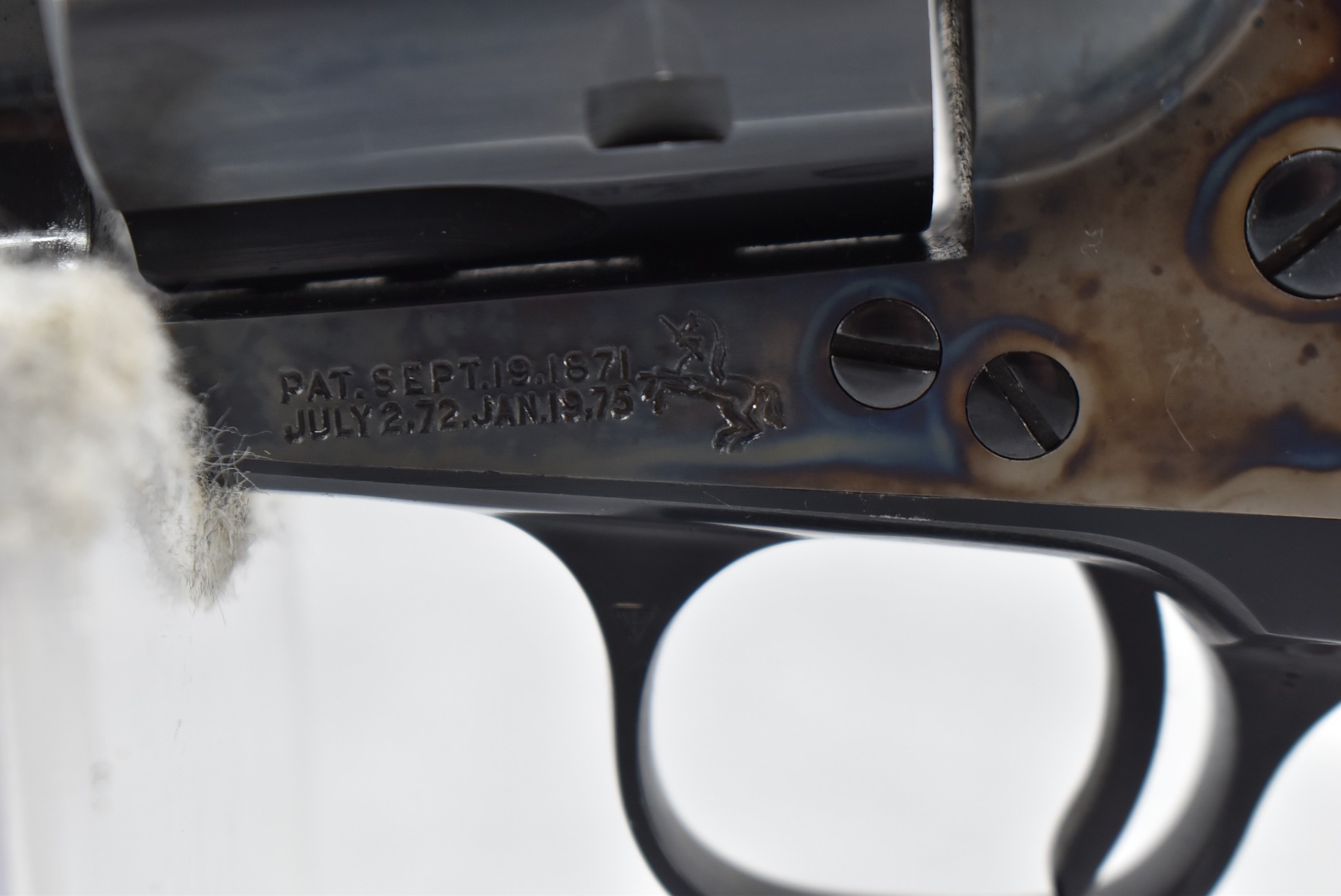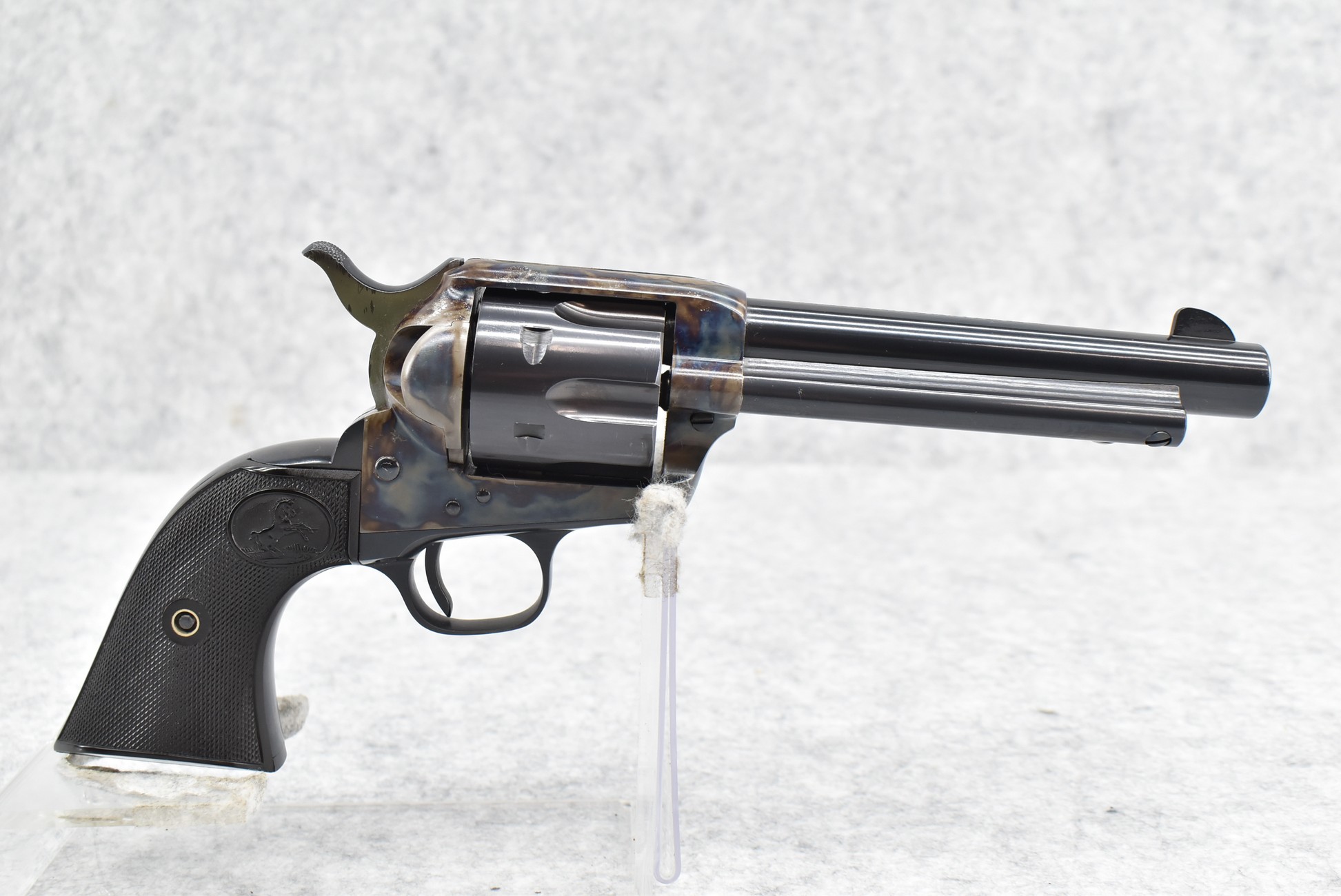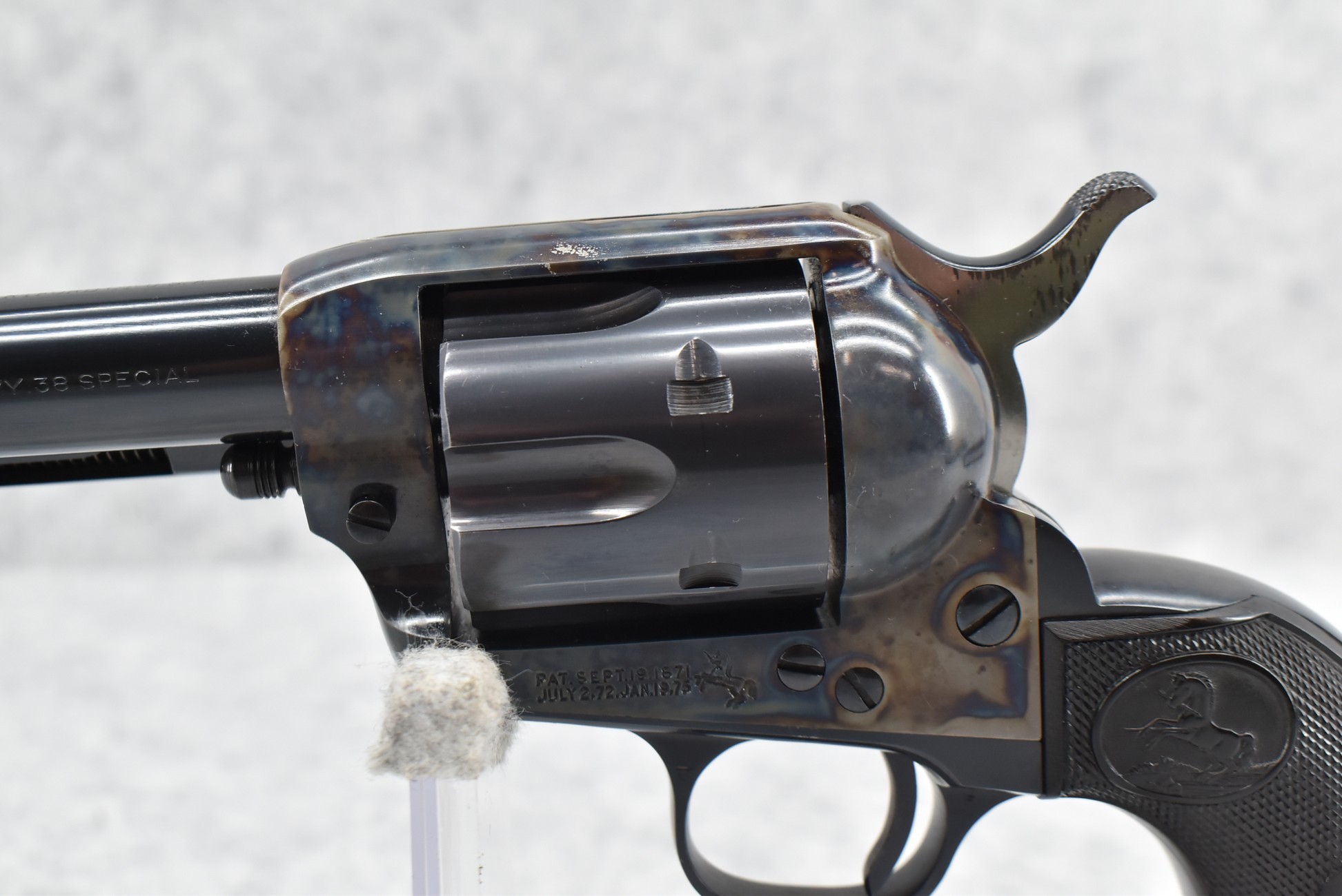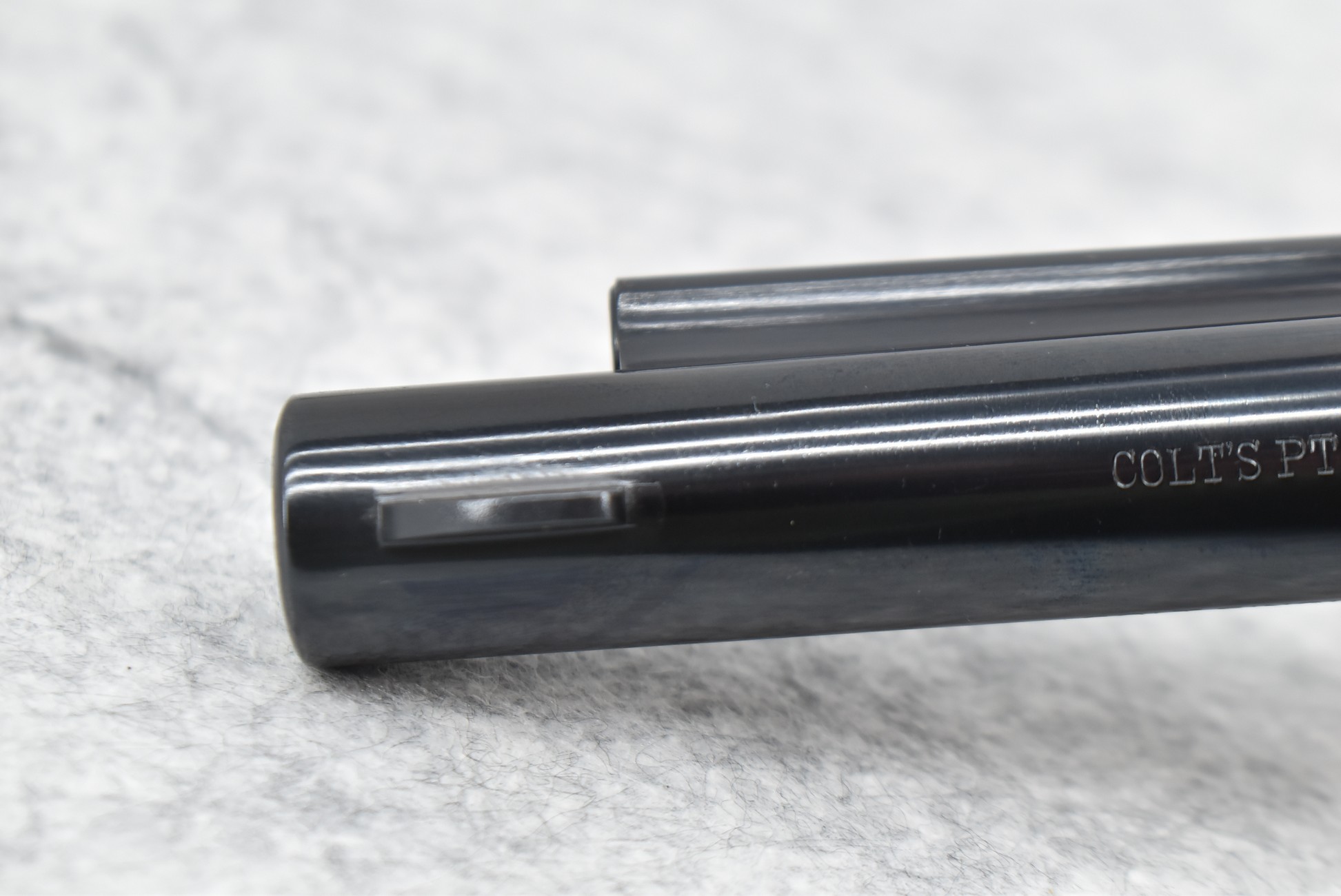 301R. Unbelievable! Possibly Unfired! Colt Pre-War Post-War Early 2nd Generation Single Action Army 38 Special Cal. Single Action Revolver – Gun is Fit with a 5½” Barrel with Round Blade Front and Groove Rear Sights – The Serial Number is 357767 – The Gun Retains a Virtually Untouched Original Blued Finish – The Frame Retains Almost All of it’s Original Vivid Case Colors with Just a Few Small Flaked Spots on the Top Strap and a Couple on the Right Side of the Frame Near the Top Strap – This is Absolutely Minimal in Comparison to the Overall 98% Condition of this Revolver! – This Gun is Stocked with Factory Checkered Rampant Colt Grips – Pre-War Post-War Model Single Action Army’s were Guns Made with Frames and Parts that were Made Pre-WWII but Assembled in the Post-War Period – This Particular Pre-War Post-War Colt is Pictured in Don Wilkerson’s Book “Colt’s Single Action Army Revolver: Pre-War Post-War Model” on Page 40 and has a Pretty Interesting History – This Revolver was Presented to William A. Purtell by Colt on February 1st, 1952 – Purtell was the President of Holo Krome Screw Co. in Hartford, CT and he was Elected to Colt’s Board of Directors in 1944 – Purtell Also Served as a U.S. Senator for West Hartford from August 29th, 1952 to November 4th, 1952 – In Examining the Revolver, it is Our Belief that the Gun is Unfired! – The Crown of the Muzzle Shows Virtually No Finish Wear from Being Shot, Furthermore, the Face of the Cylinder Displays No Evidence of Powder Burns or Echoes! – Accompanying the Gun is a Copy of Don Wilkerson’s Pre-War Post-War Model Book, A Colt Factory Letter Confirming the Guns Features, as Well as Who it was Shipped to, Multiple Articles, Photos, and Signatures of William Purtell, and a Copy of the Original Test Target – It is Extremely Rare to Come Across a Pre-War Post-War Colt in Such High Condition, then You Add in the Fact that the Gun is Unfired, Combined with the History of Who it Belonged to – It’s a Colt that Should be the Focal Point of Anyone’s Colt Collection!