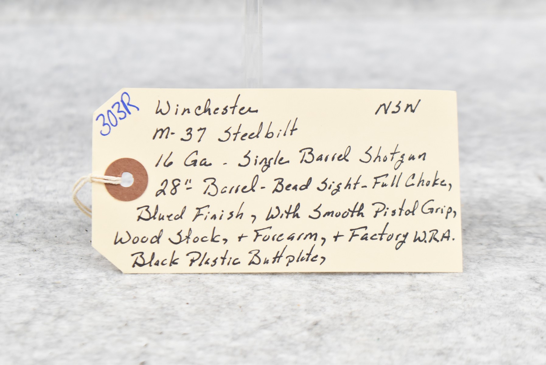 303R. Winchester – Mod. 37 Steelbilt – 16ga. Single Barrel Shotgun – w/28” Full Choke Barrel w/Bead Sight – Blued Finish – w/Smooth Pistol Grip Wood Stocks w/Factory Butt Plate