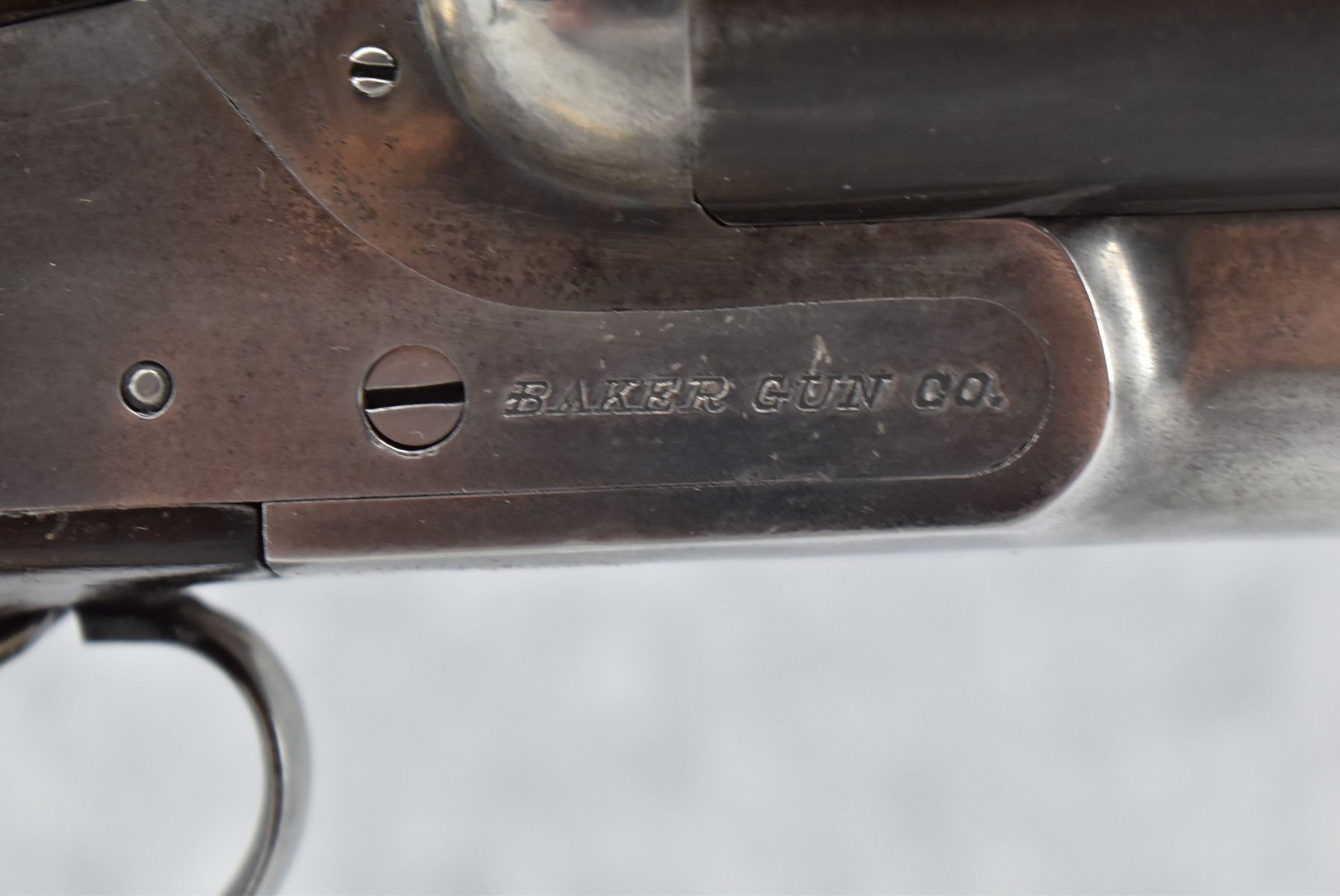 304R. Baker Gun Co. – Mod. Batavia Leader – 12ga. Hammerless Double Barrel Shotgun – w/28” Solid Rib Barrel w/Bead Sights – Blued/Gray Finish – w/Checkered Capped Pistol Grip Wood Stocks w/Butt Plate – w/Double Triggers – Note: Stock Repaired at Upper Tang