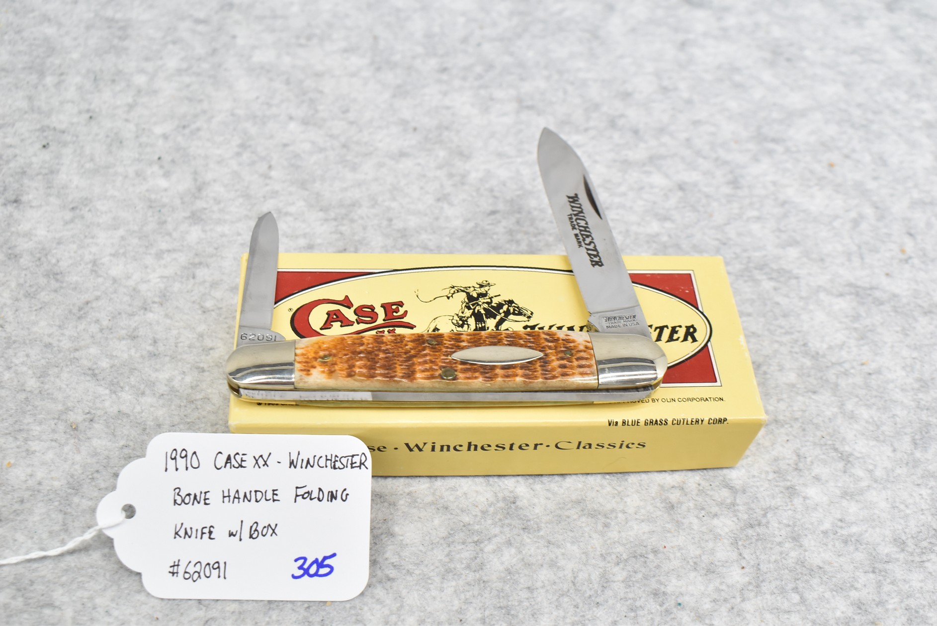 305. Case XX/Winchester – 1990 Bone Handle Folding Knife w/Box – #62091
