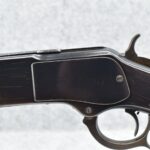 306R. Excellent! Winchester – Mod. 1873 3rd Model – 38 WCF (38-40) Cal. Lever Action Rifle – w/24” Octagon Barrel w/Blade Front and High Buckhorn Rear Sights – Strong Original Blued Finish – w/Straight Grip Wood Stocks w/Factory Crescent Metal Butt Plate – w/Trapdoor – w/Full Magazine Tube – w/Factory Special Order Set Trigger – Gun Retains Very Strong Amount of Original Bluing on the Receiver, as well as the Barrel and Magazine Tube – Trace Amount of Original Fire Blue on Loading Gate – Excellent Condition Gun w/a Great Bore!