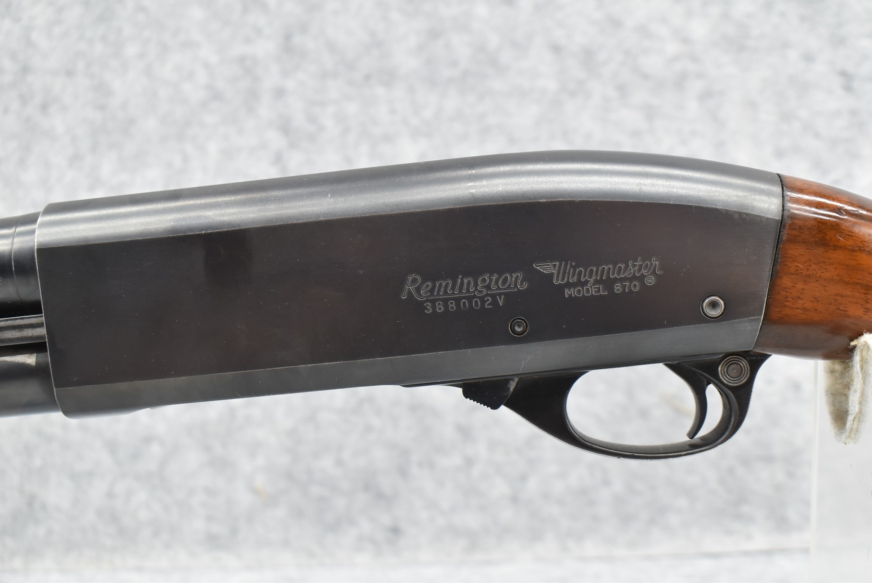 307R. Remington – Mod. 870 Wingmaster – 12ga. Pump Action Shotgun – w/28” Mod. Choke, Plain Rib Barrel w/Bead Sight – Blued Finish – w/Smooth Pistol Grip Wood Stock w/Ribbed Forearm & Factory Remington Butt Plate
