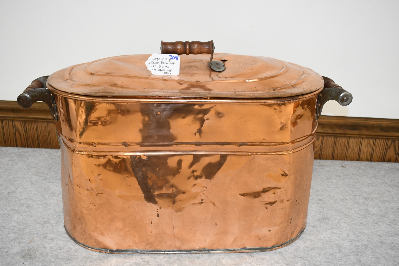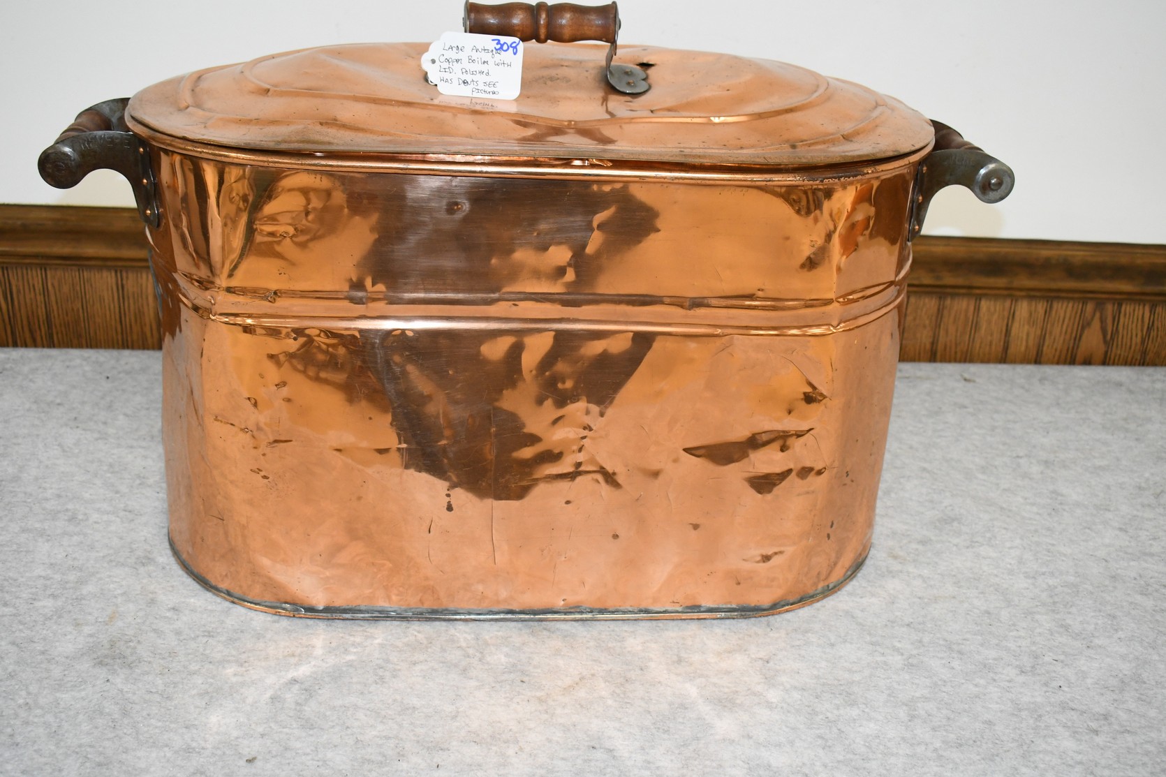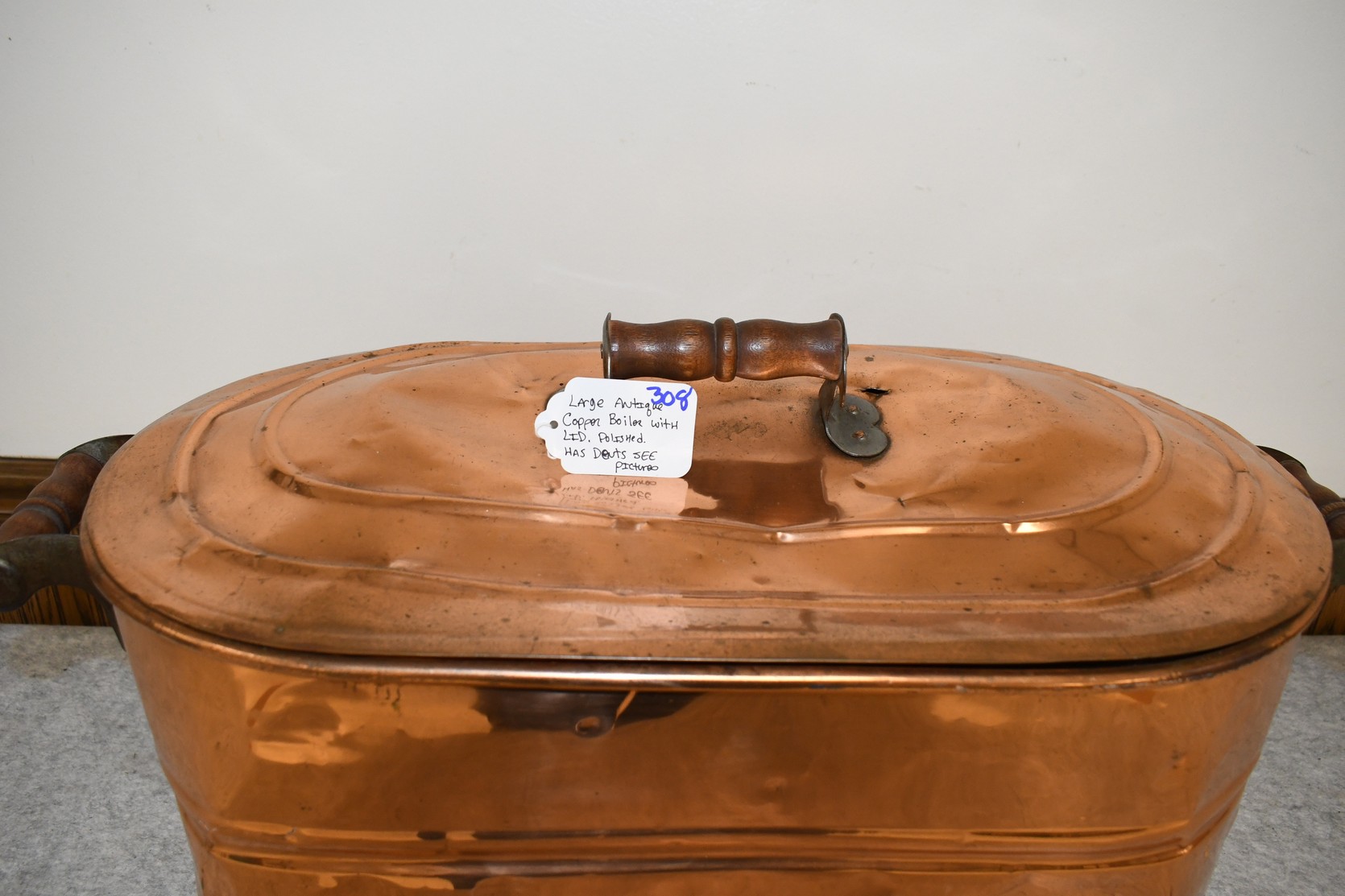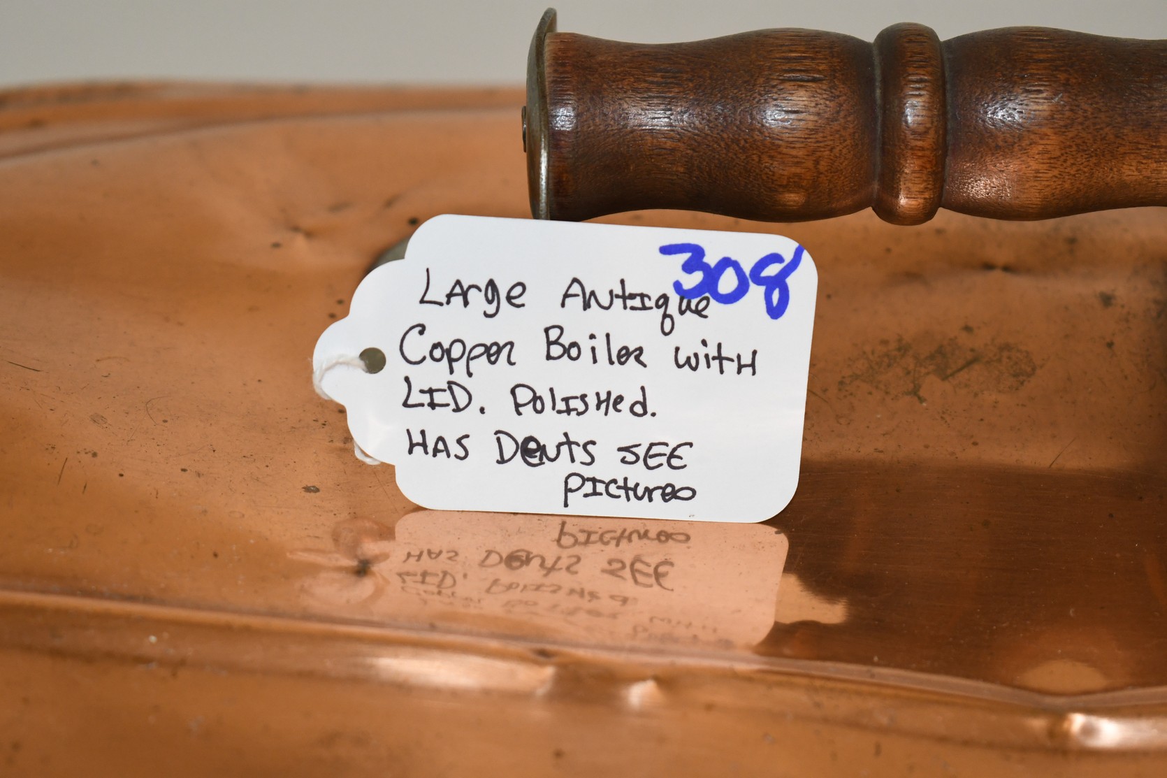 308. Large Antique Copper Boiler w/Lid – Polished – Has Dents See Pictures