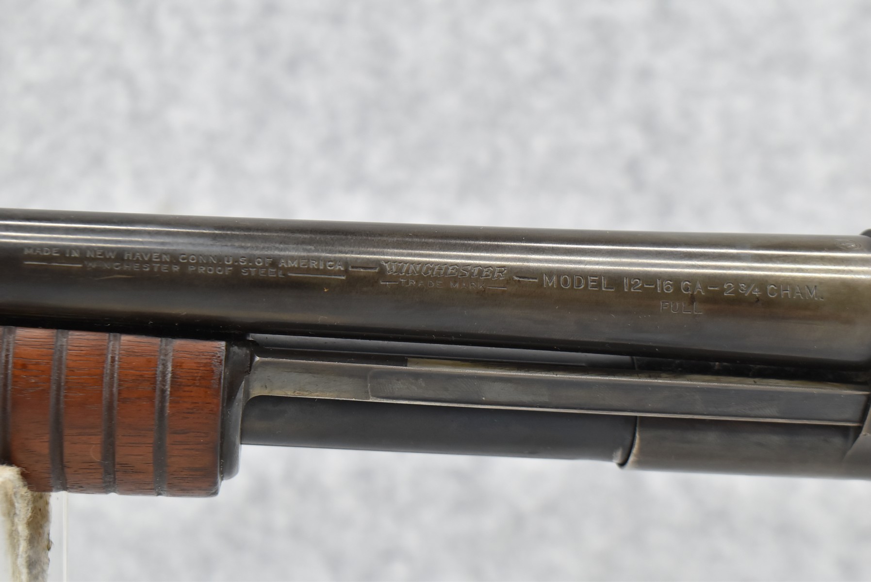 308R. Winchester – Mod. 12 – 16ga. Pump Action Shotgun – w/28” Full Choked Barrel w/Bead Sight – Blued Finish – w/Smooth Pistol Grip Wood Stock w/Factory Butt Plate & Ribbed Forearm – Mfg. 1947
