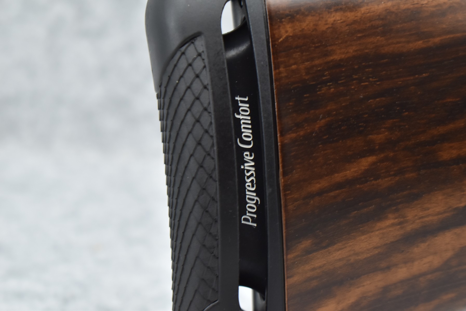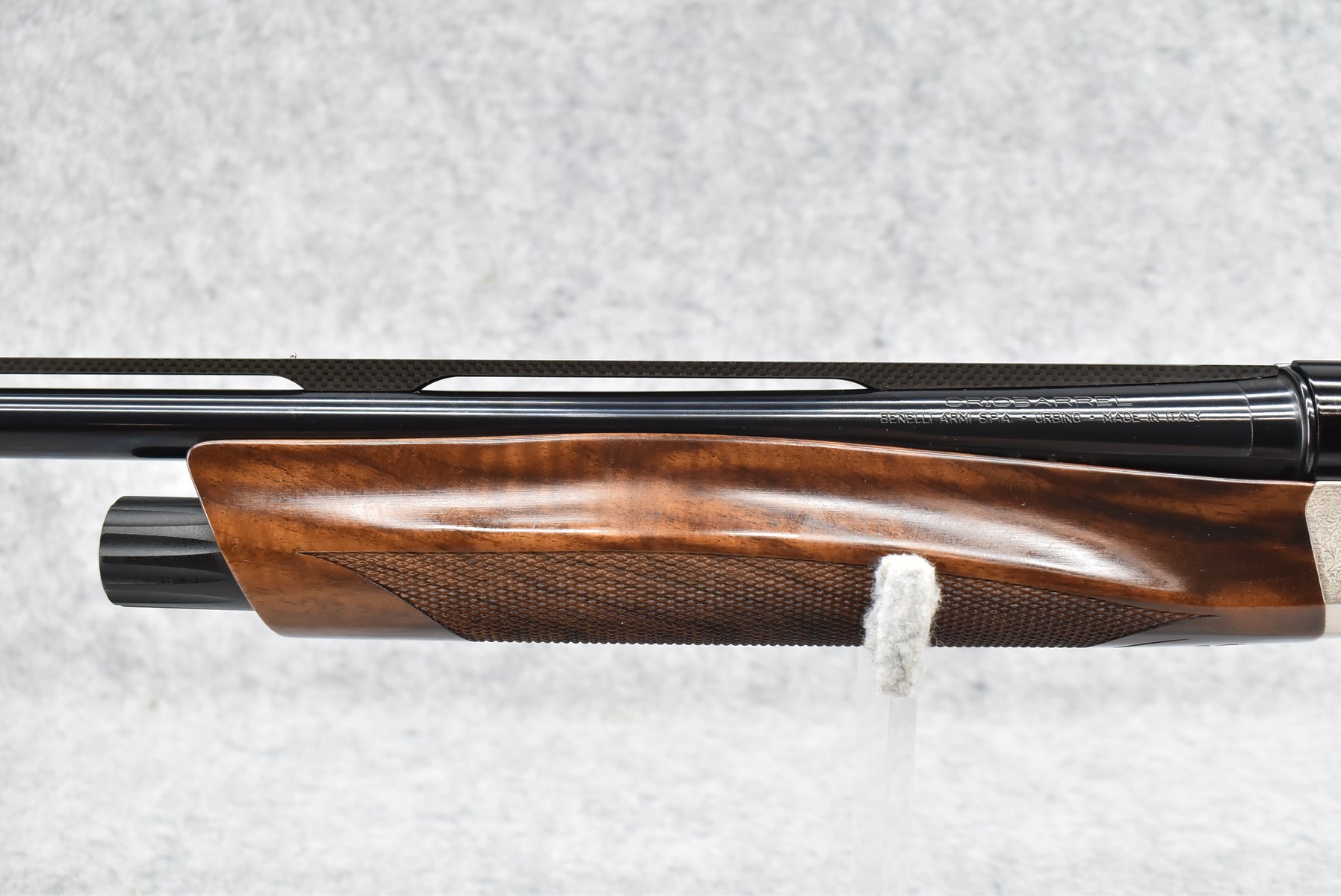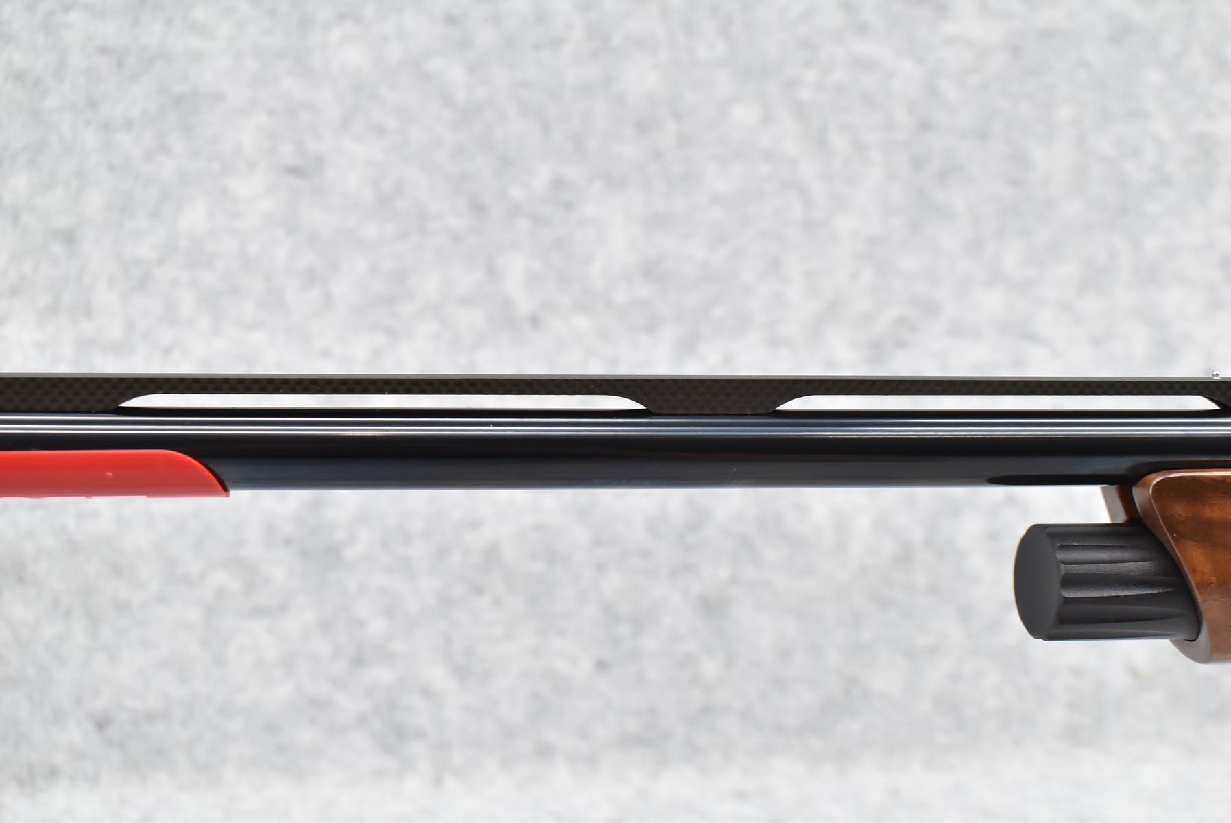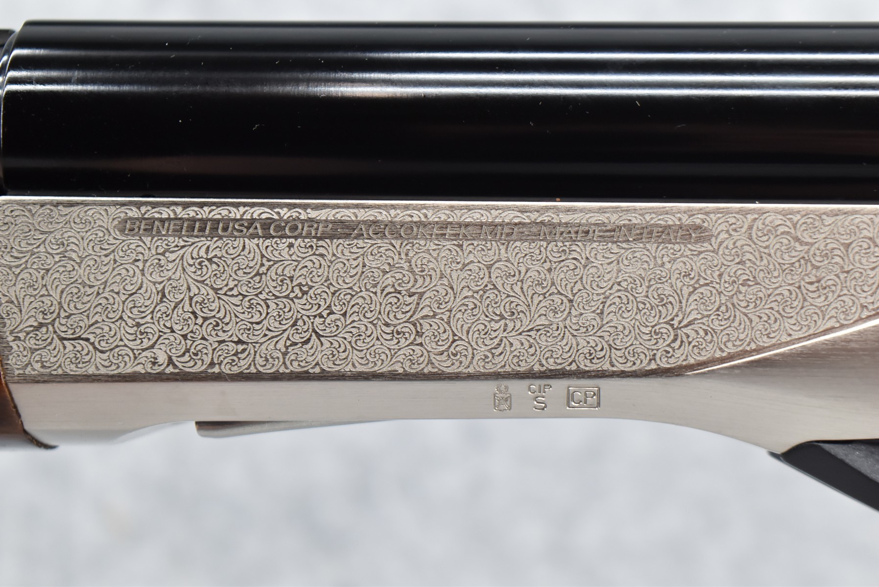 30R. Benelli – Mod. Ethos – 28ga. 3” Semi-Auto Shotgun – w/26” Vent Rib Choked Barrel w/Fiber Optic and Bead Sights – Stainless/Blued Finish – w/Deluxe Checkered Pistol Grip Wood Stock and Forearm w/Factory Progressive Comfort Black Rubber Butt Pad – Unfired w/Factory Hard Case, Shipping Box, Chokes, and Accessories