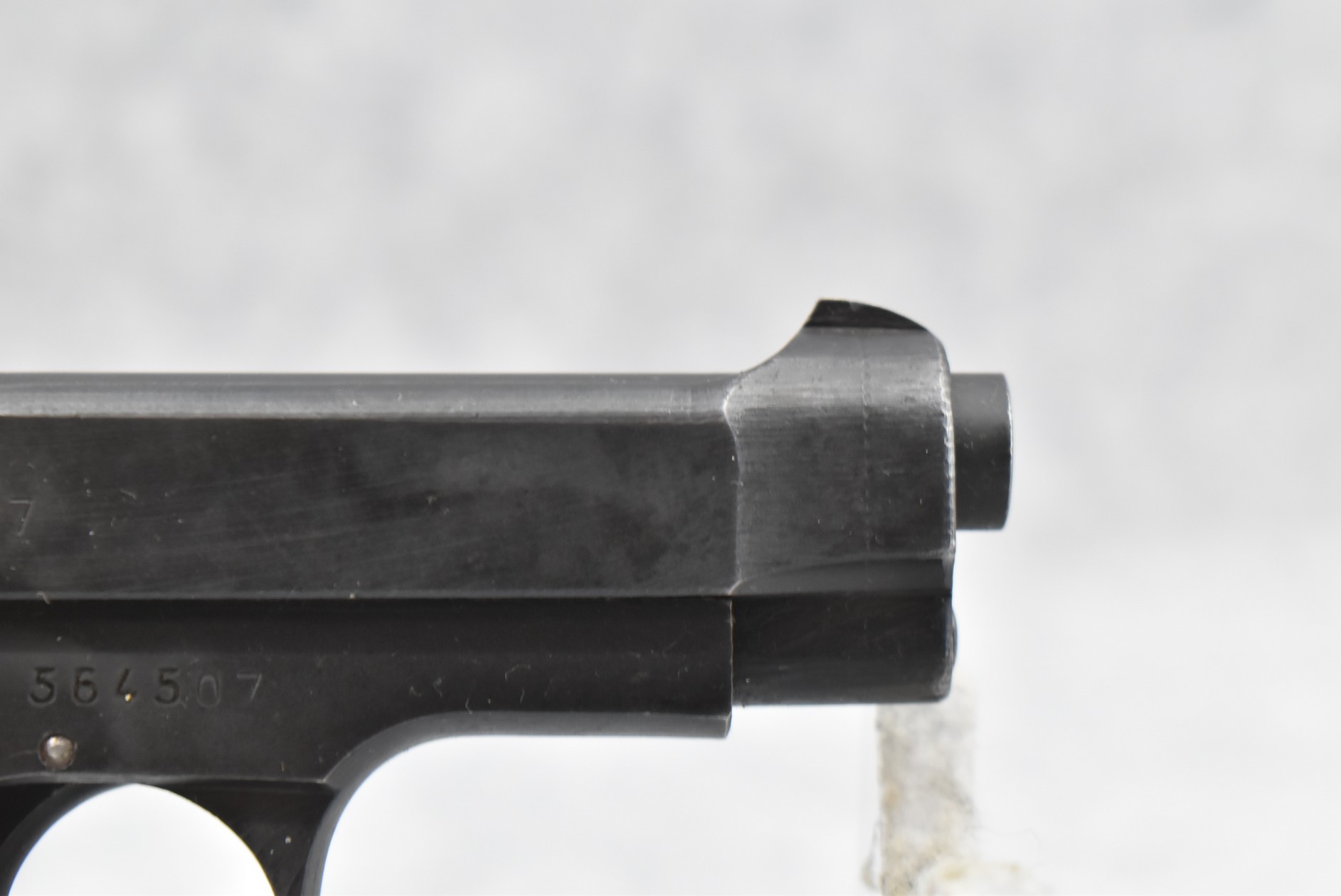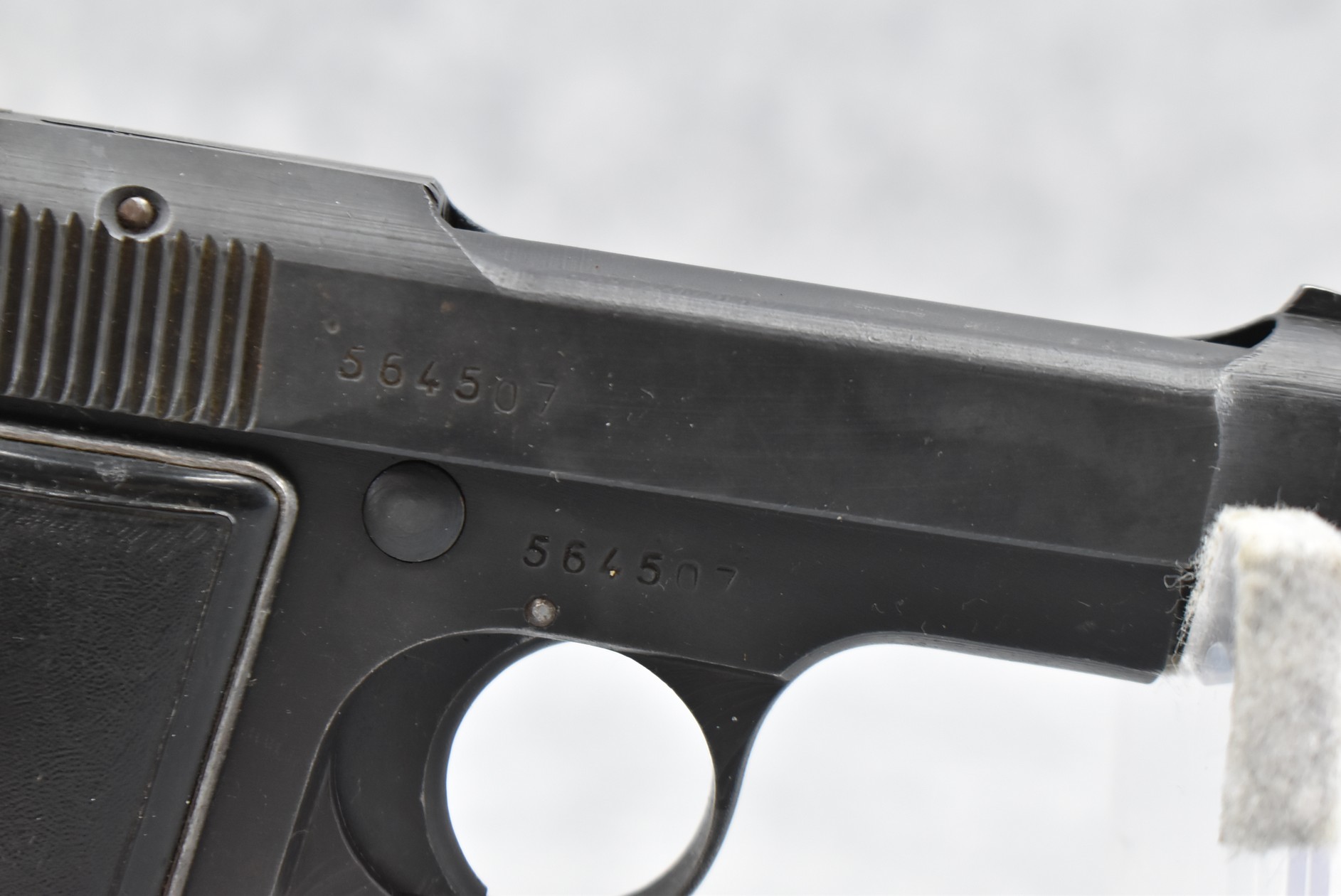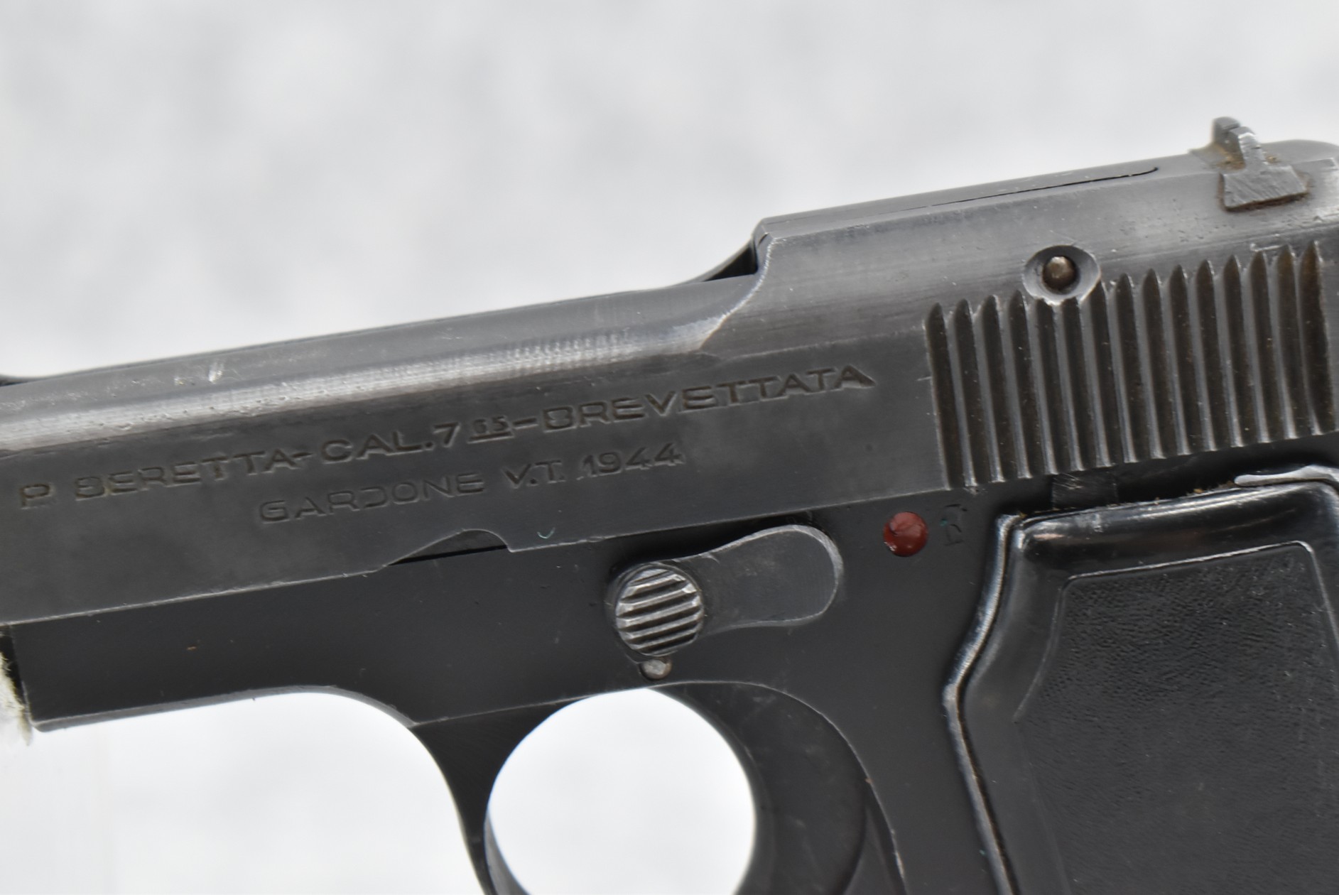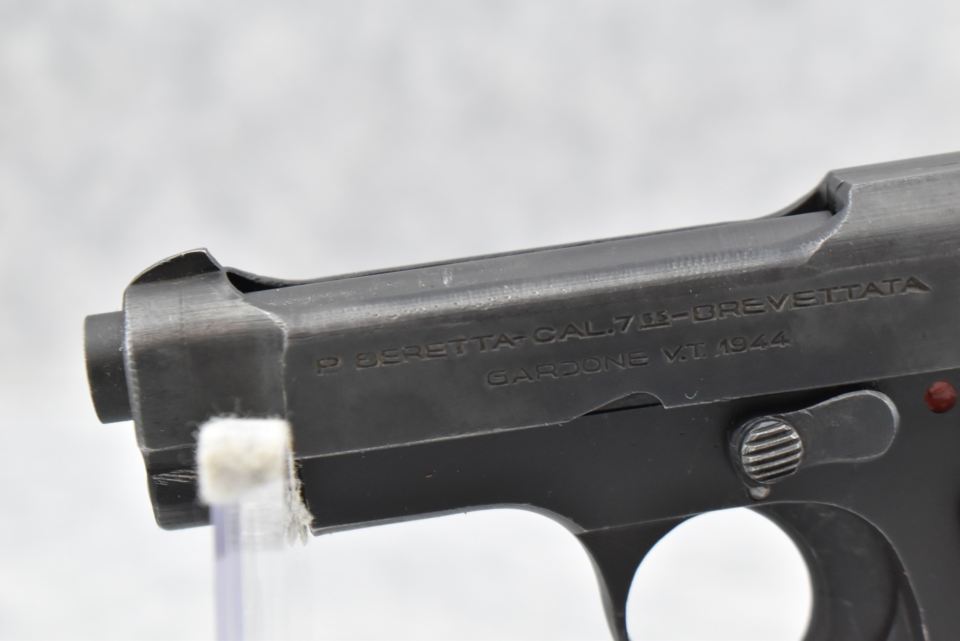 310R. Beretta – Mod. 1935 (1944 Dated) – 7.65 Cal. Semi-Auto Pistol – w/3 ¼” Barrel w/Sights – Parkerized Finish – w/Factory Magazine – German Issued w/Canvas Holster