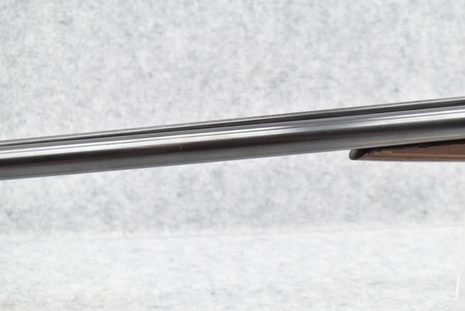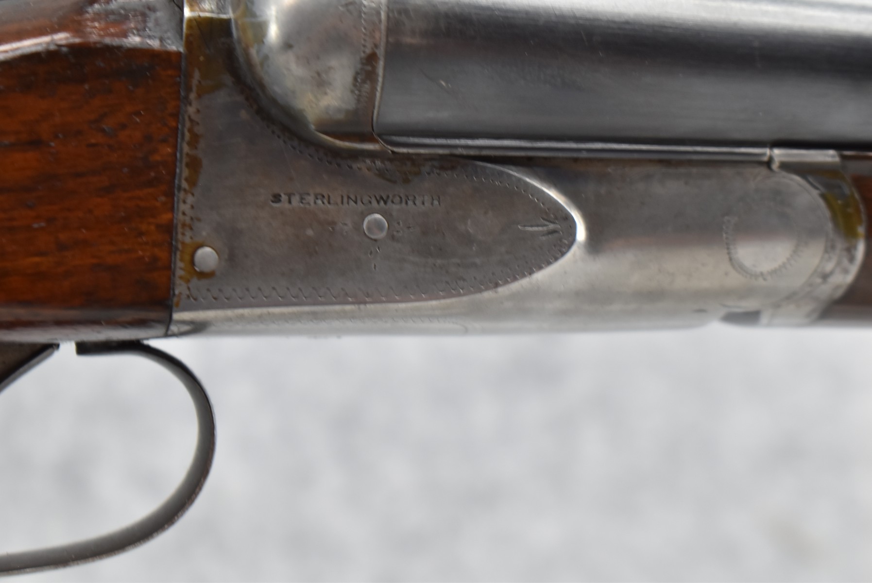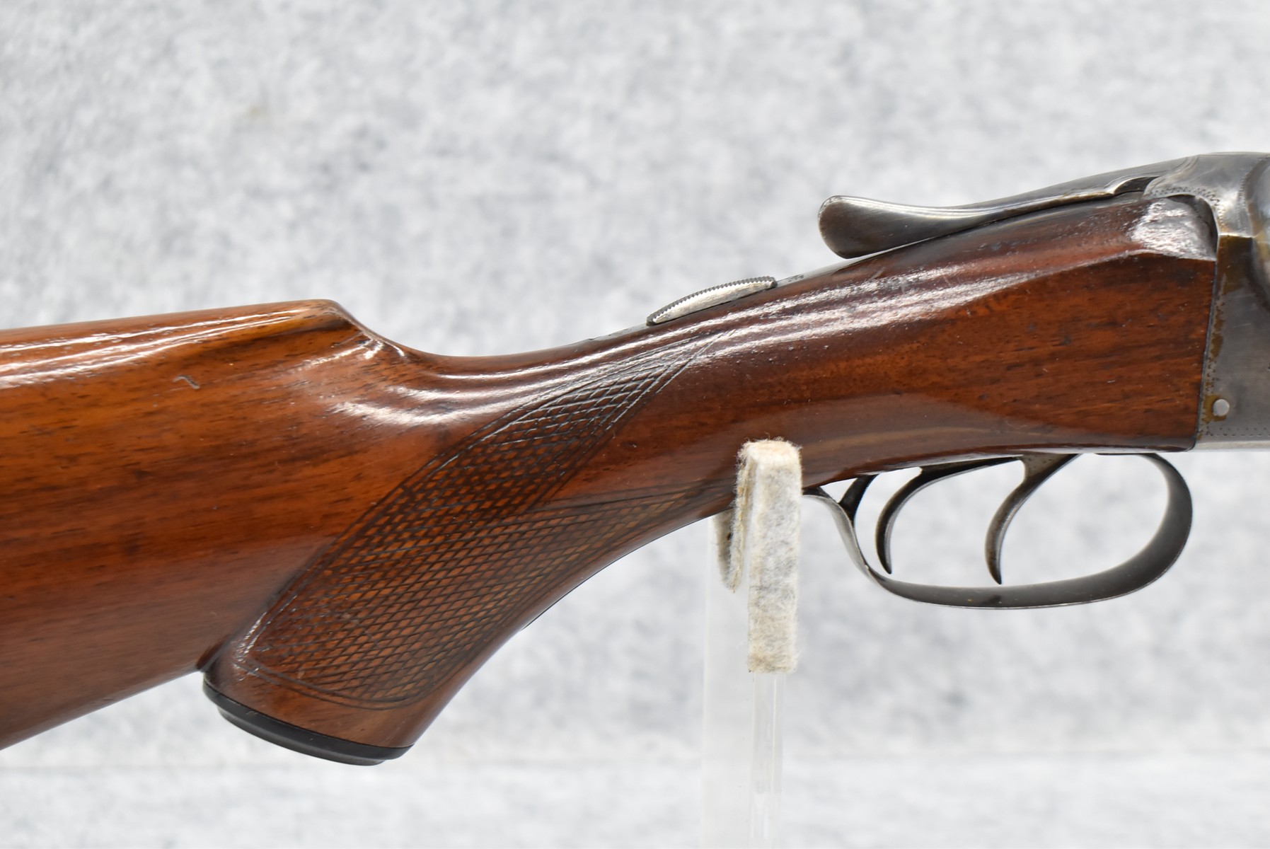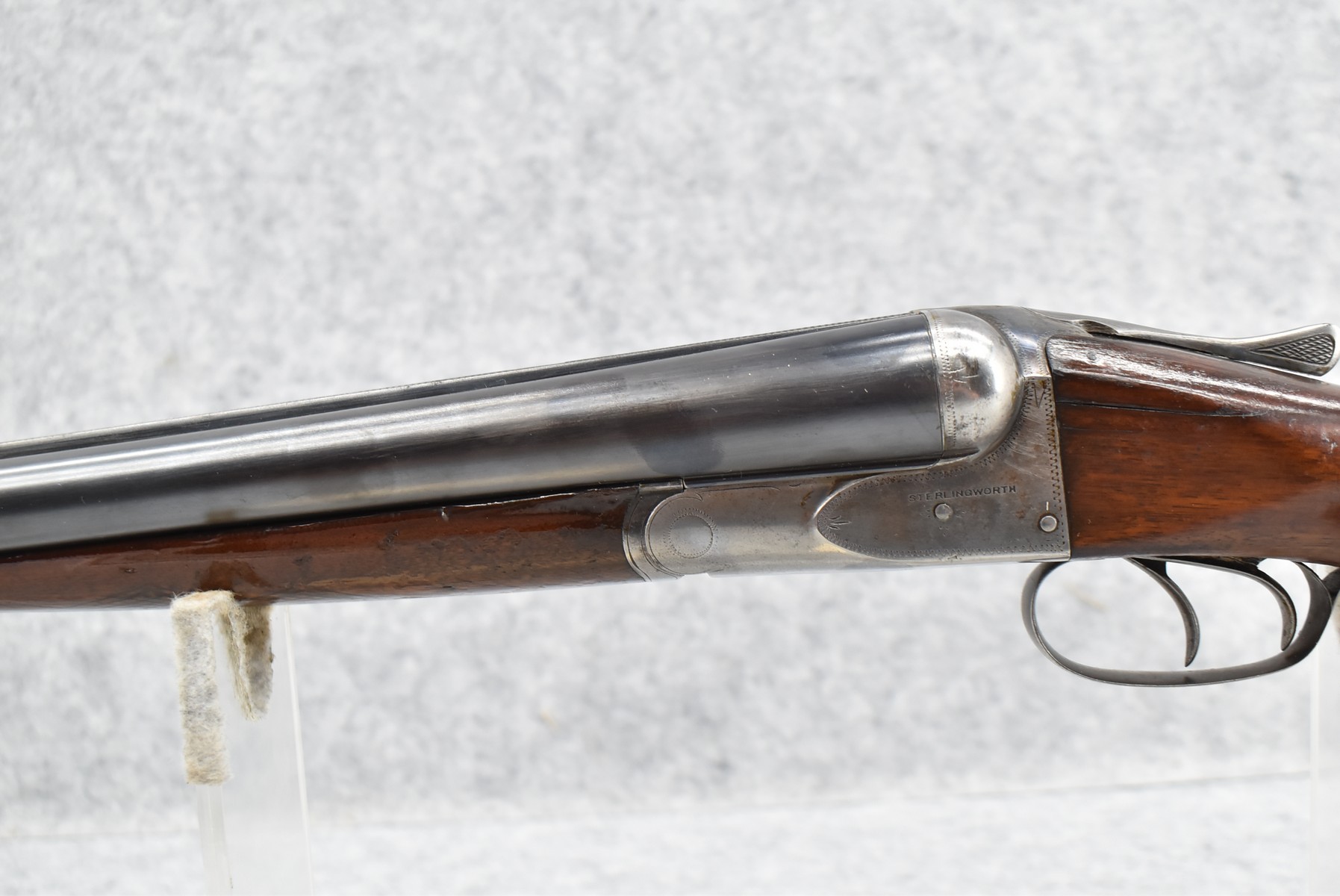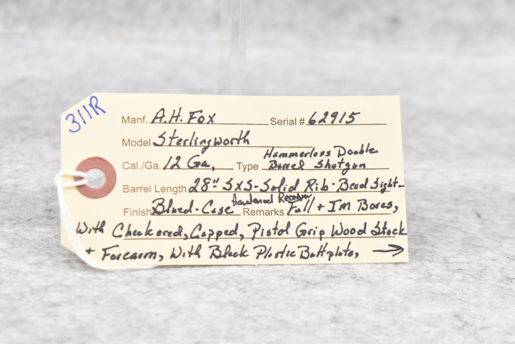 311R. A.H. Fox – Mod. Sterlingworth – 12ga. Hammerless Double Barrel Shotgun – w/28” Full & IM Choked, Solid Rib Barrels w/Bead Sight – Blued Finish w/Case Hardened Receiver – w/Factory Engraved Frame & Metal Parts w/Stitching Patterns – w/Checkered Capped Pistol Grip Wood Stocks w/Butt Plate – w/Double Triggers