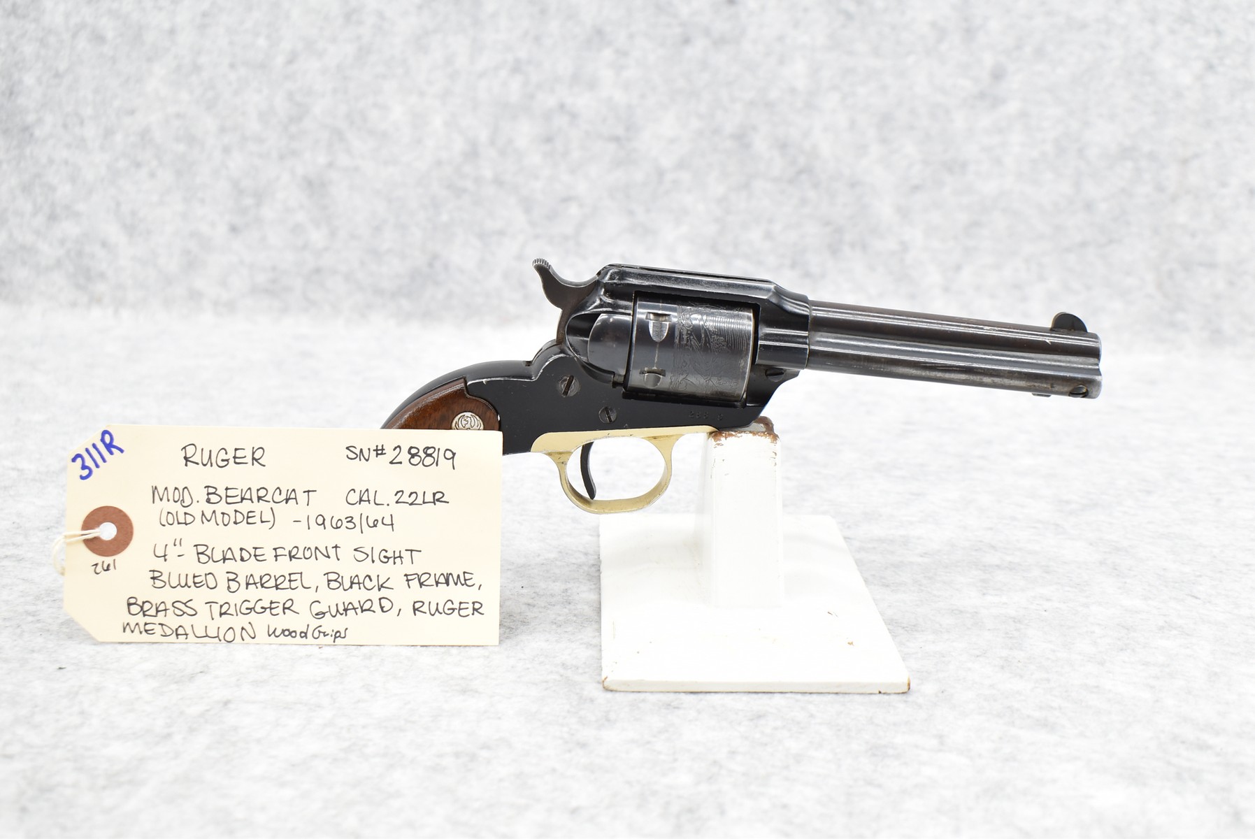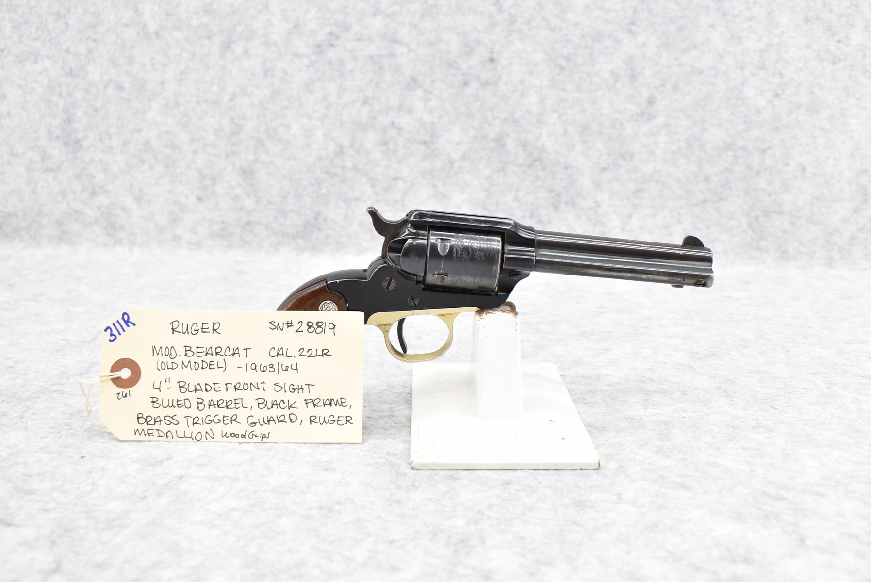 311R. Ruger – Mod. Bearcat (Old Model) – 22LR Cal. Revolver – w/4” Blued Barrel w/Blade Front Sight – Blued Finish w/Brass Trigger Guard – w/Ruger Medallion Wood Grips – Mfg. 1963-64