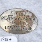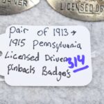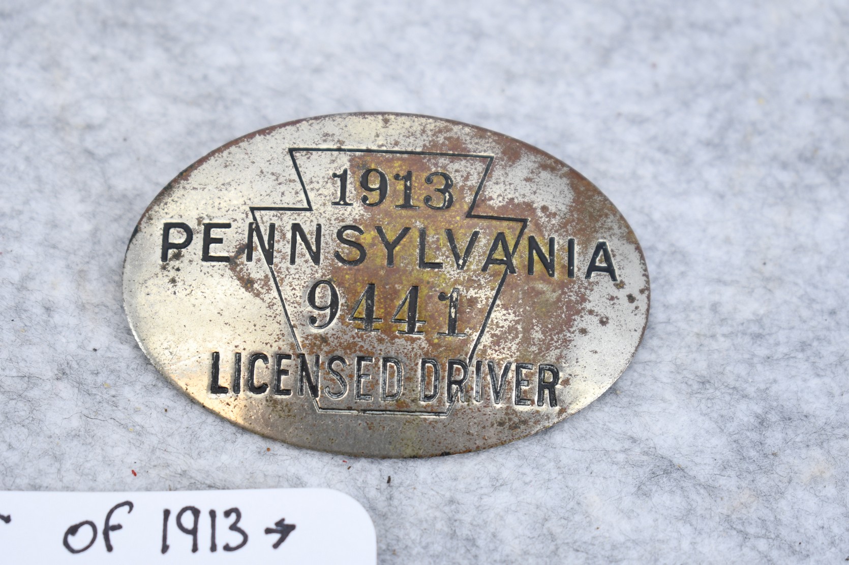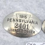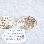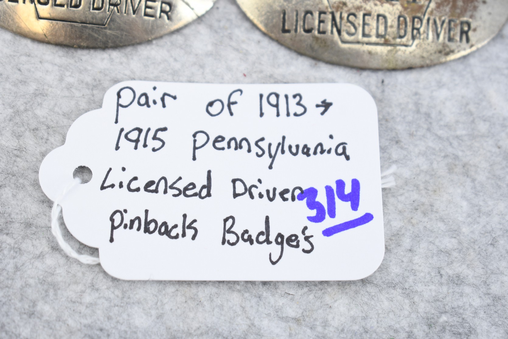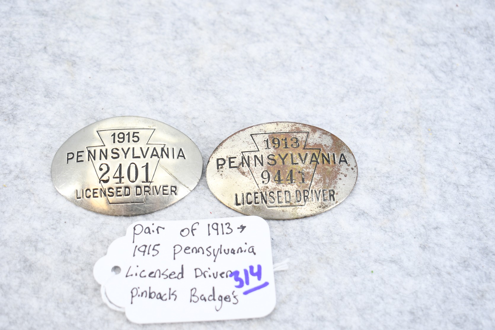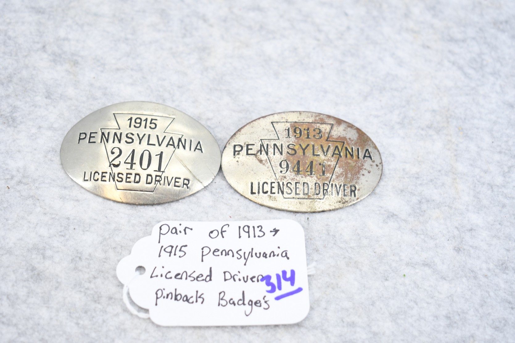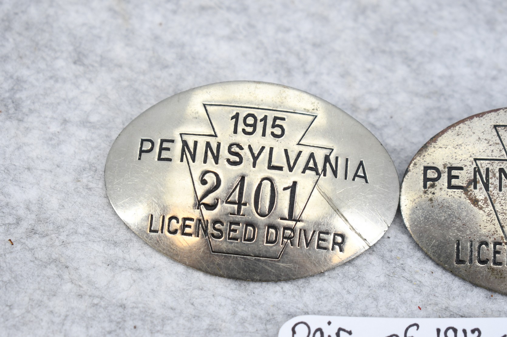 314. 1913 and 1915 Pennsylvania Licensed Driver Pinback Badges – 1913 is License No. 9441 – 1915 is License No. 2401