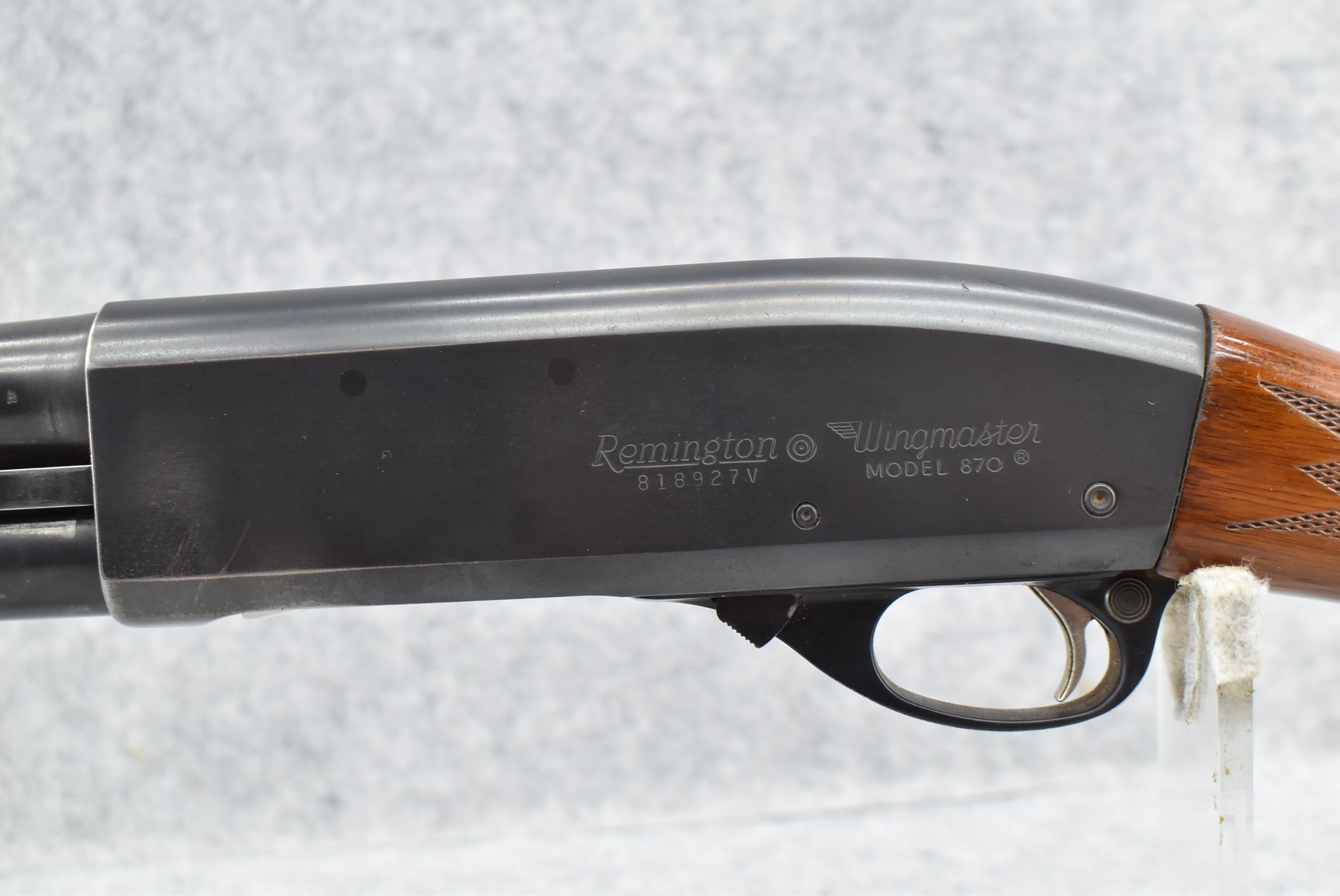 314R. Remington – Mod. 870 Wingmaster – 12ga. Pump Action Shotgun – w/28” Mod. Choke, Plain Rib Barrel w/Bead Sight – Blued Finish – w/Checkered Capped Pistol Grip Wood Stocks w/Factory Butt Plate