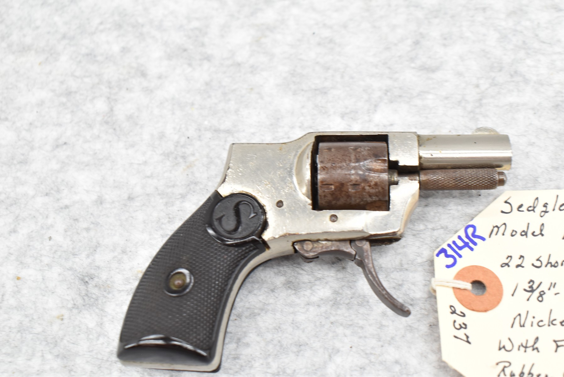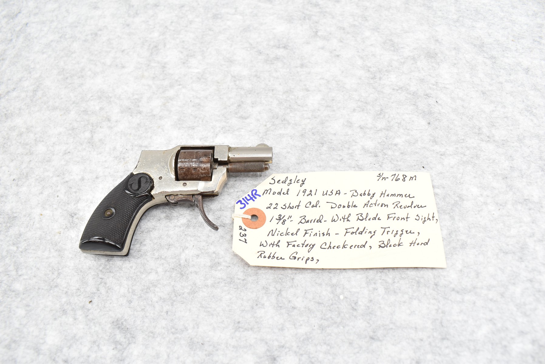 314R. Sedgley – Mod. 1921 “USA” Baby Hammer – 22 Short Cal. Double Action Revolver – w/1 3/8” Barrel w/Blade Front Sight – Nickel Finish – w/Factory Checkered Black Hard Rubber Grips – w/Folding Trigger