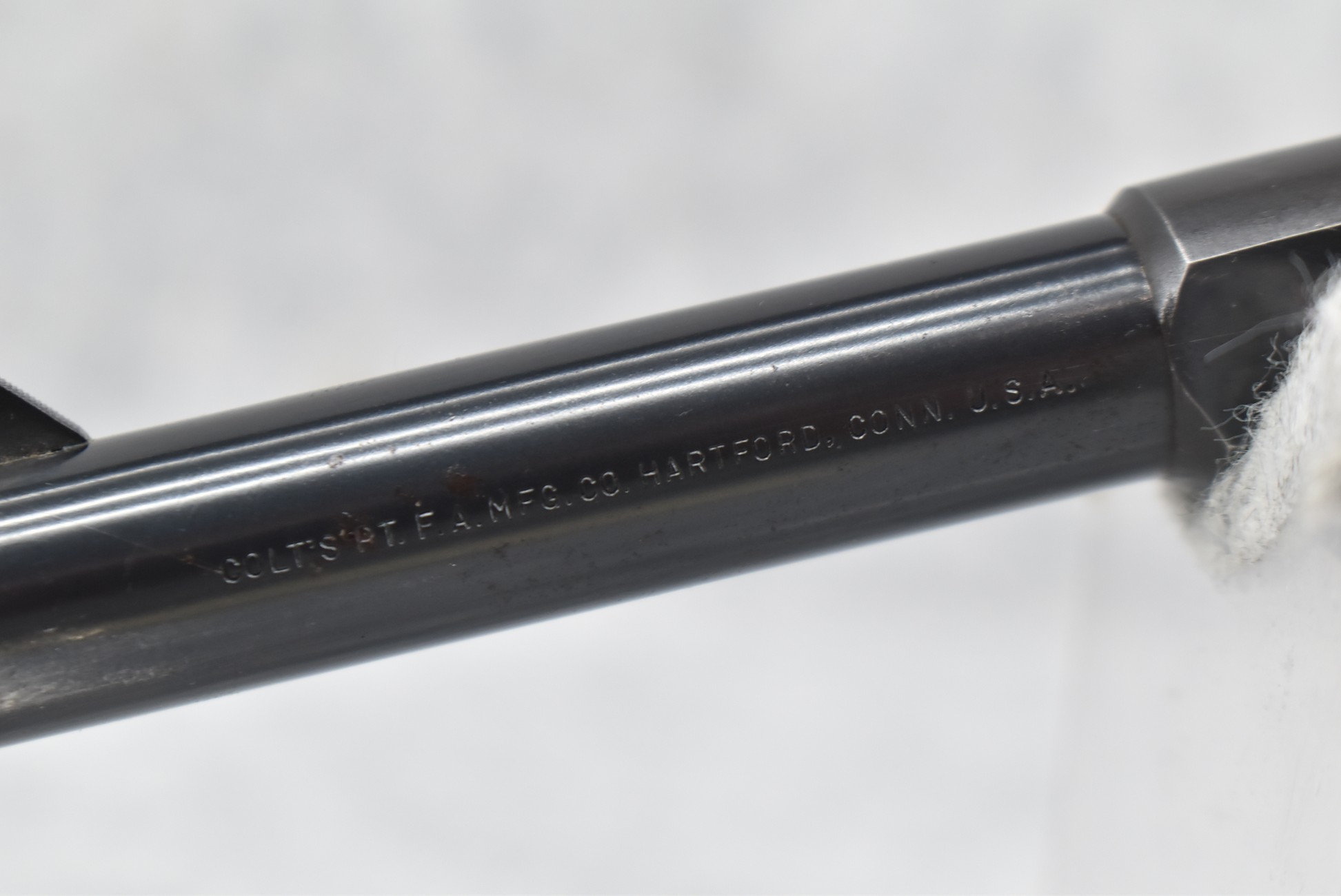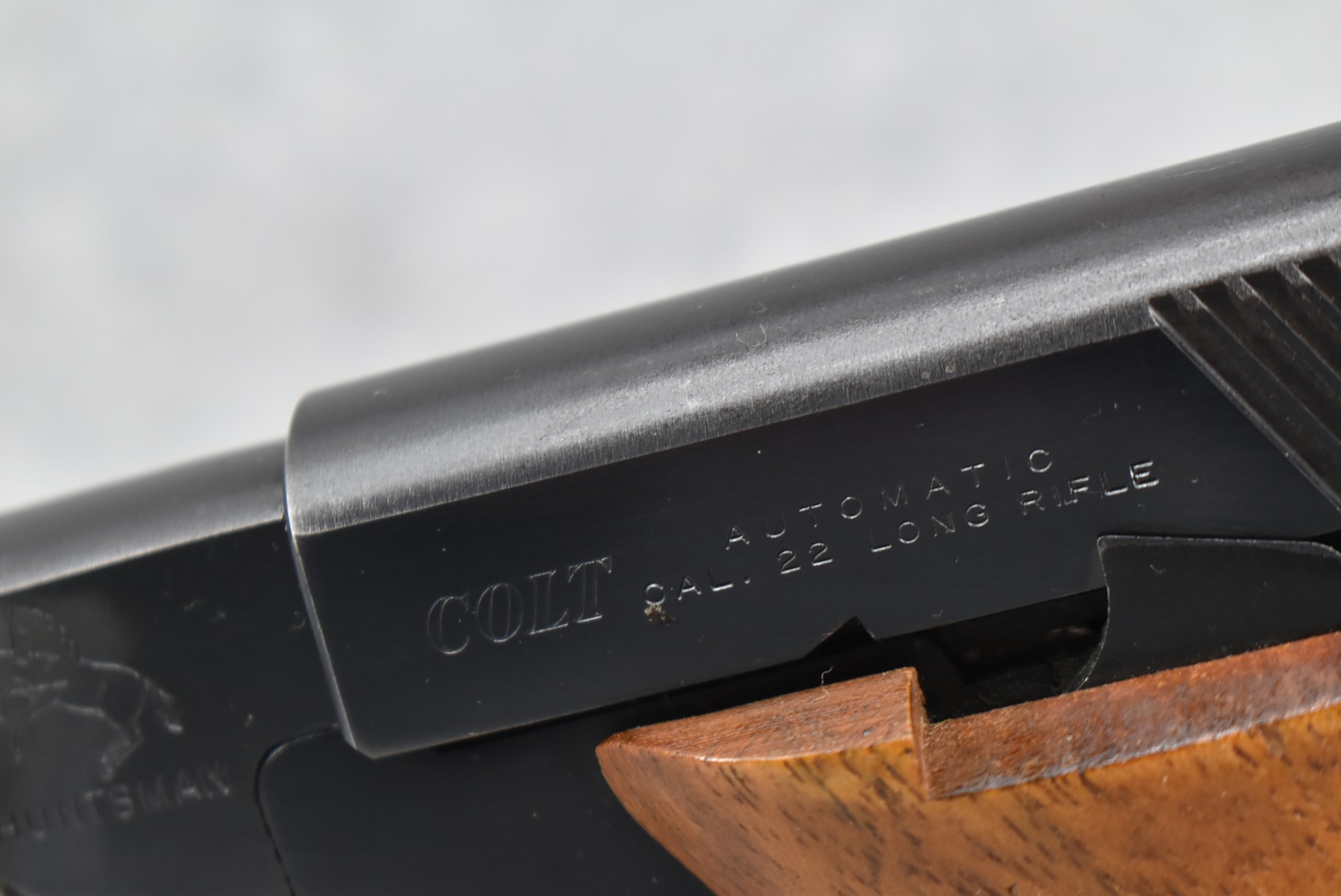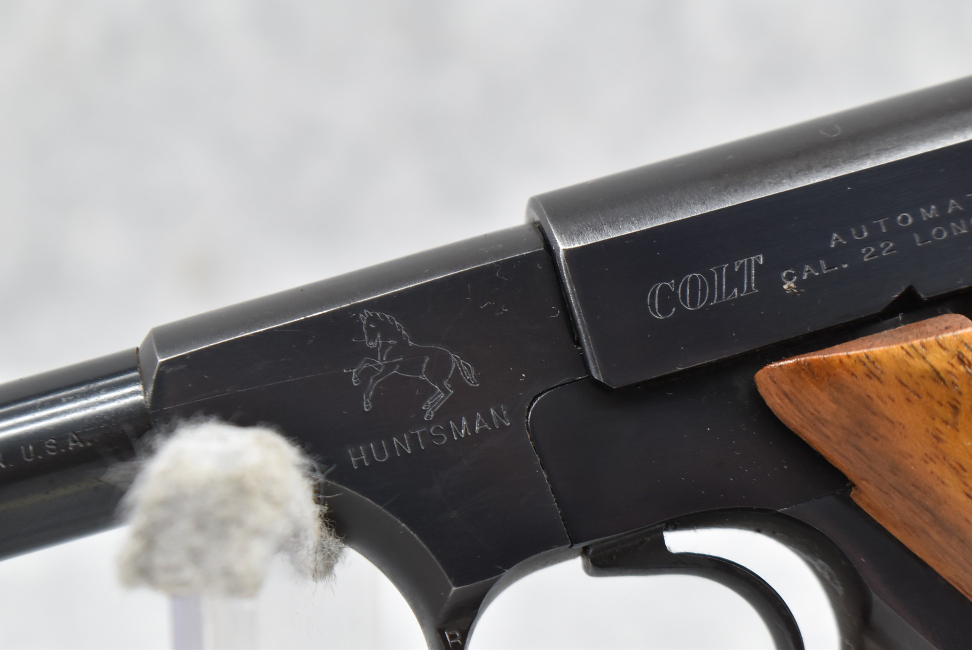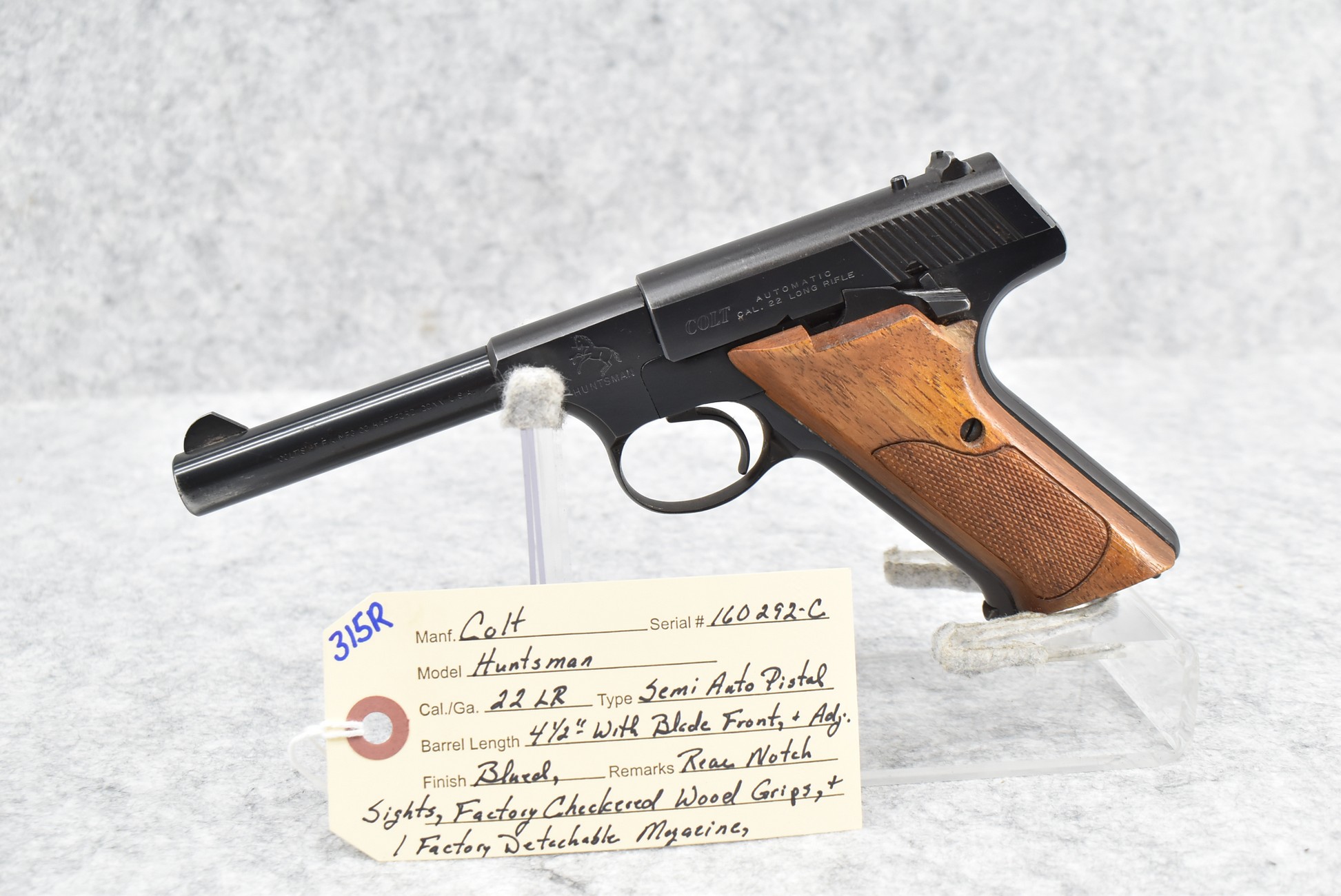 315R. Colt – Mod. Huntsman – 22LR Cal. Semi-Auto Pistol – w/4 ½” Barrel w/Blade Front & Adj. Rear Notch Sights – w/Factory Checkered Wood Grips – w/Factory Detachable Magazine