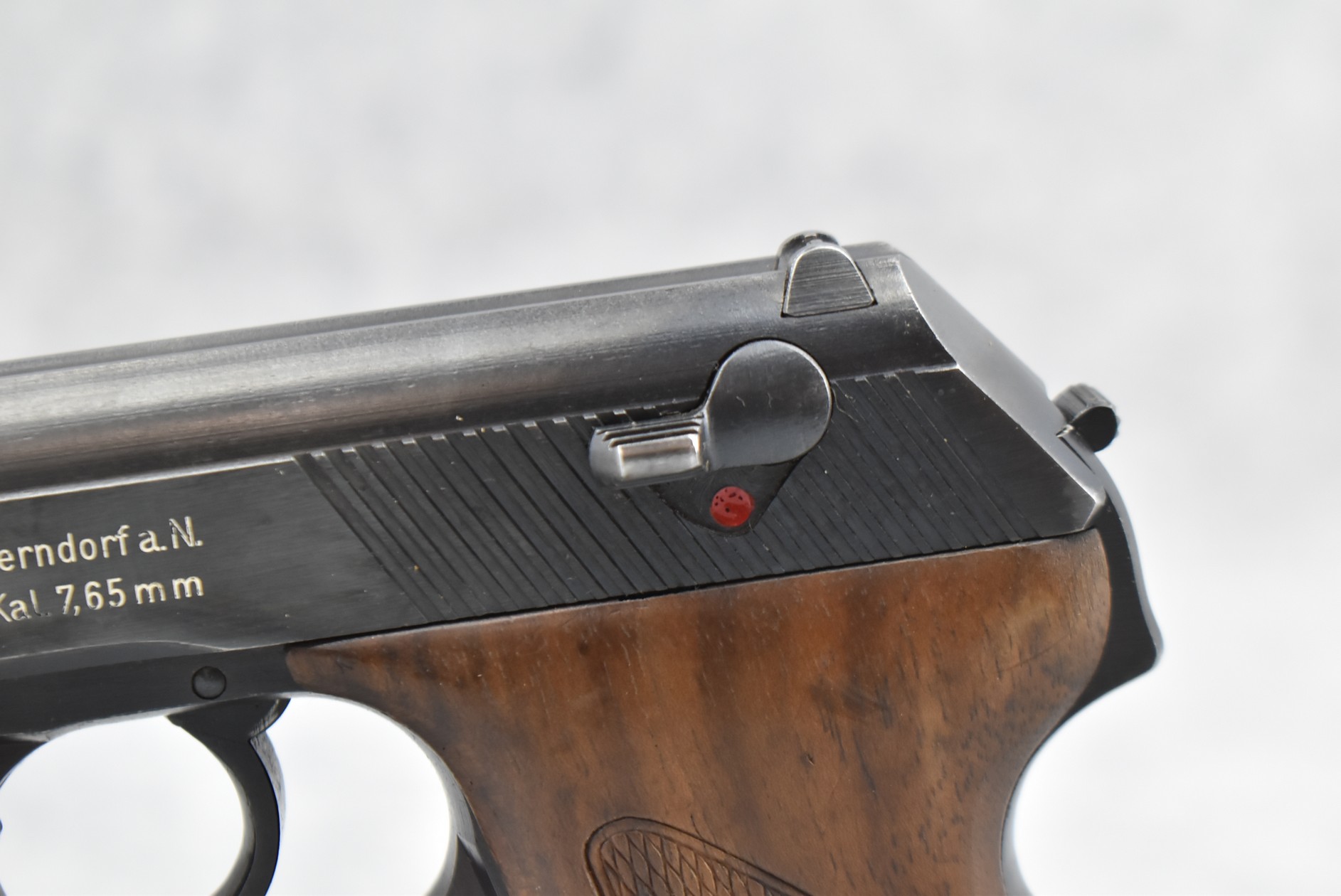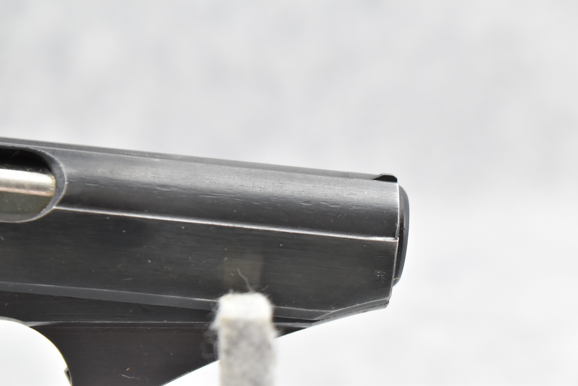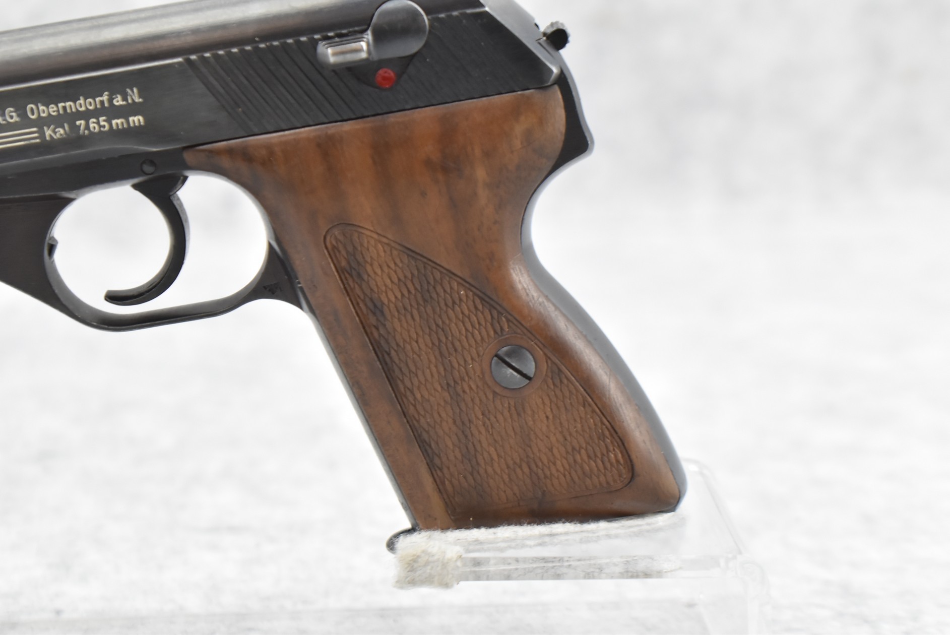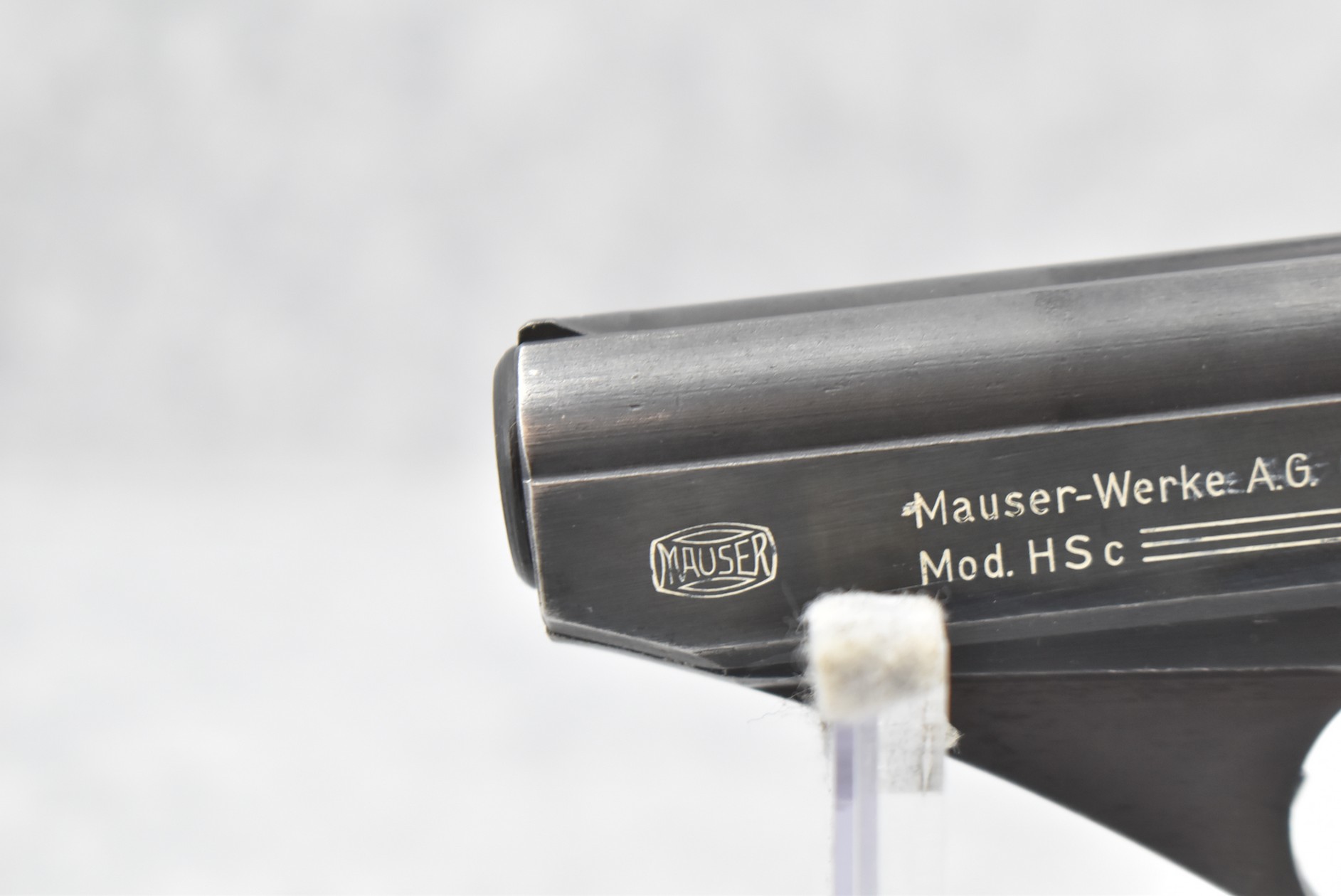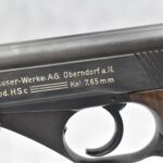318R. Mauser – Mod. HSc – 7.65 Cal. Semi-Auto Pistol – w/3 ¼” Barrel w/Sights – Blued Finish – w/Checkered Wood Grips – Eagle L German Proofed Denoting Police Issue – w/Factory Mag & Holster